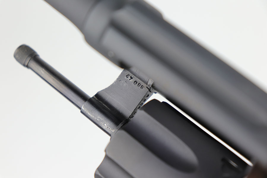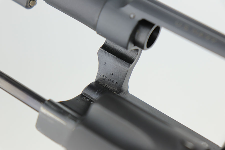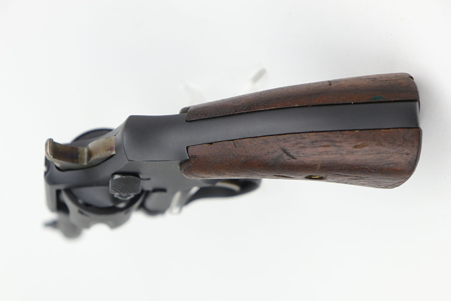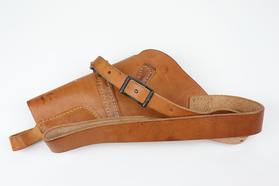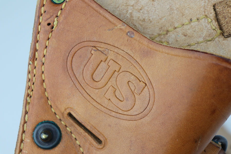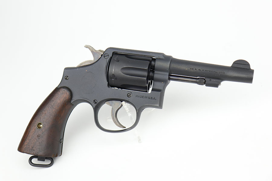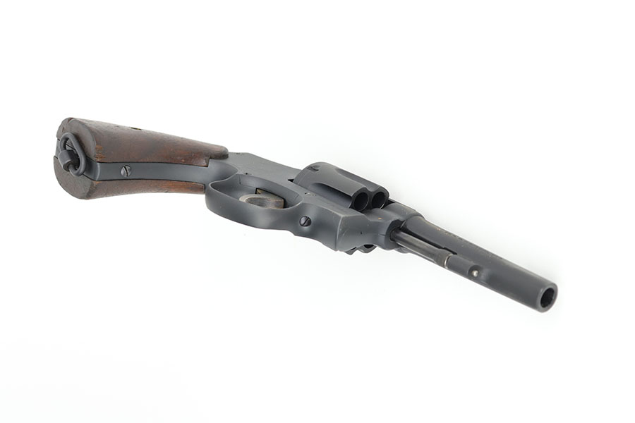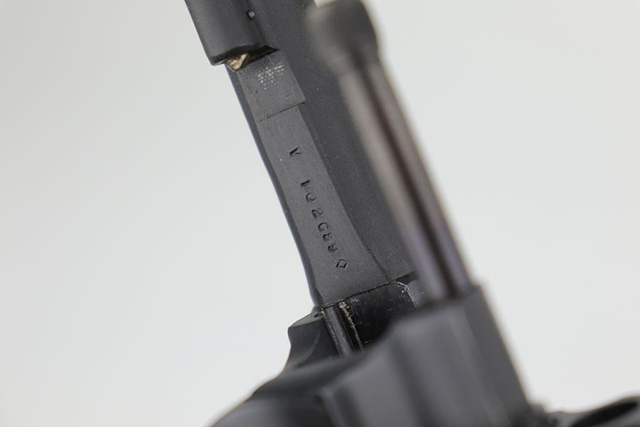 9/16/20 – This is a Smith & Wesson Victory model revolver and holster in mint condition, with S&W factory letter. The gun appears virtually unused, just a hint of a roll mark and maybe a slight hint of muzzle wear. Mint bore and excellent grips. Nice case hardening on hammer and trigger. The factory letter confirms this was a Navy contract gun that was shipped in September of 1942. The shoulder holster is minty with sharp USN marking on the back and ’43 date.