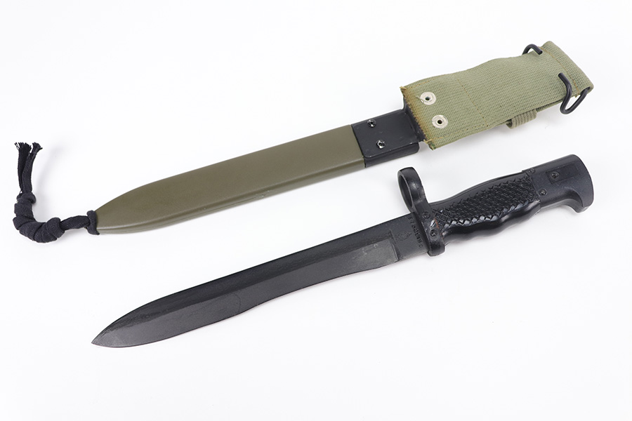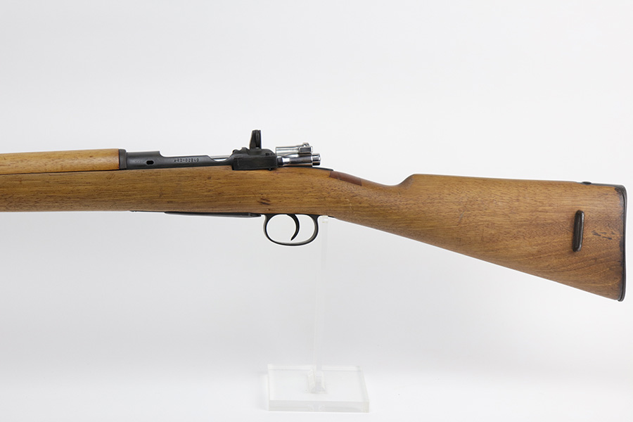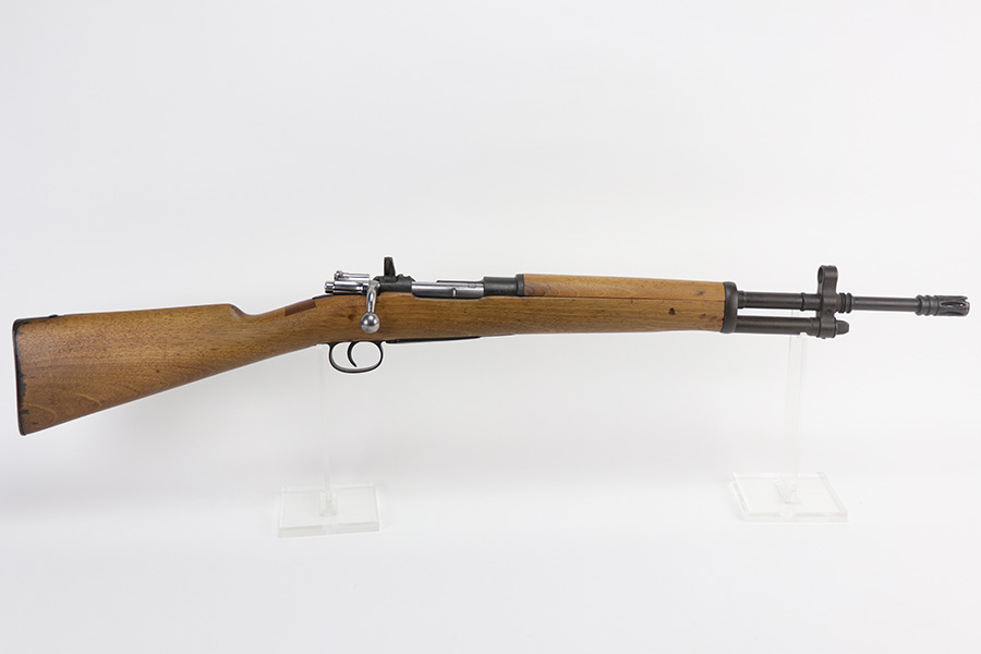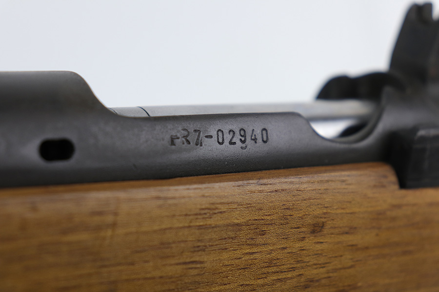 9/10/21 – This is a mint example of a Spanish Mauser FR7 Mauser manufactured in the 1950’s. The FR-7 and FR-8 rifles were developed during late 1950s in Spain during their transition from military bolt action rifles to new, select-fire CETME Mod.58 assault rifles. The FR letters stand for “Fusil Refromando”. The FR-7 rifles were converted from Spanish Model 1916 rifles, which are based on Model 1893 Mauser rifles, also known as “Small ring” Mausers. The FR-7 rifles were issued to Guarda Civil units and also used for military training, as their sighting arrangements and ballistics were intentionally made similar to that of the CETME assault rifle. These rifles were used in Spain until about 1980, when Spanish armed forces began transition to the 5.56mm weapons. This one is matching and in mint condition with a few small white paint marks on the barrel. Comes with an original bayonet and scabbard. A few very minor bruises on the stock. The bore looks factory-new.