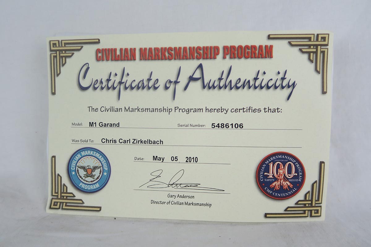 1/16/18 – This is a mint condition Springfield CMP Special, with like new CMP stock with cartouche on it. The gun is all original finish and parts, 100% correct, with collector grade metal. Barrel is dated to January of 1955, which is correct for the serial. Comes with the original CMP certificate and purchase receipt, as well as a magazine and manual. US marked sling.