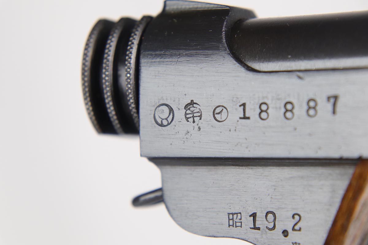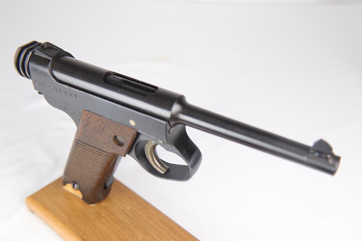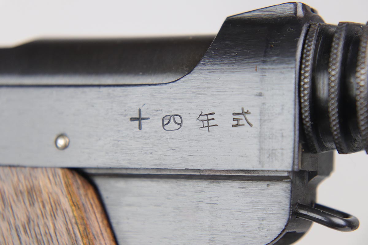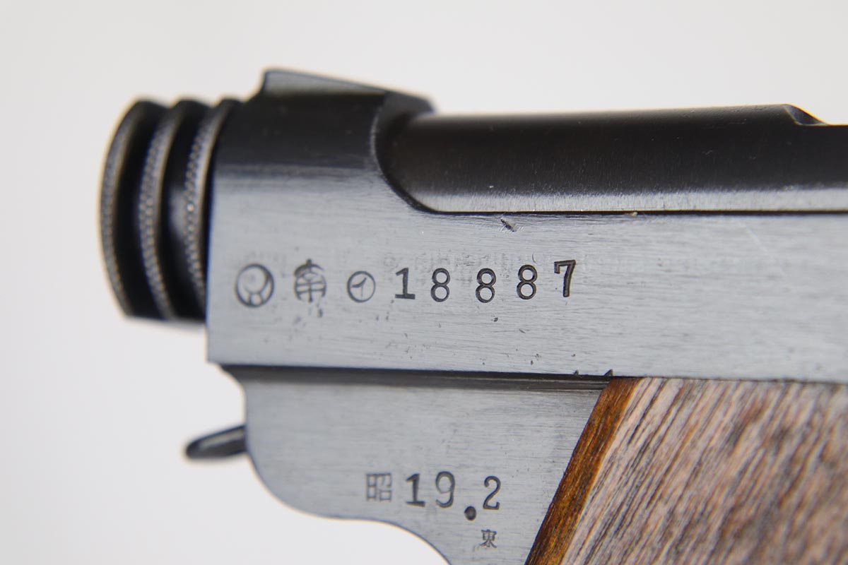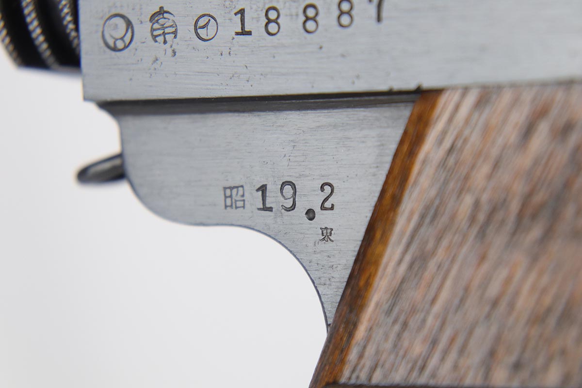 3/3/18 – This is an “as issued” mint example of the late-war Type 14 rig, made in February of 1944 at the Kokobunji (Nagoya Nambu) factory, which had a much lower production total than the Toriimatsu factory. It is complete with a rubberized holster, two matching magazines and a cleaning rod. Mint bore and grips. All matching internally as well. An impossible to upgrade example.