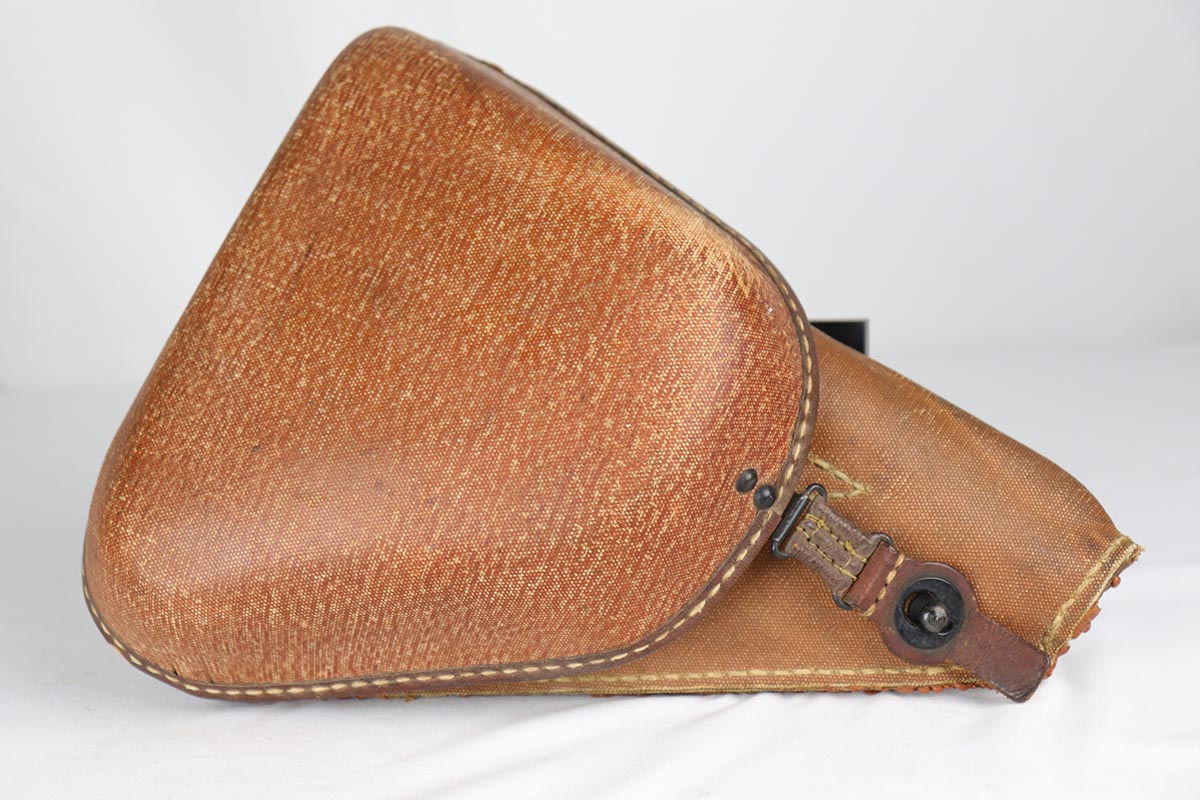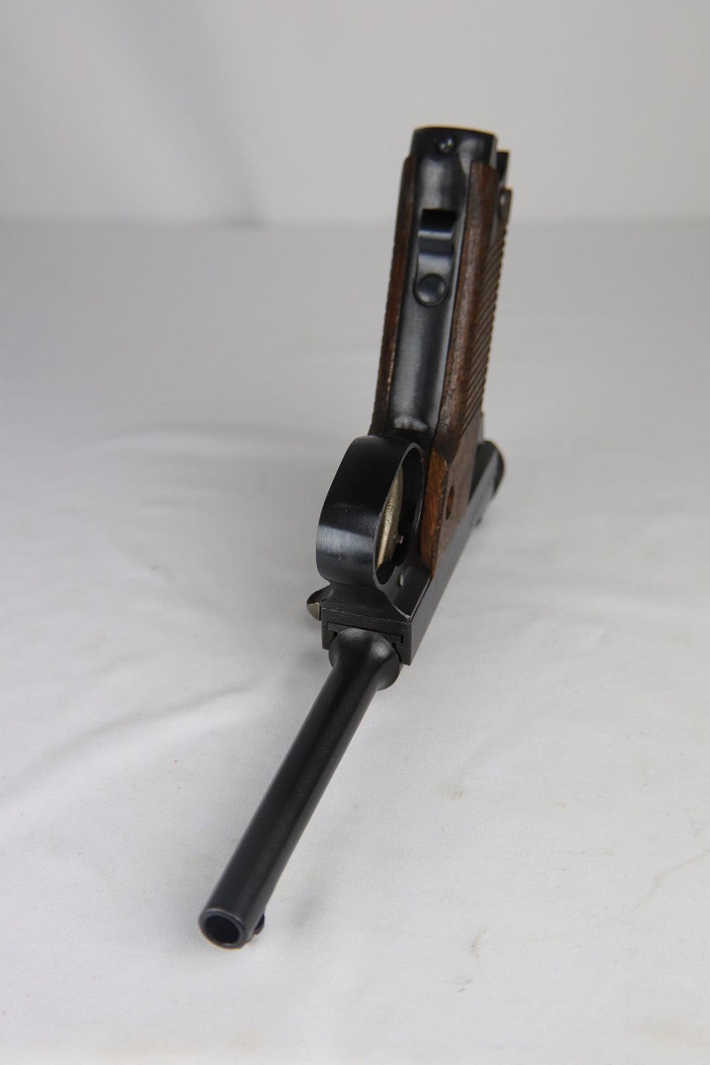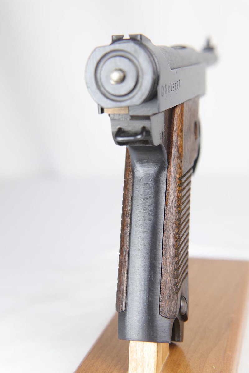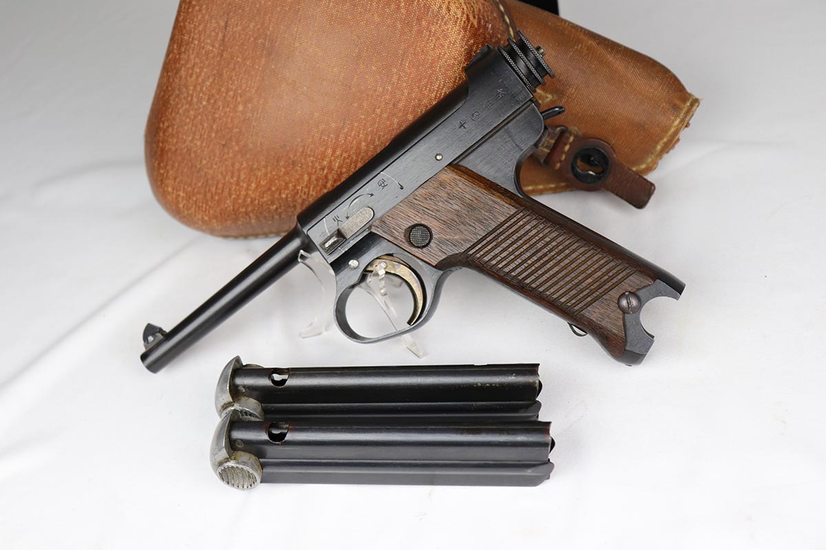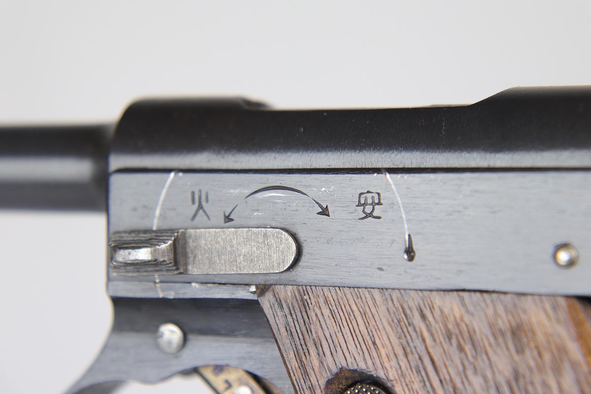 3/3/18 – This is an “as issued” mint example of the late-war Type 14 rig, made in February of 1944 at the Kokobunji (Nagoya Nambu) factory, which had a much lower production total than the Toriimatsu factory. It is complete with a rubberized holster, two matching magazines and a cleaning rod. Mint bore and grips. All matching internally as well. An impossible to upgrade example.