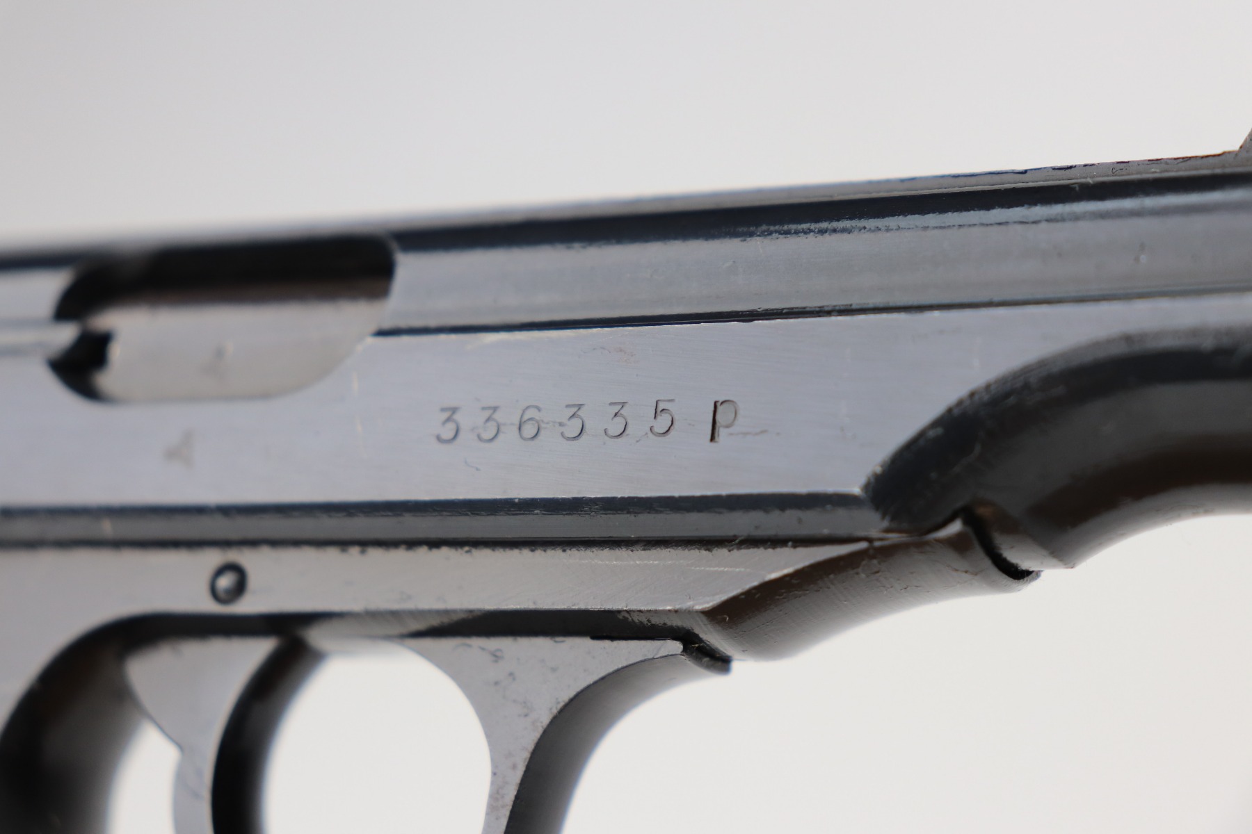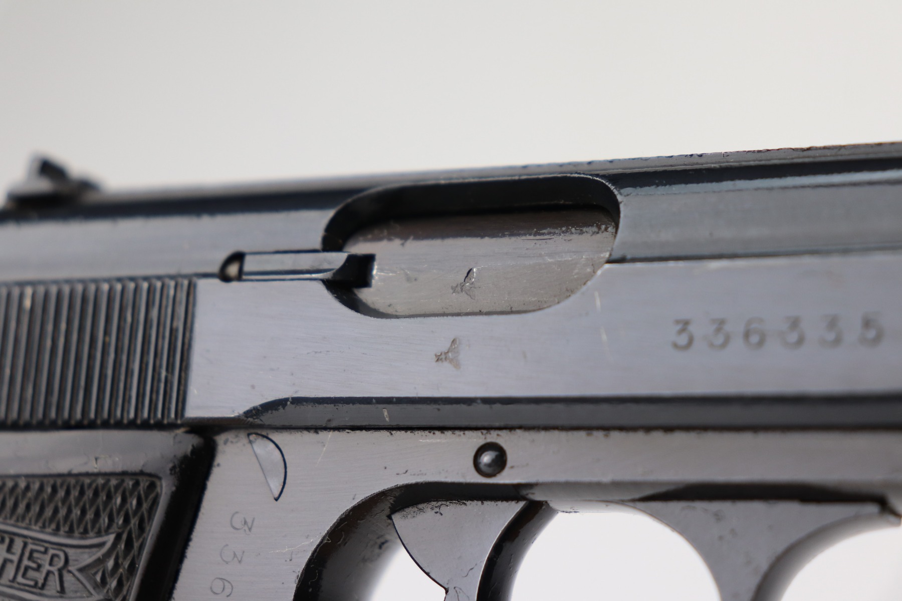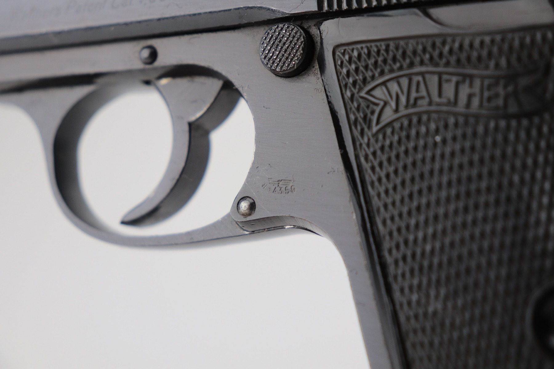 3/1/21 – This is a mint example of a Walther PP issued to the Nazi military in 1944. It is all matching and has the proper “Waffen 359” military proofs. It is in mint condition, retaining more than 98% of its original finish. The only sign of wear is a few very light handling marks here and there. Comes with excellent grips. The gun is photographed with a post-war finger extension magazine. We’ve replaced that with a period-correct finger extension magazine. Mint bore.
