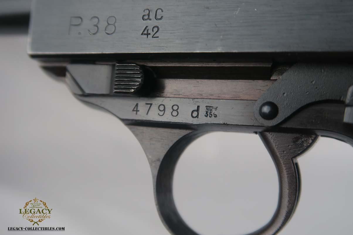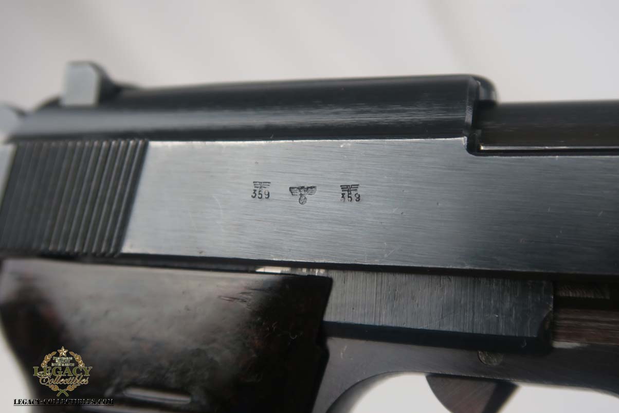 3/28/17 – This is a mint condition Walther-made P.38, produced in 1942. It is all matching and correct, with an excellent set of brown grips and an E/359 proofed magazine. Perfect bore as well on this one. Very difficult to find an AC 42 nicer than this one!