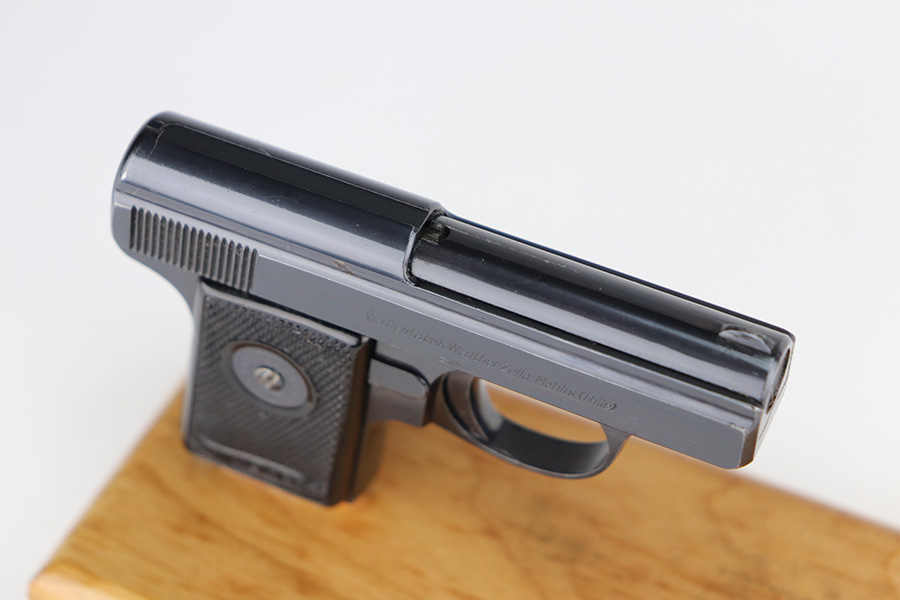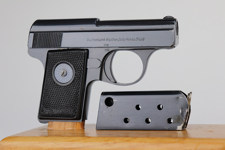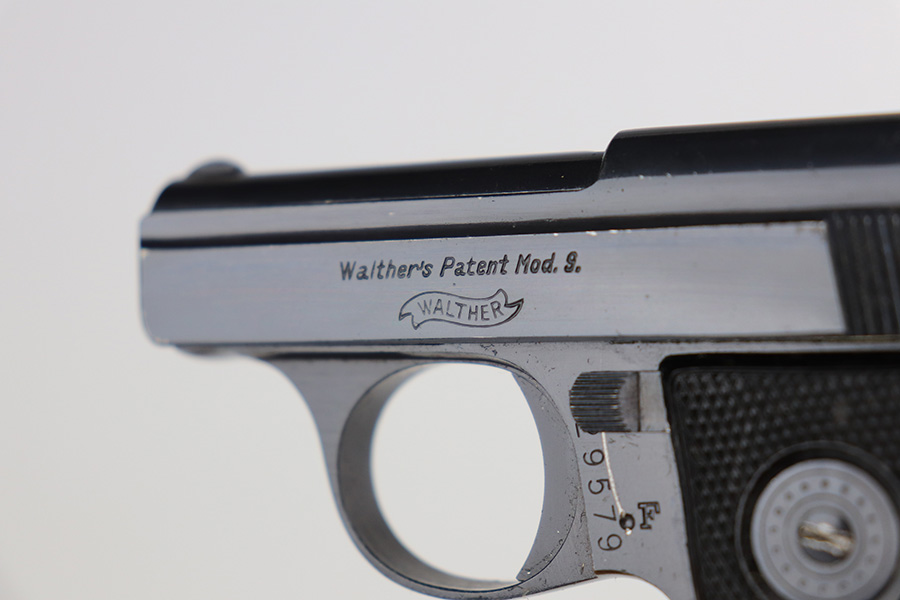 4/30/21 – This is a mint Walther Model 9, variation 4, from the 1930s. Just tiny hints of high point wear with a mint bore. Original magazine with Walther banner. Excellent grips with no cracks or chips.