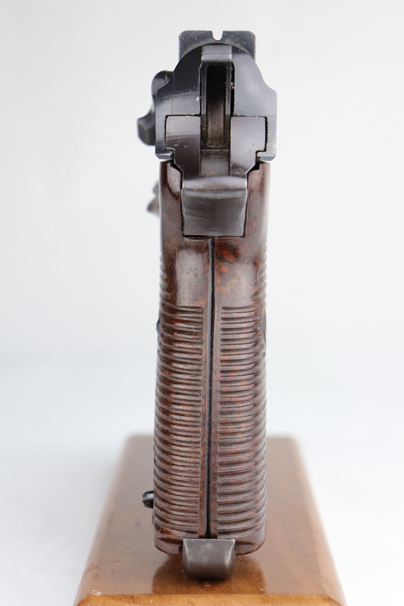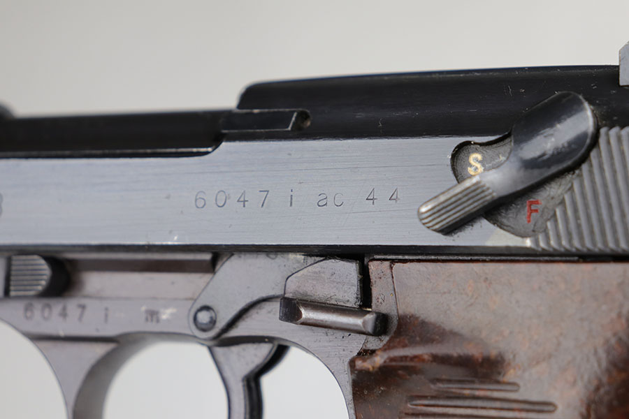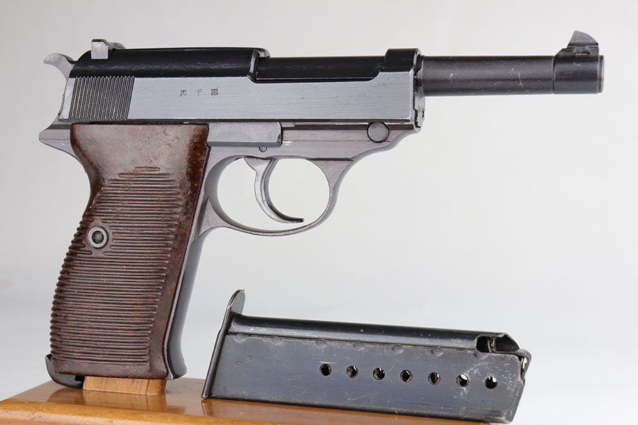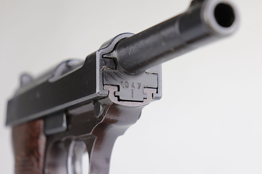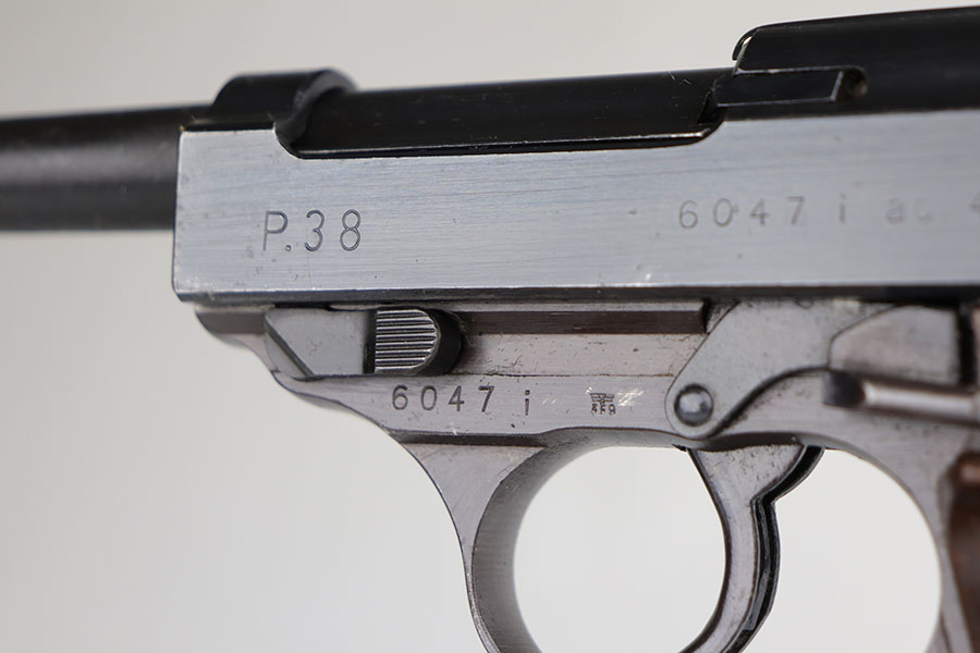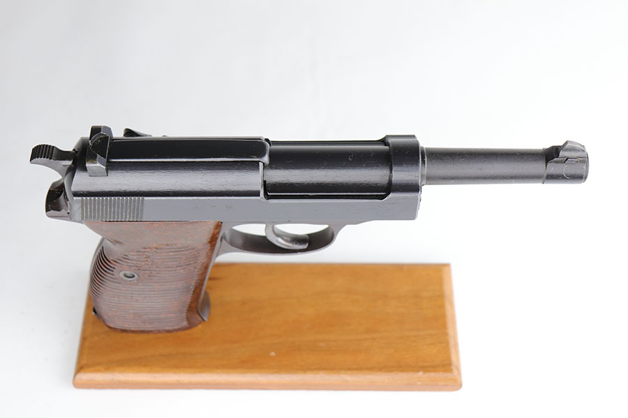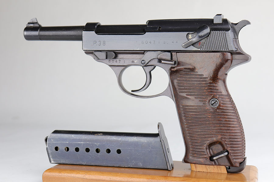 4/24/20 – This is a mint and original Walther P.38 from September of 1944. It has 99+% of the original blue with just a tiny hint of muzzle wear, and a very small scuff on the barrel. Mint bore and grips. Proper mechanics, including de-cocker. Walther magazine.
