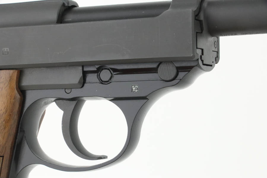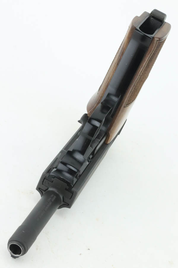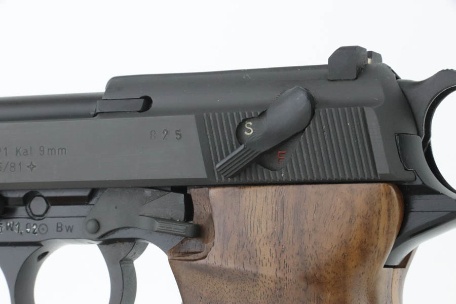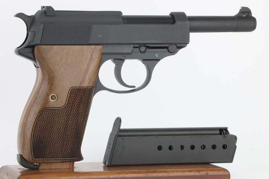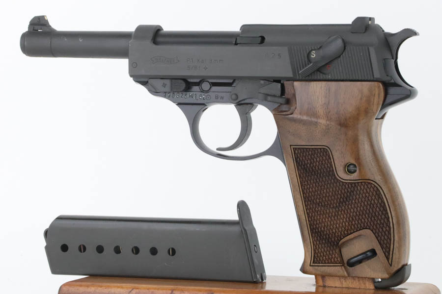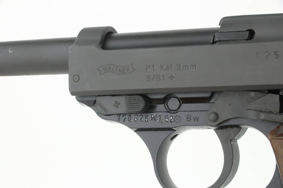 8/9/24 – This is a mint example of a Walther P1 manufactured in May of 1981. It is matching, but the barrel was re-numbered to match. There is also a “BW” marking on the left side of the frame, indicating this was issued to the Bundeswehr or West German military. Import mark on the underside of the barrel. It has retained essentially all of its finish with just a couple of tiny marks on the barrel. Fitted with excellent wood grips and comes with a P1 magazine. Minty bore. De-cocker is functional.