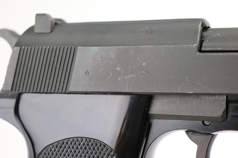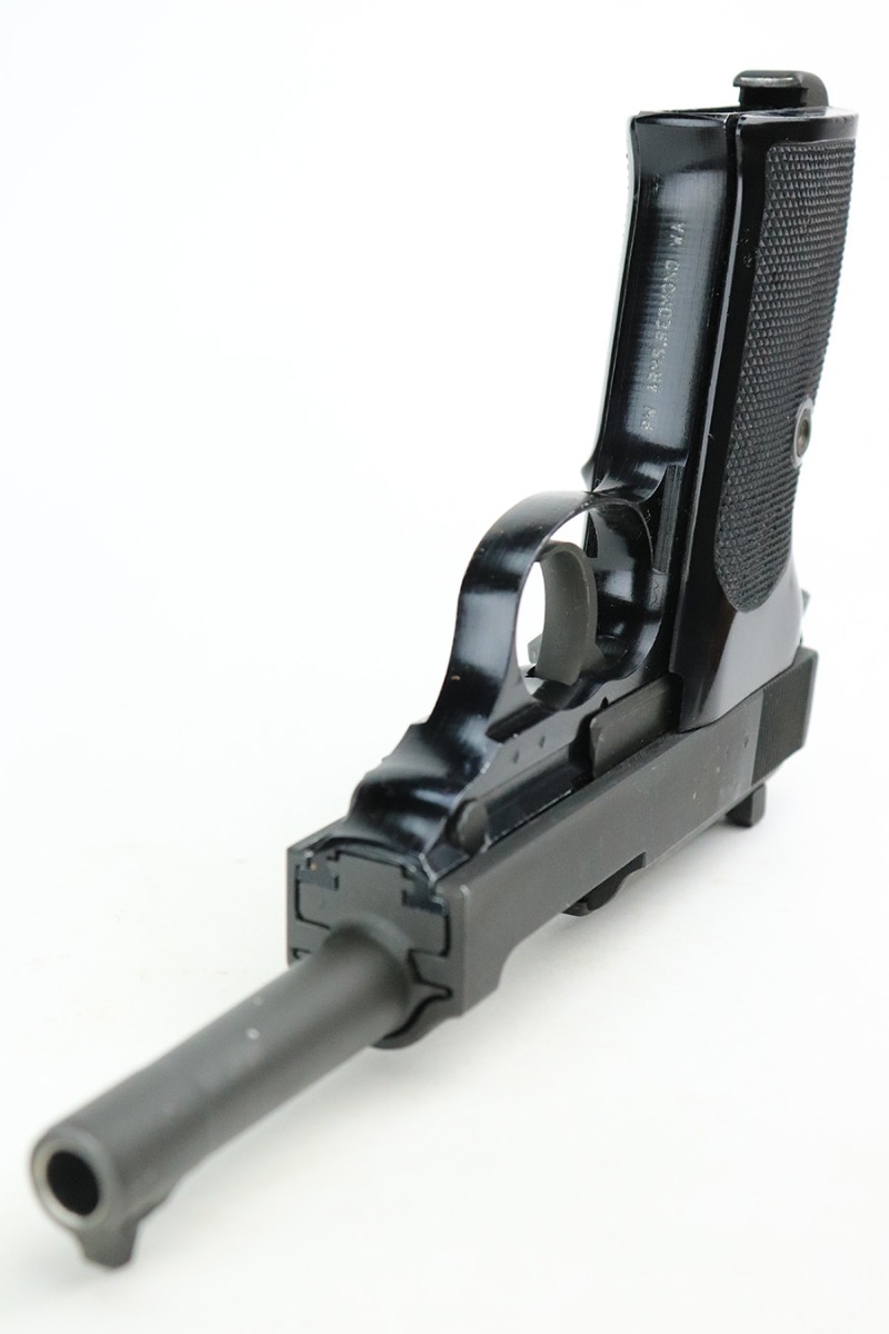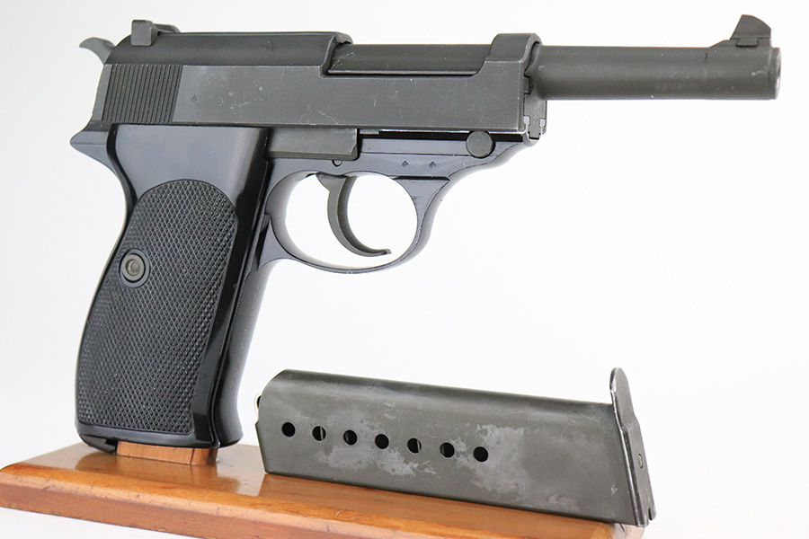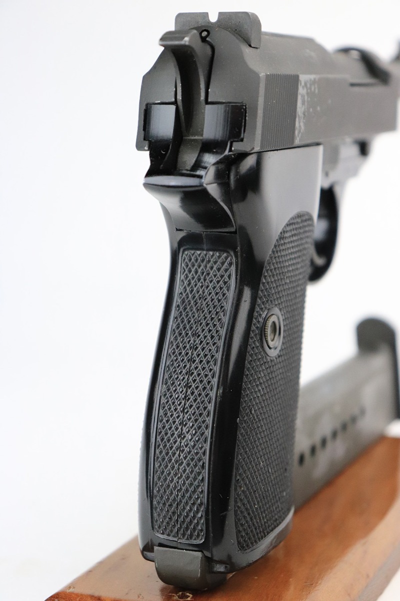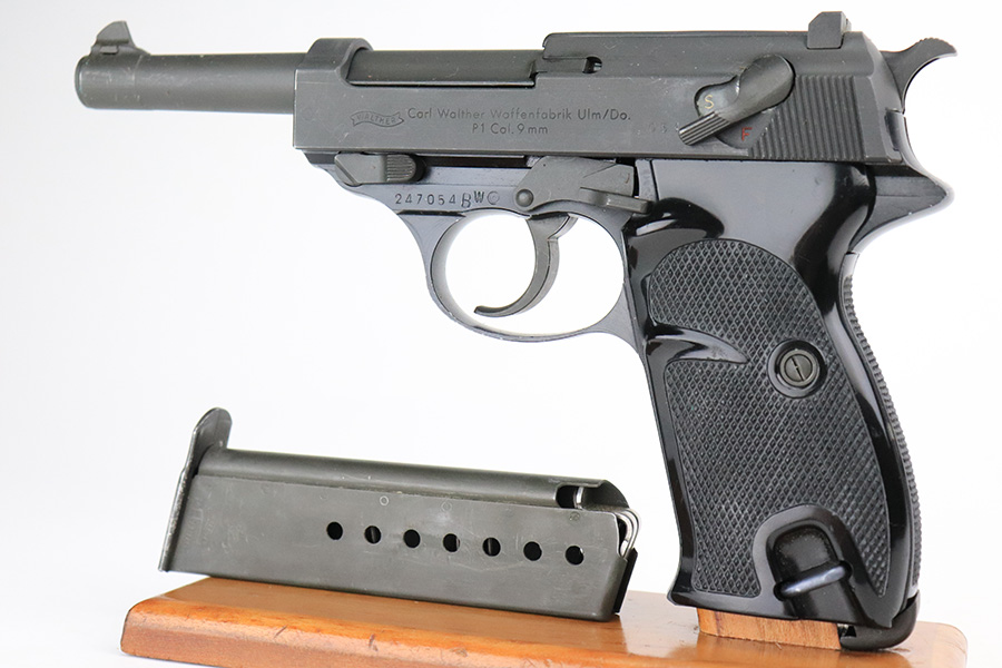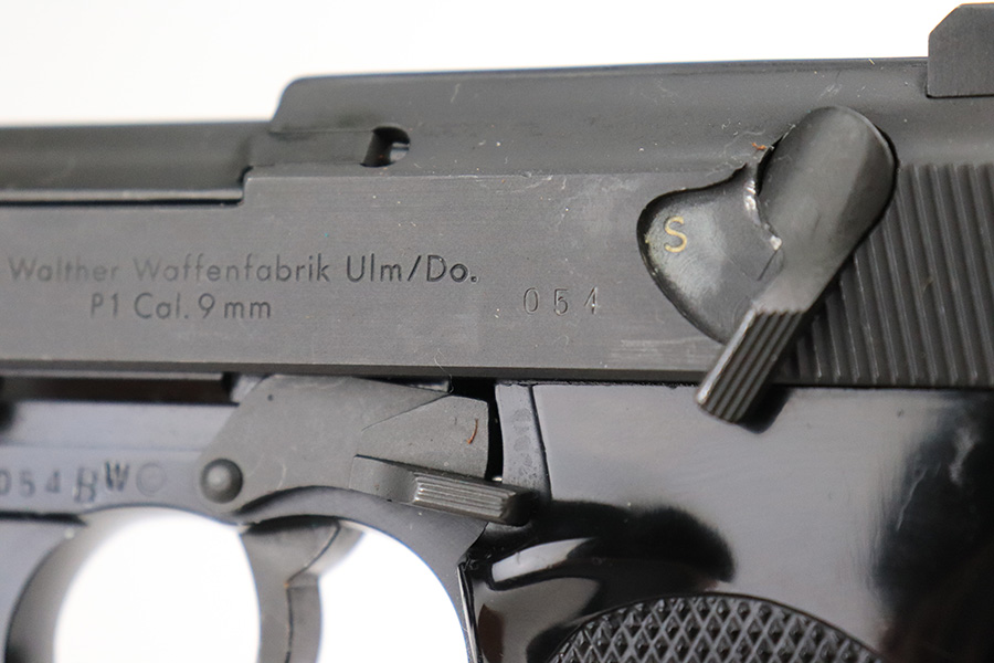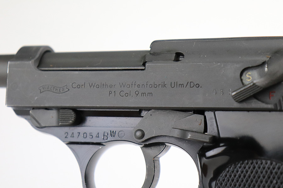 7/20/22 – This is a mint example of a Walther P1 manufactured in April of 1964. It is all matching and has the proper West German proofs throughout. There is also a “BW” marking on the left side of the frame, indicating this was issued to the Bundeswehr or West German military. Import mark on the front strap. It comes as a rig with a minty 1960-dated holster and two P1 magazines. The gun is in like-new condition with just a few very light handling marks here and there. Comes with excellent black plastic grips. Mint bore.