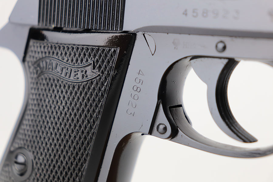 4/6/21 – This is a West German Walther PP that was made in 1978. All original with no import mark. Almost 100% of the original blue remains, with just a hint of high edge wear. Mint bore and excellent grips. Finger extension magazine.