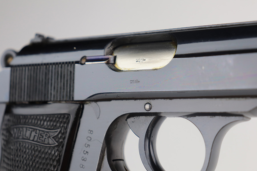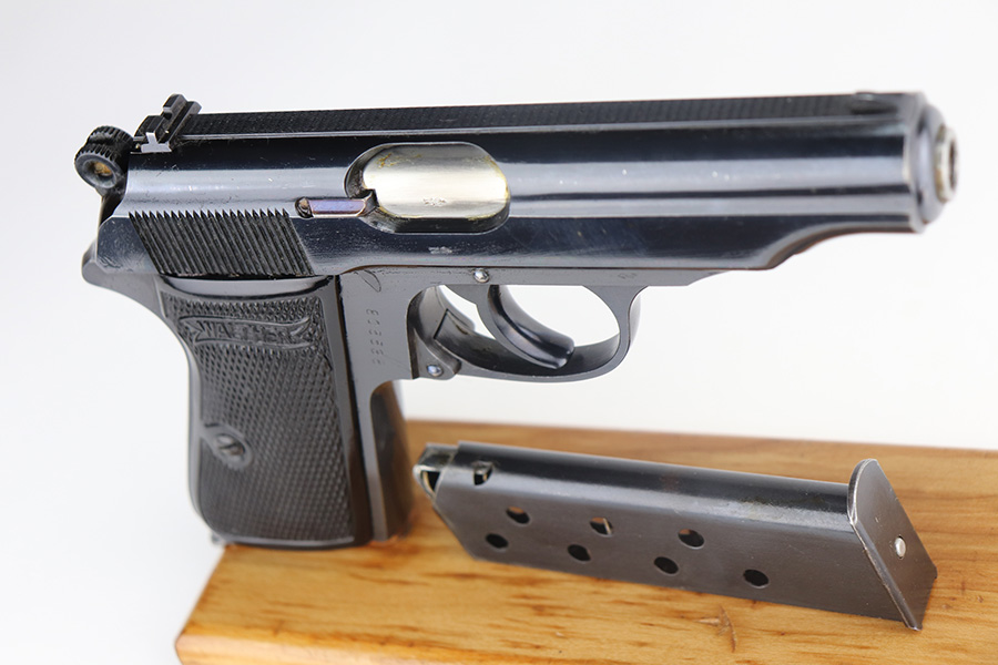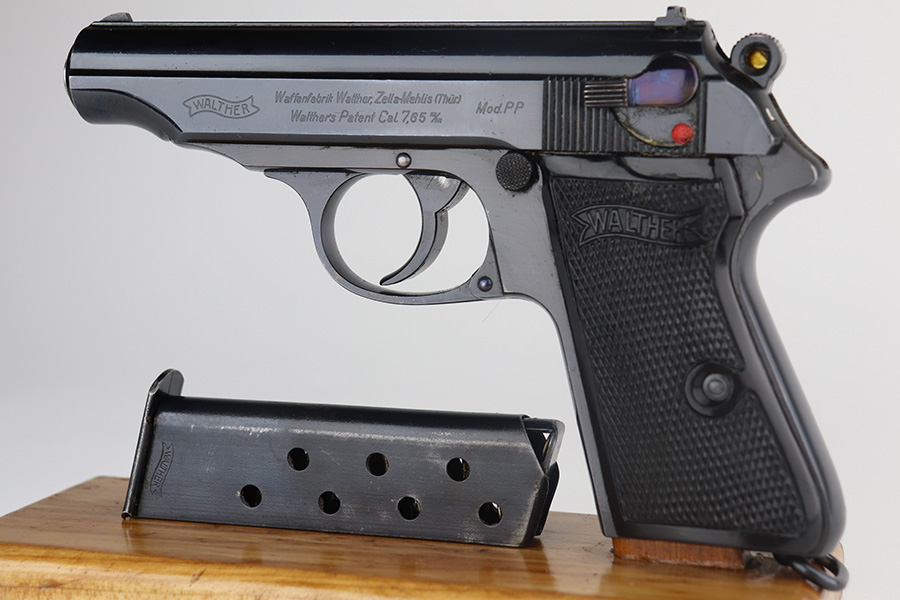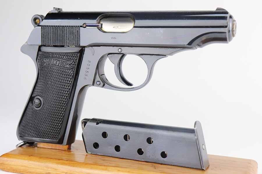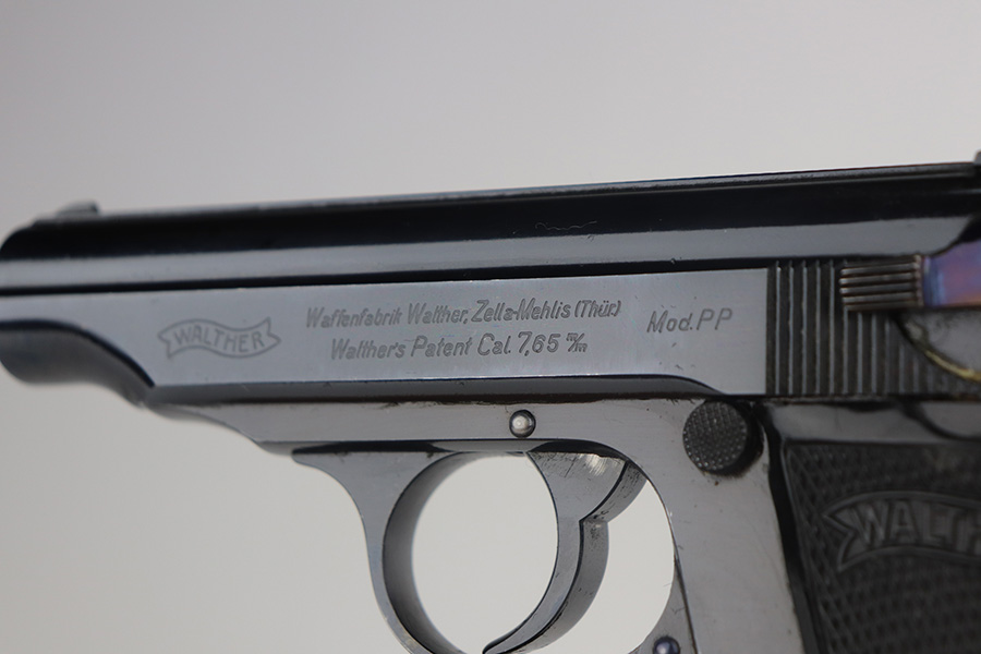 2/27/23 – This is a gorgeous, mint example of a Walther PP sold in the commercial market in 1935. The gun is matching, has the proper “Crown N” proofs, and has a lanyard ring on the bottom of the frame. It is mint, retaining about 99% of its high polish bluing. There is just one area of slightly scratchy minor wear on the right side of the slide. Comes with excellent grips and a banner-only magazine. Mint bore.