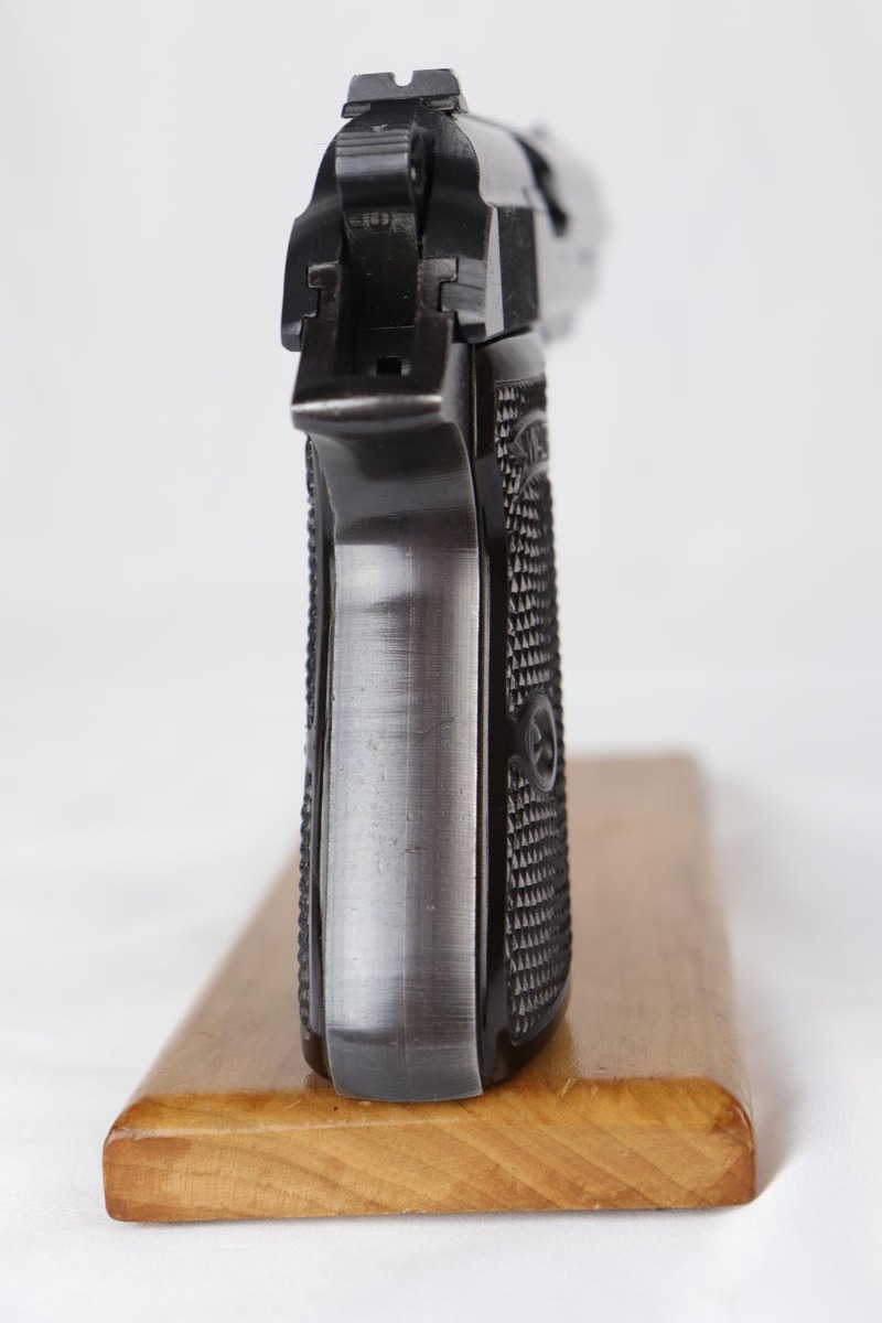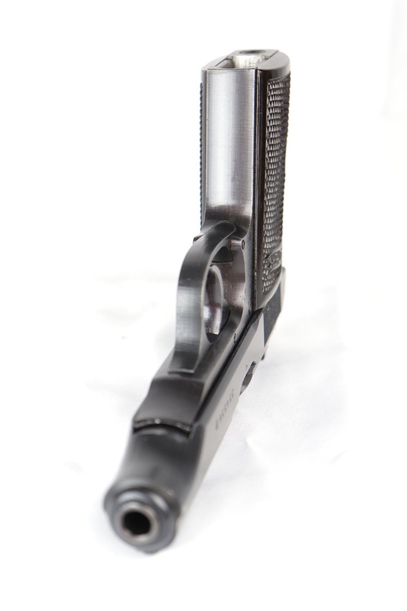 8/3/18 – This is a minty original Walther PP that was issued to the Nazi Army late in the war.  Manufactured in 1944, the pistol is all matching and correct with 99% military blue remaining.  Excellent wartime mag and original grips.  Terrific bore.