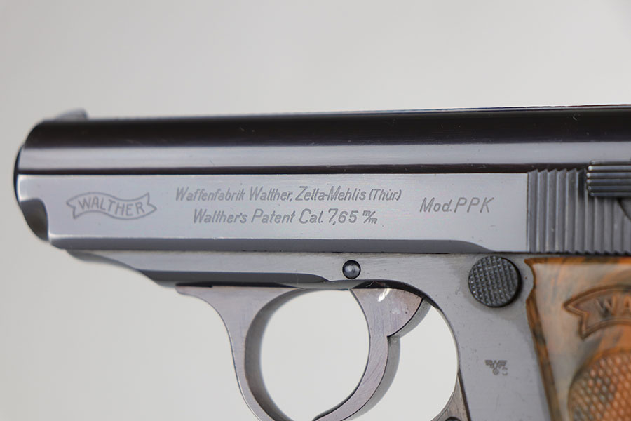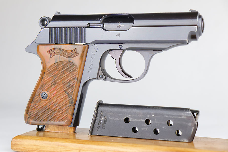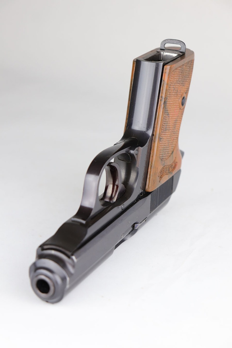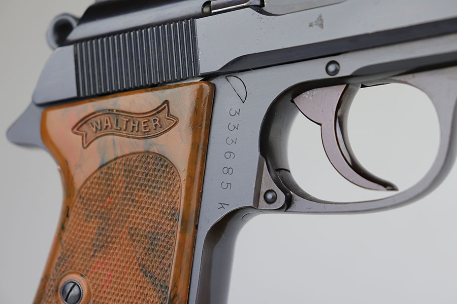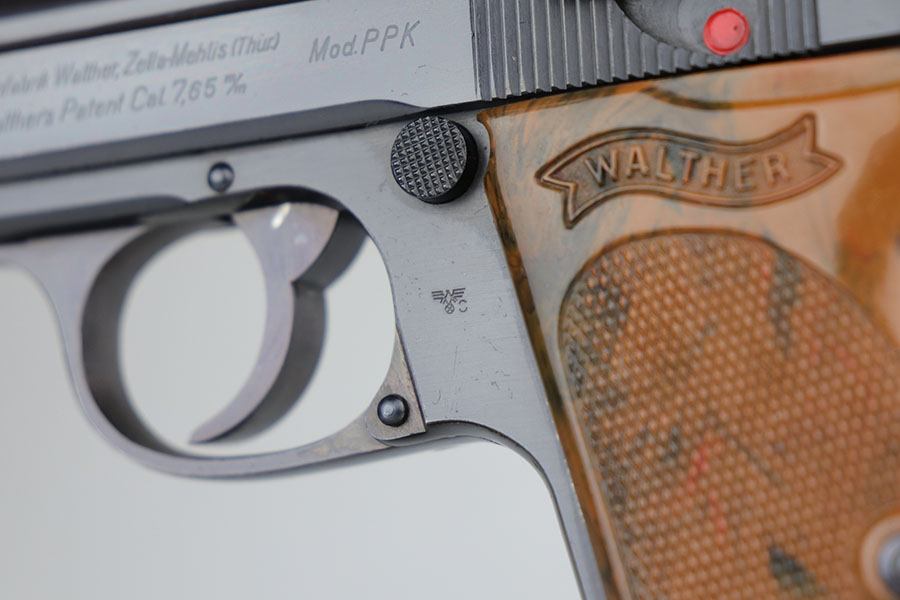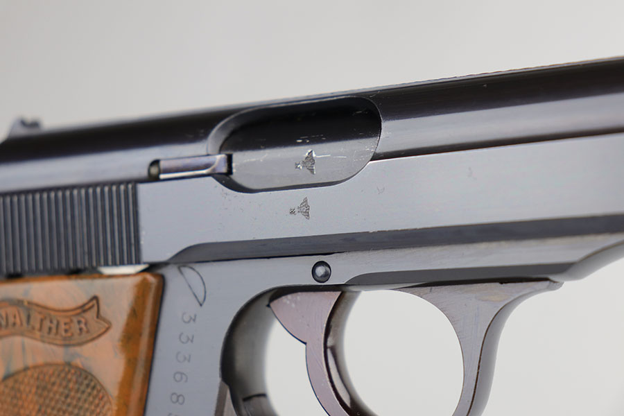 5/13/20 – This is a mint Police Walther PPK from 1941. It’s a fairly scarce variation with high-polish blue but Eagle/N proofs. It has 99% of the original, high-polish blue remaining with just a bit of muzzle wear on both sides. Mint bore, grip and magazine. Police Eagle/C proof on frame. Only about 150 digits off from the other Police PPK we listed today. Possible these two were manufactured on the same day and reunited all these years later!