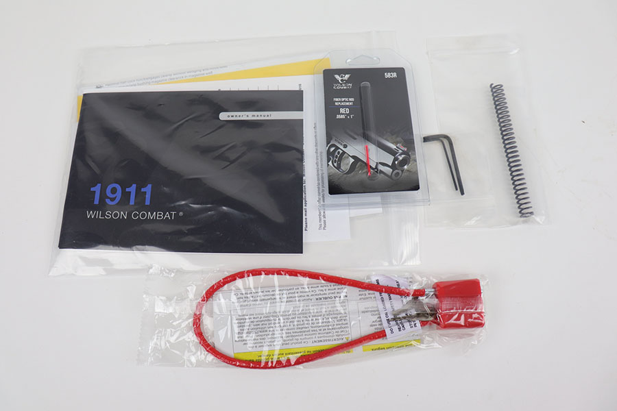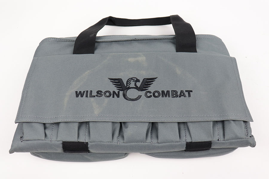 10/16/20 – This is a mint, unfired Wilson Combat ACP (American Combat Pistol) in the original Wilson carry case. This is the compact model, chambered in 9mm, with 8 round capacity. Specifications include carbon steel frame, eagle claw front strap/mainspring housing treatment, bullet proof safeties, G10 eagle claw grips with black medallions, battle sight with red fiber optic front sight and more. Our consignor bought this gun new and never fired it. The case includes the original Wilson Combat manual and basic paperwork, replacement spring and replacement front sight optic.