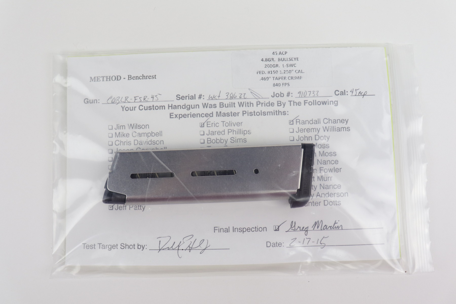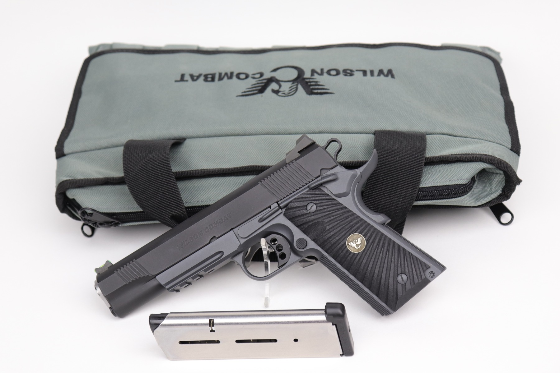 9/30/20 – This is a mint, like-new Wilson Combat CQB 1911. It comes with the original soft range case, two magazines, tools, original packaging, and original paperwork including the owners manual and inspection. There are no apparent signs of wear. The gun is fully functional and the bore is near-mint. Specifications from Wilson’s website are included below.