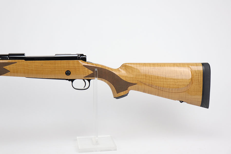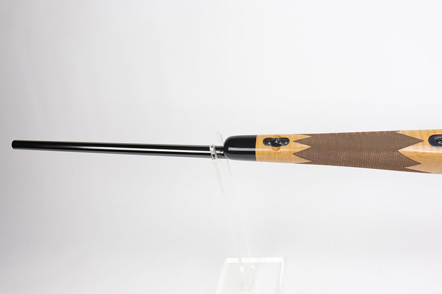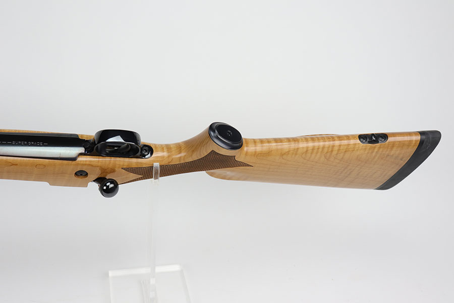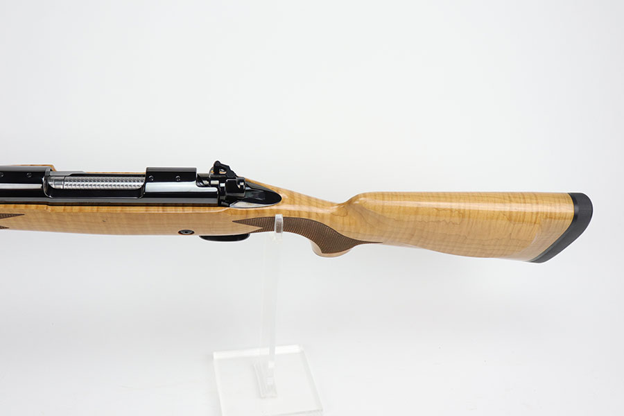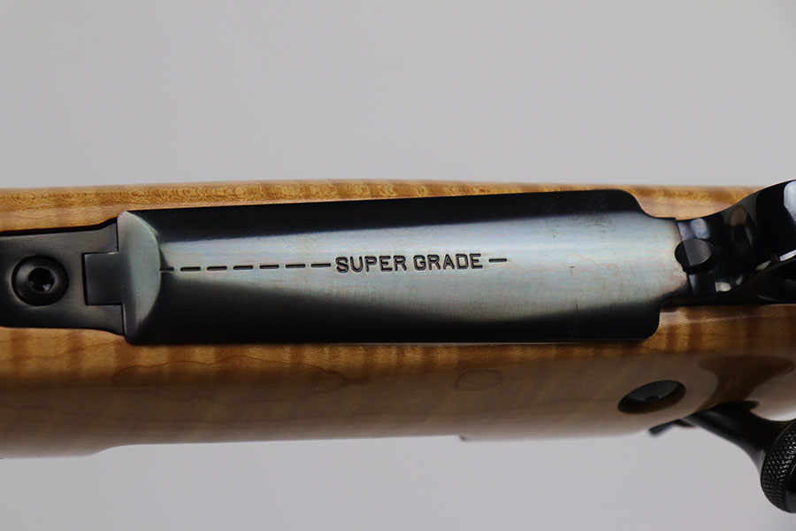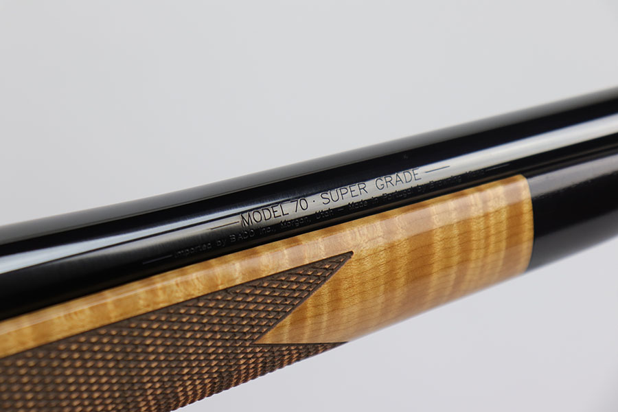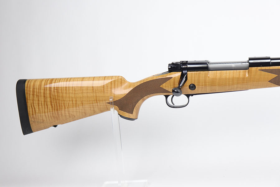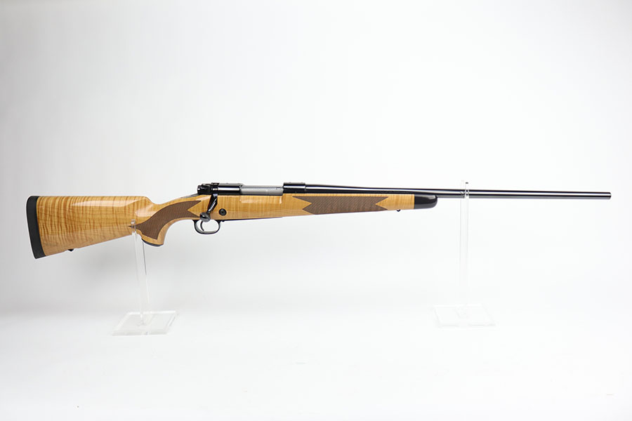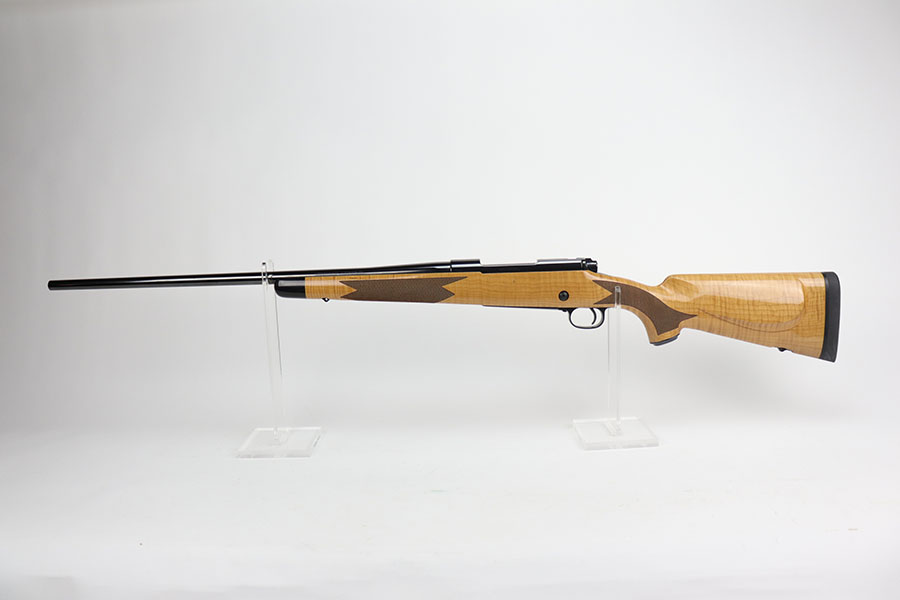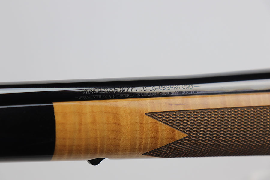 11/12/20 – This is a nearly unfired Winchester Model 70 Supergrade in .30-06. Barrel is 24 inches long. Gun was bought new and then fired once by our consignor. Glossy finished maple stock with fine checkering. High-polished bluing with no wear. Inletted sling swivel studs. Pre-’64 style controlled round feed with claw extractor. Cold hammer forged free-floated barrel.