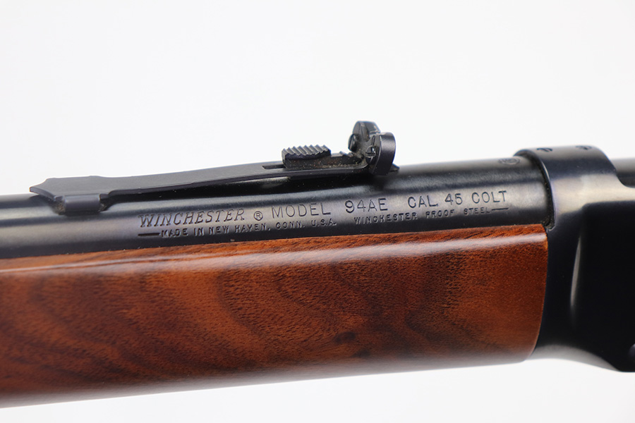 5/7/21 – This is a minty Winchester Model 94AE Trapper model from the 1990s. Features saddle ring on receiver and 16 inch barrel. It looks nearly factory new, with just a minor spot of wear on the underside of the magazine tube. Mint stock and forend. Terrific bore, and smooth action.
