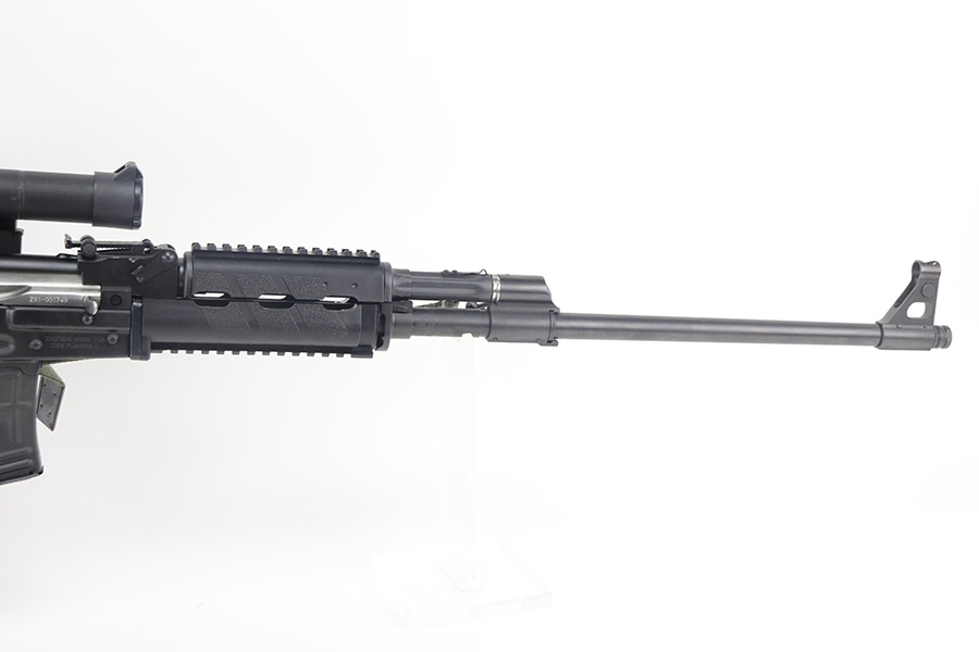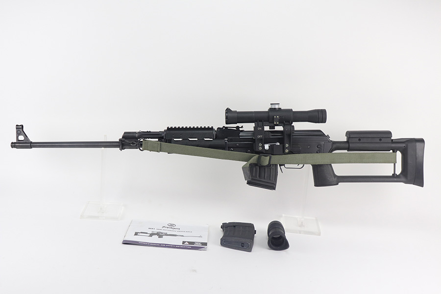 11/16/21 – This is a mint example of the very cool Zastava M91 sniper rifle. Our consignor bought this one factory new, and shot only three mags through it before retiring it to his display. It’s in near-mint condition, just the tiniest hint of wear near the ejection port, and the bore is still mint. It’s a semi-auto rifle with a 24in barrel that is chrome-lined. This particular listing includes a spare 10rd magazine and eye cup for the scope. Also has a carry bag for the scope, and the manual for the rifle and the scope. The optics are crystal clear and we imagine this would be very fun to shoot. FFL required.