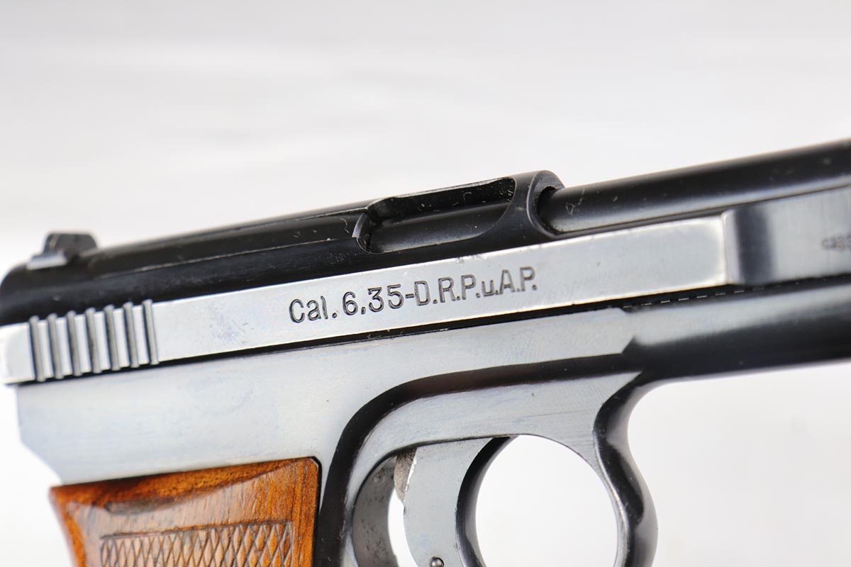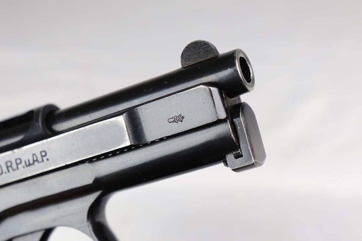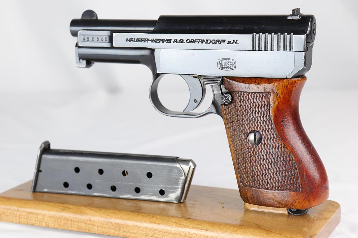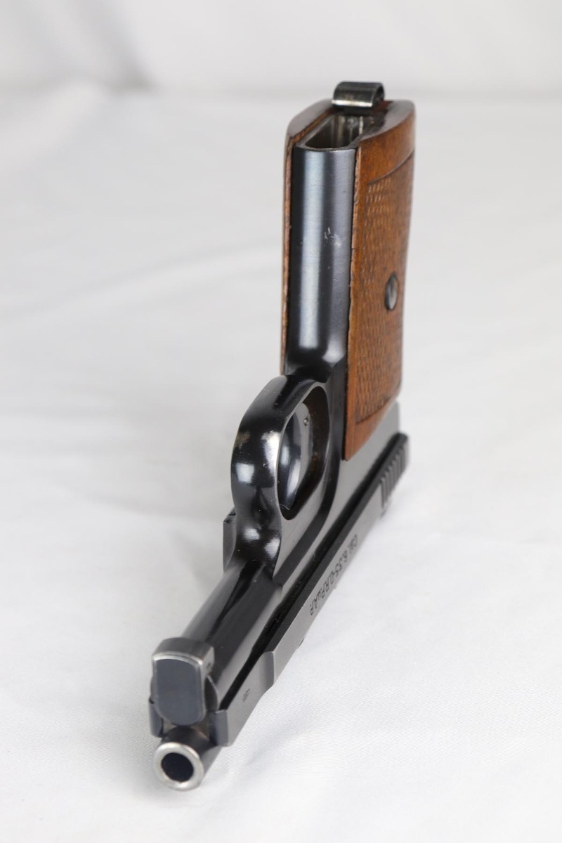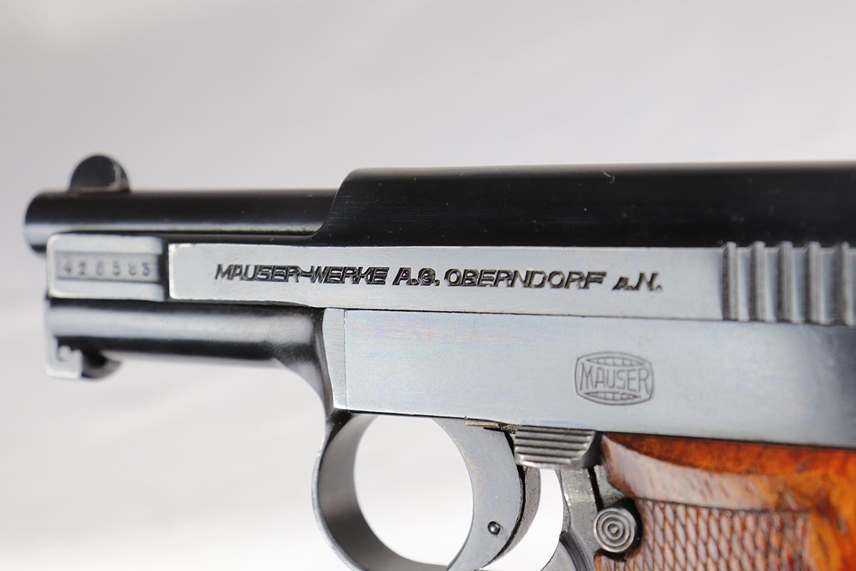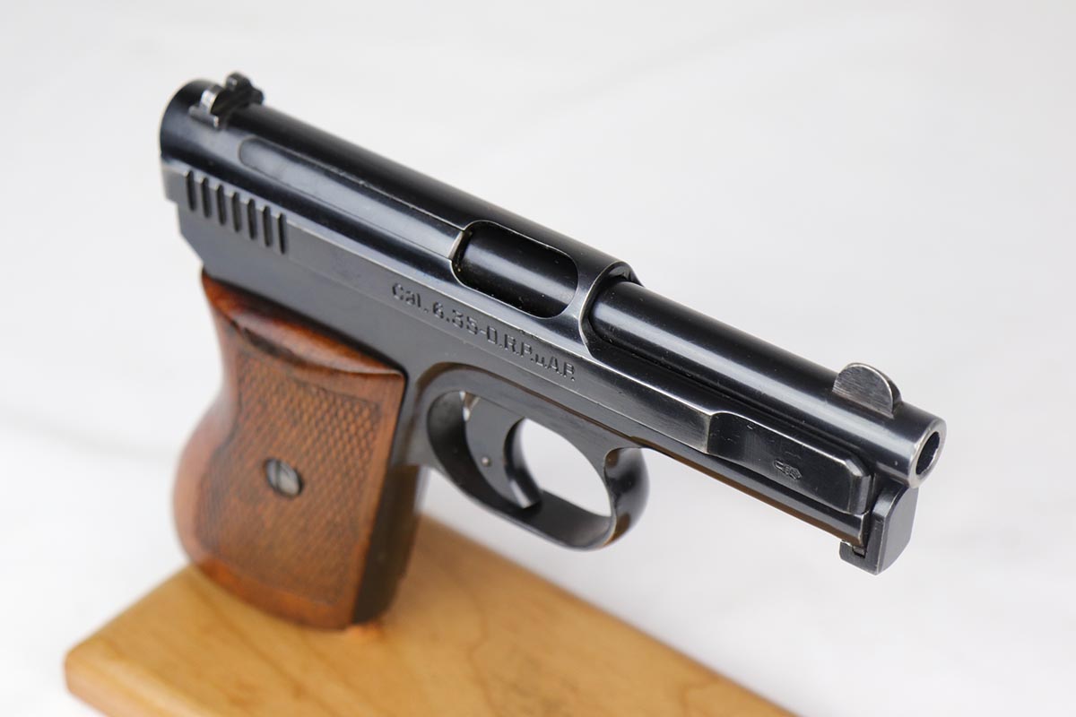 3/20/18 – This is a near-mint 1910/34 Mauser, with 98% original blue remaining.  There are no major blemishes aside from common edge wear.  The grip and magazine are in excellent condition.  Bore is minty.