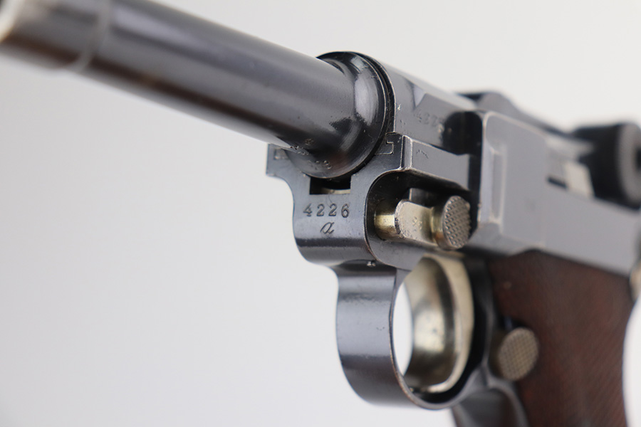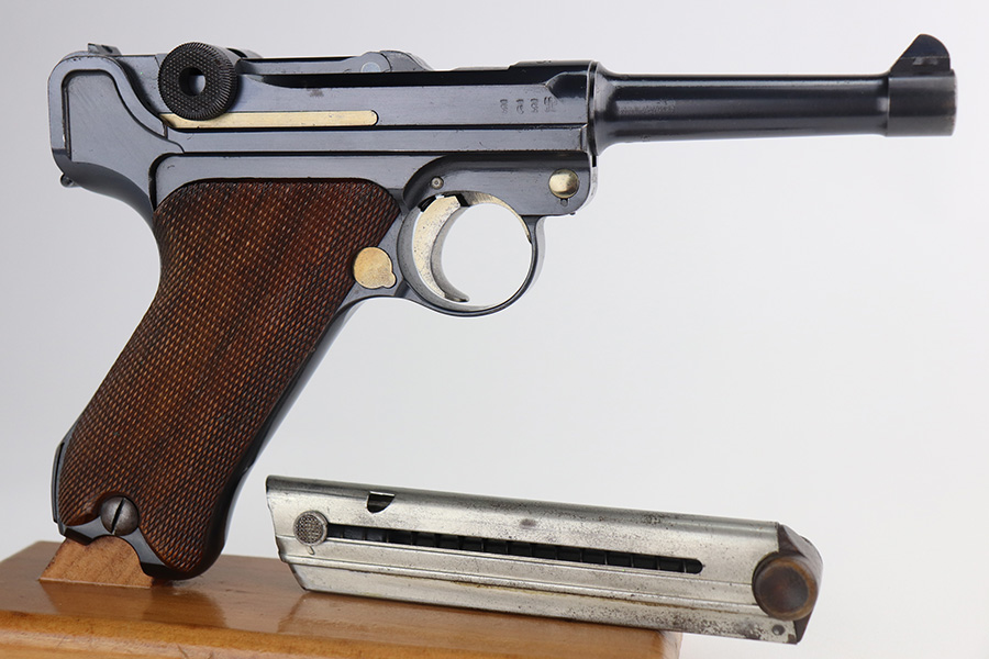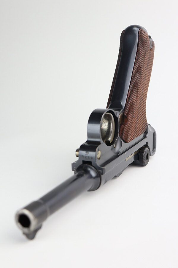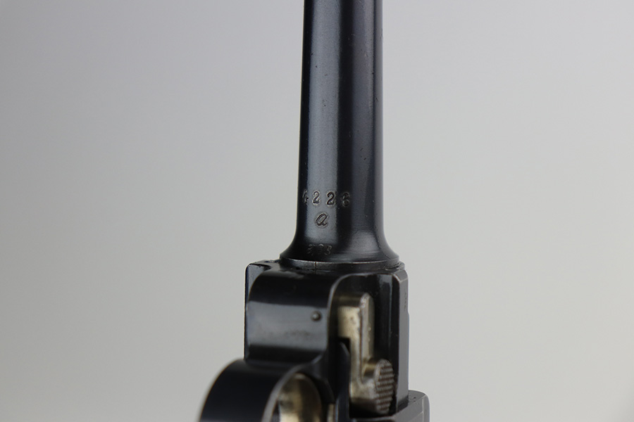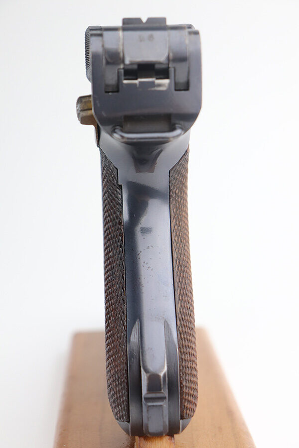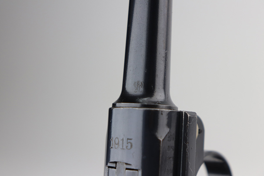 2/2/22 – This is a near-mint example of a DWM Luger issued to the Imperial German military in 1915. The gun is all matching and has the proper Imperial proofs. It has retained about 98% of its original finish with just a hint of wear on the side plate, around the muzzle, and base of the straps. Some very tiny freckles on the straps. Excellent matching grips and a period-correct mismatched magazine. The bore is excellent – shiny with strong rifling.