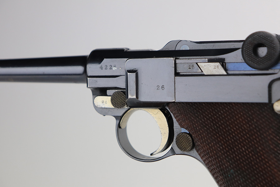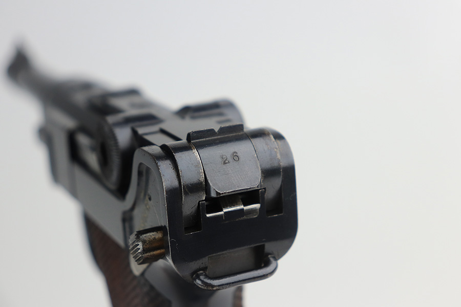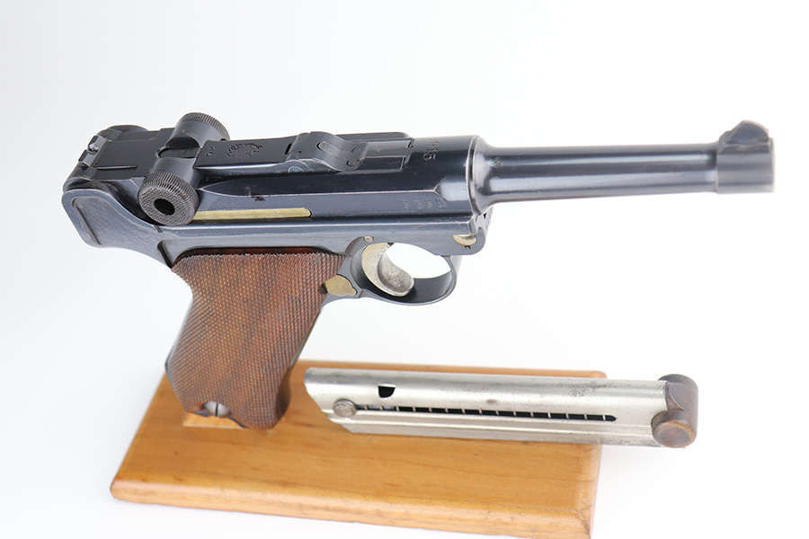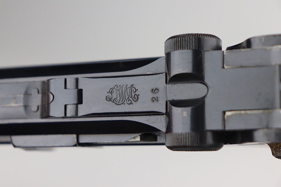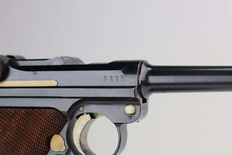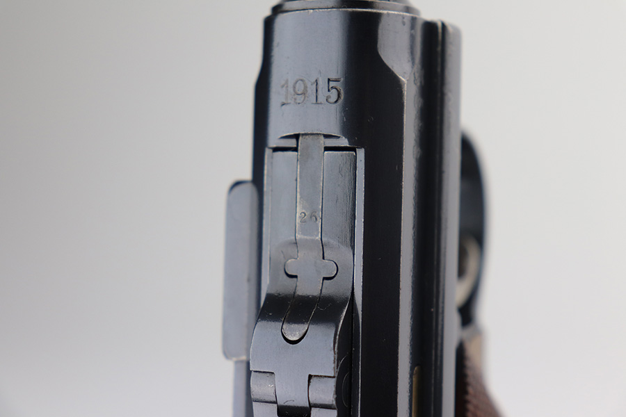 2/2/22 – This is a near-mint example of a DWM Luger issued to the Imperial German military in 1915. The gun is all matching and has the proper Imperial proofs. It has retained about 98% of its original finish with just a hint of wear on the side plate, around the muzzle, and base of the straps. Some very tiny freckles on the straps. Excellent matching grips and a period-correct mismatched magazine. The bore is excellent – shiny with strong rifling.