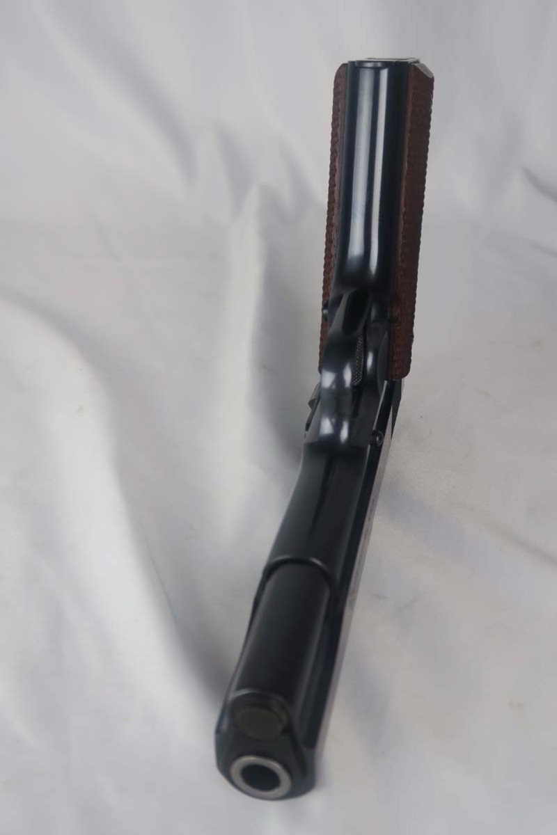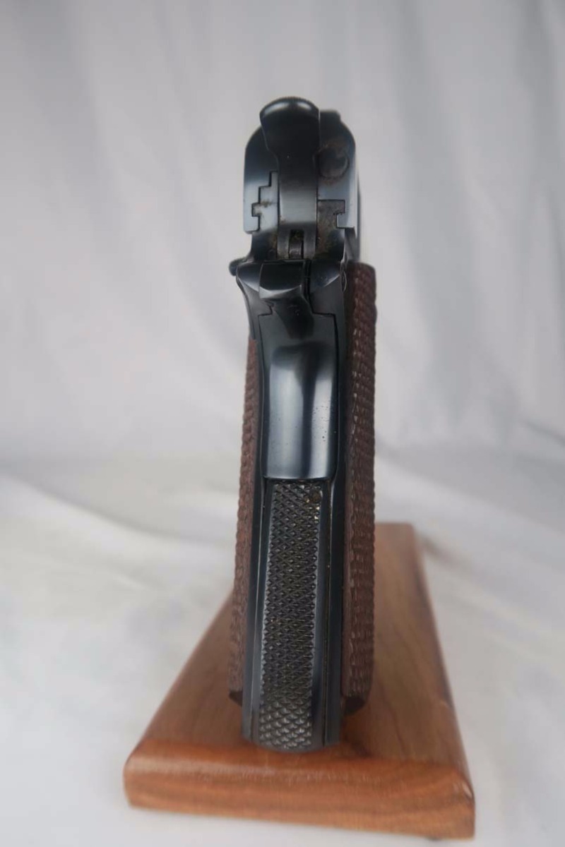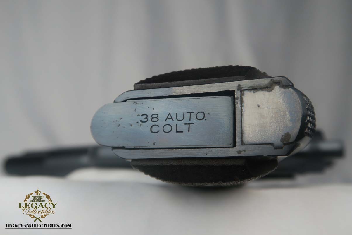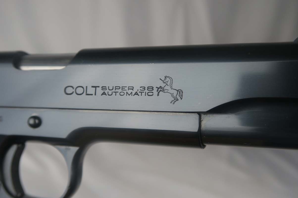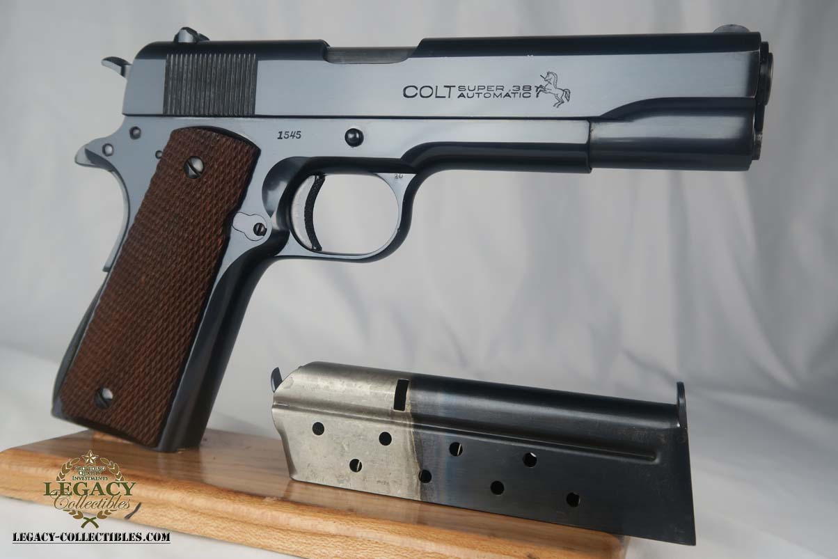 5/31/17 – This is a stunning Colt .38 Super, manufactured in 1929 (first year of production).  The original finish rates at about 99%, with two very minor spots of freckling on the left side of the slide.  The photos may should a couple of spots of gunk, such as the bottom of the frame near the mag well, but these spots will all clean up perfectly with a proper cleaning.  This pistol is all correct and original with two-tone factory magazine.  Excellent bore.  Difficult piece to find with such an early manufacture date, and even more difficult to upgrade!