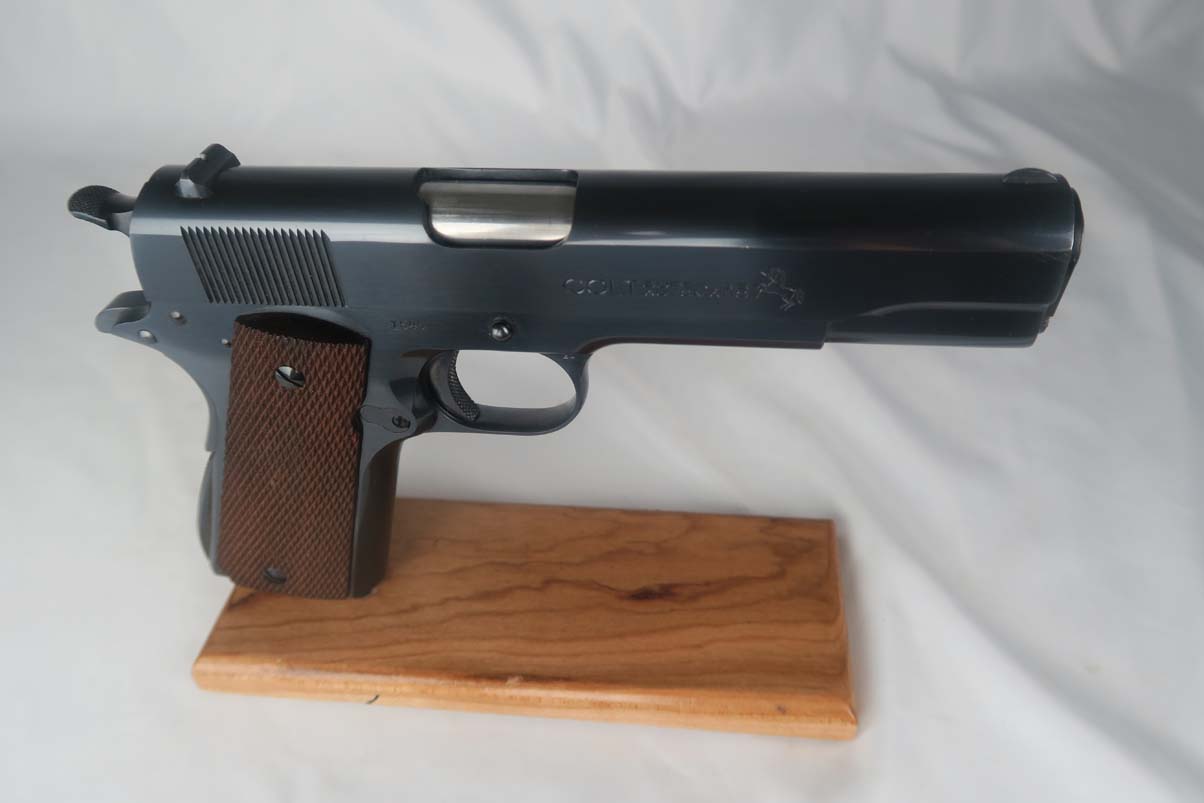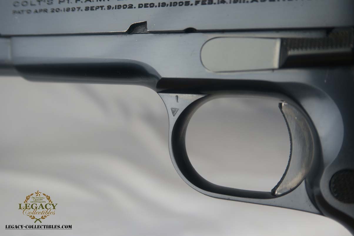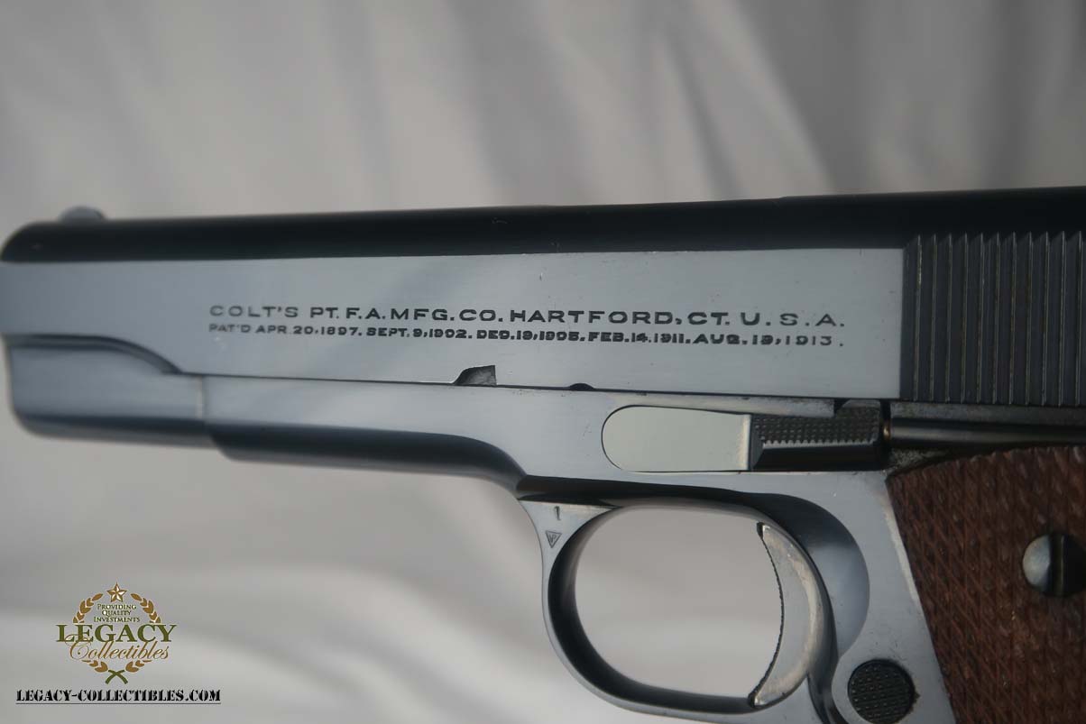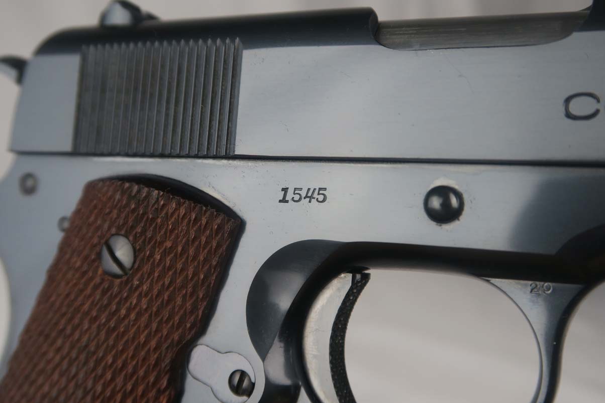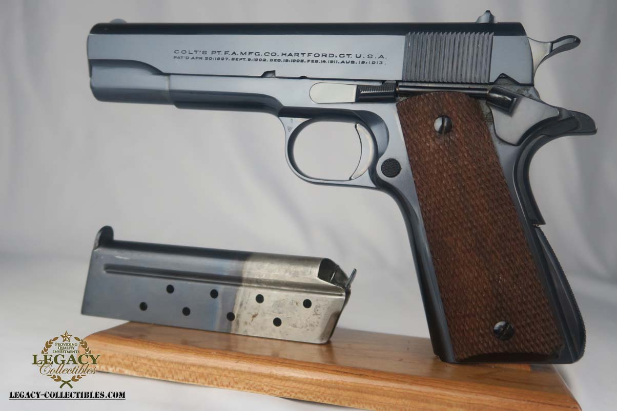 5/31/17 – This is a stunning Colt .38 Super, manufactured in 1929 (first year of production).  The original finish rates at about 99%, with two very minor spots of freckling on the left side of the slide.  The photos may should a couple of spots of gunk, such as the bottom of the frame near the mag well, but these spots will all clean up perfectly with a proper cleaning.  This pistol is all correct and original with two-tone factory magazine.  Excellent bore.  Difficult piece to find with such an early manufacture date, and even more difficult to upgrade!