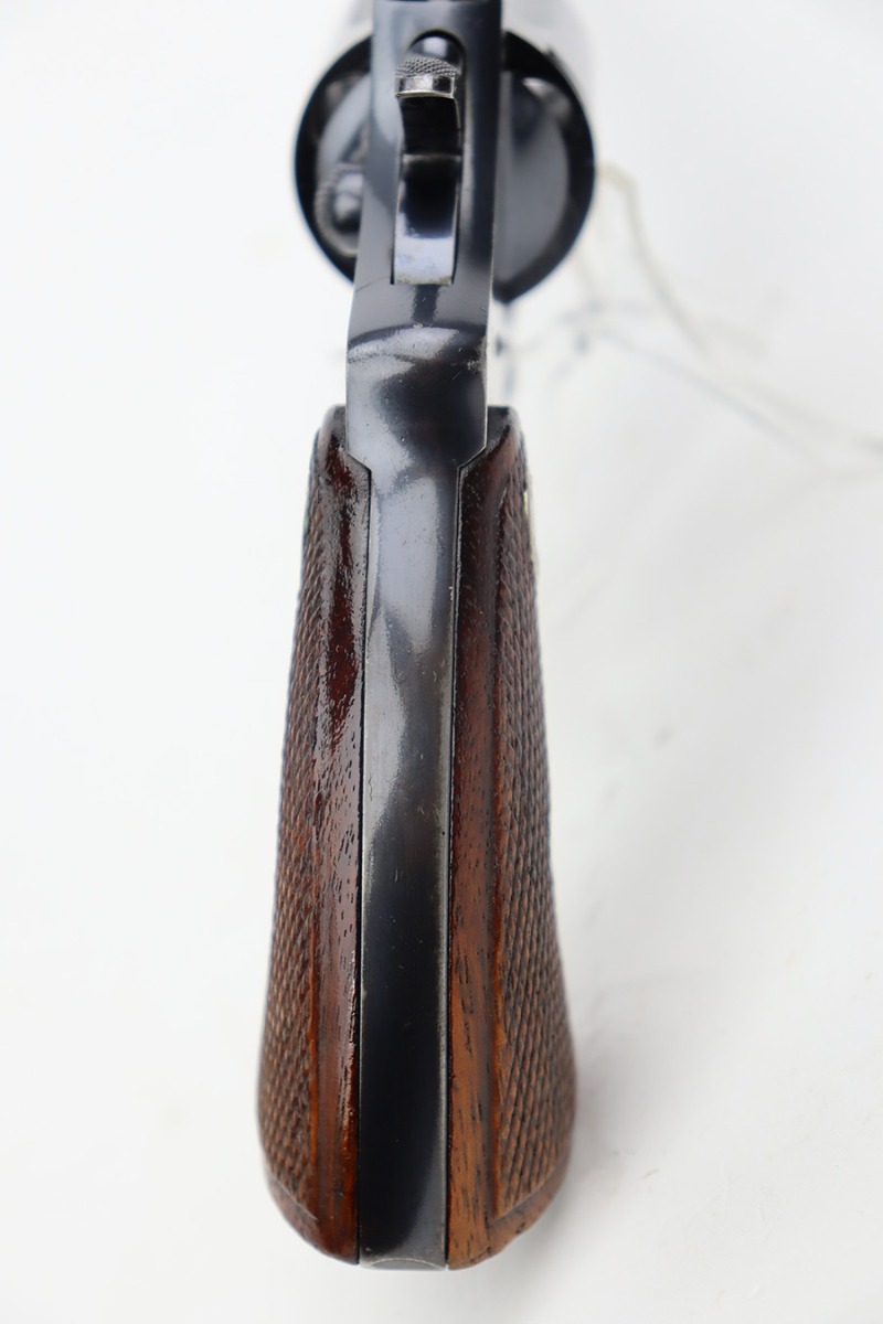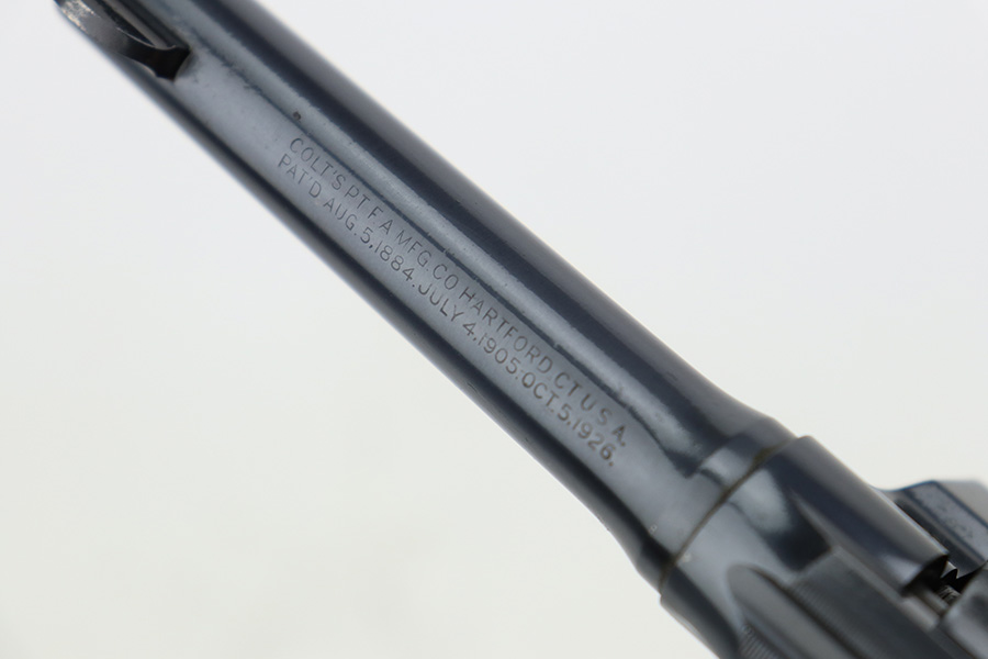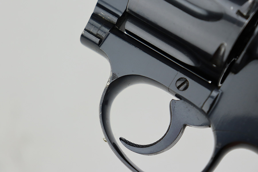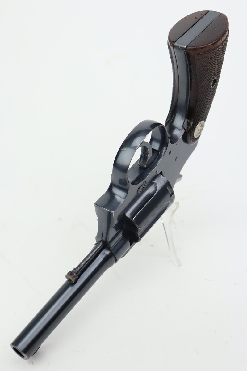 8/14/23 – This is a minty example of a Colt Police Positive Special Revolver, manufactured in 1930 and chambered in .38 Special. It has retained about 97% of its original high polish Colt bluing with very minor wear around the muzzle and around the edges of the back strap. Extremely light roll mark on the cylinder. Fitted with minty hand-checkered wood grips. Stone-mint bore.