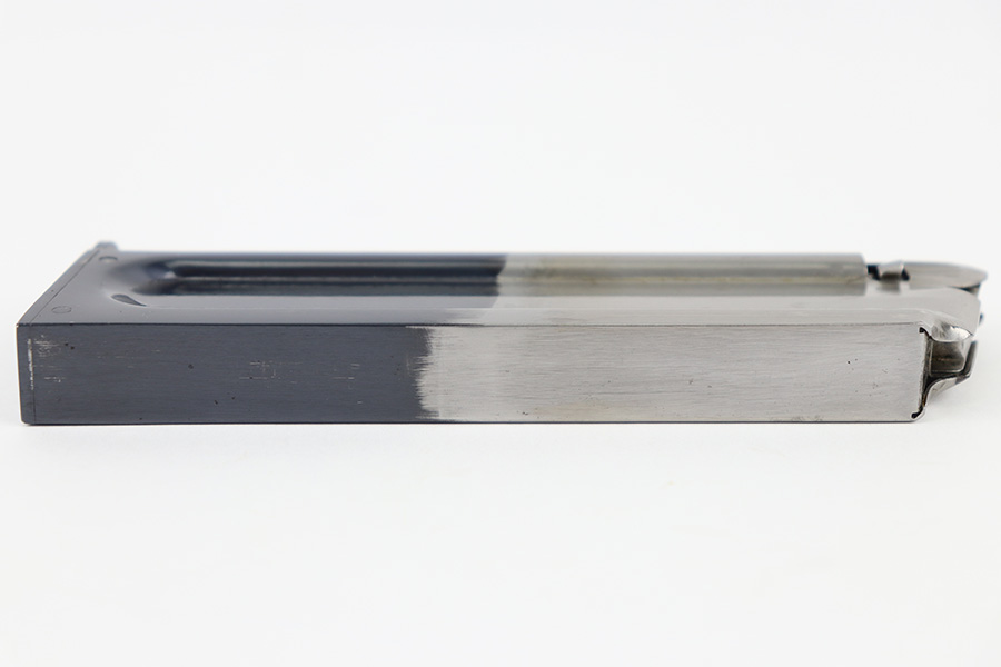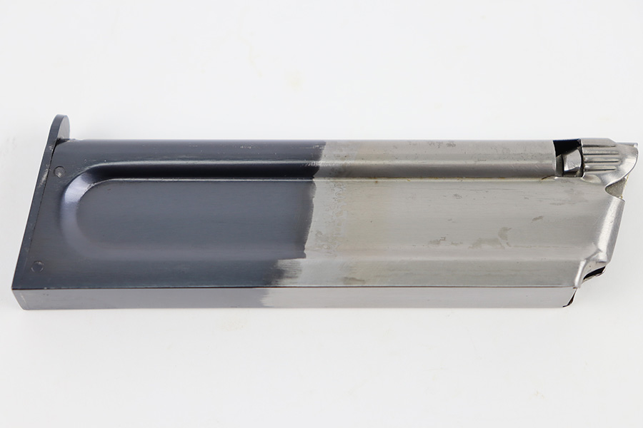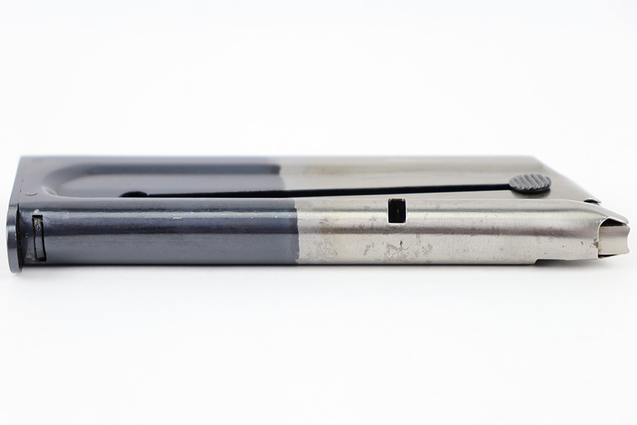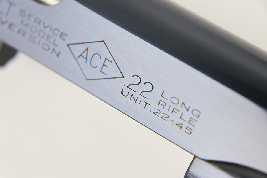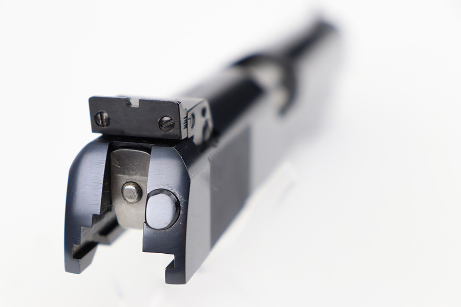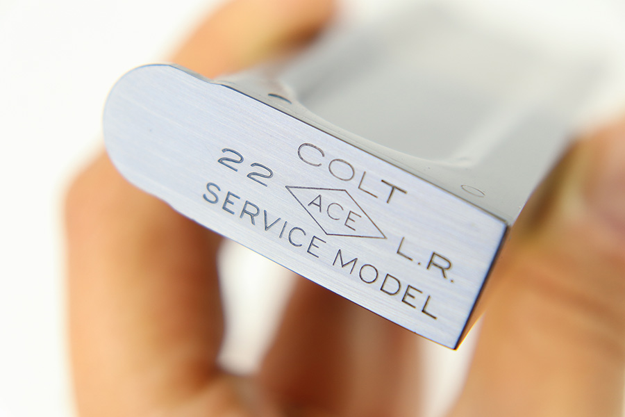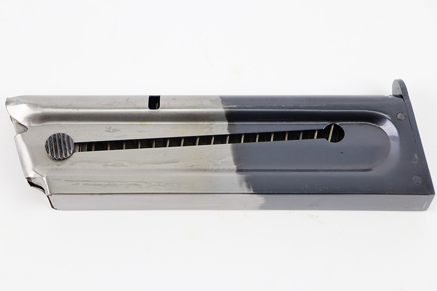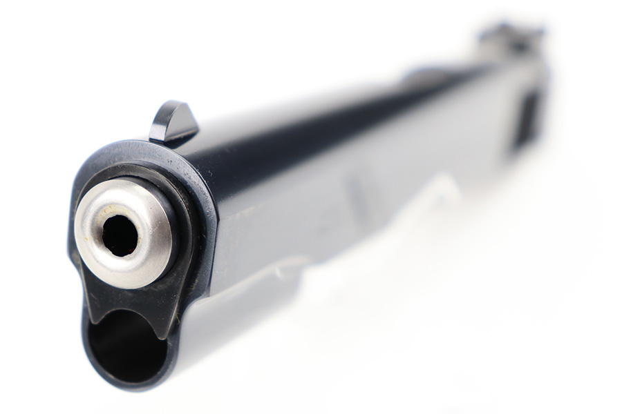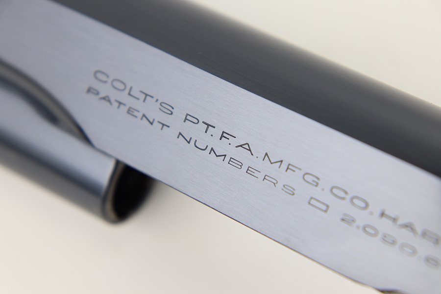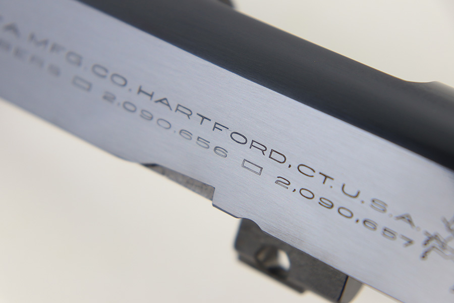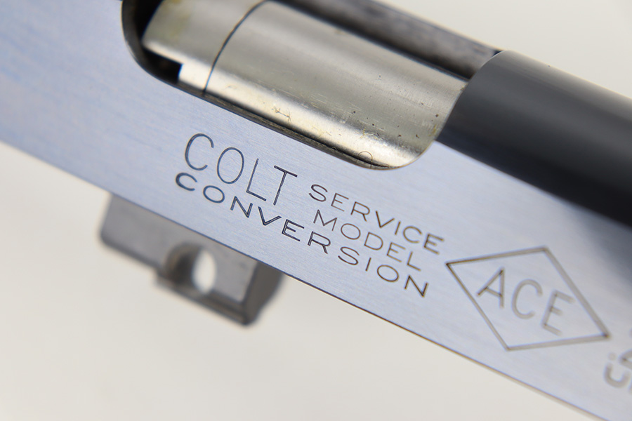 10/5/23 – This is an excellent, minty condition example of a rare pre WW2 production Colt Conversion Kit. The kit is complete with the original box, barrel, slide, recoil spring, barrel bushing, magazine, and wrapping paper. Everything shown in photos. The slide is complete with fixed front sight, adjustable rear sight, extractor, firing pin with spring, and features a floating chamber. The original finish is shiny and clean throughout the slide and blued portion of the magazine. The bore is equally mint with strong rifling throughout. A near-impossible to upgrade example.