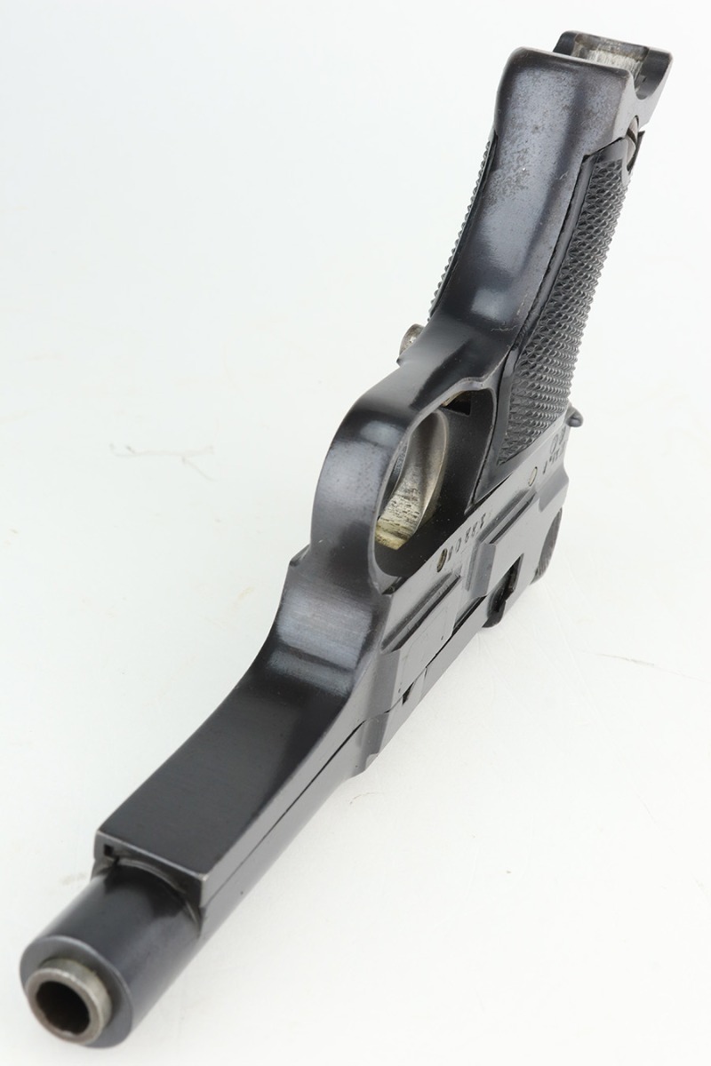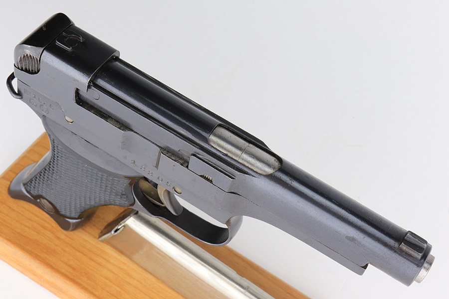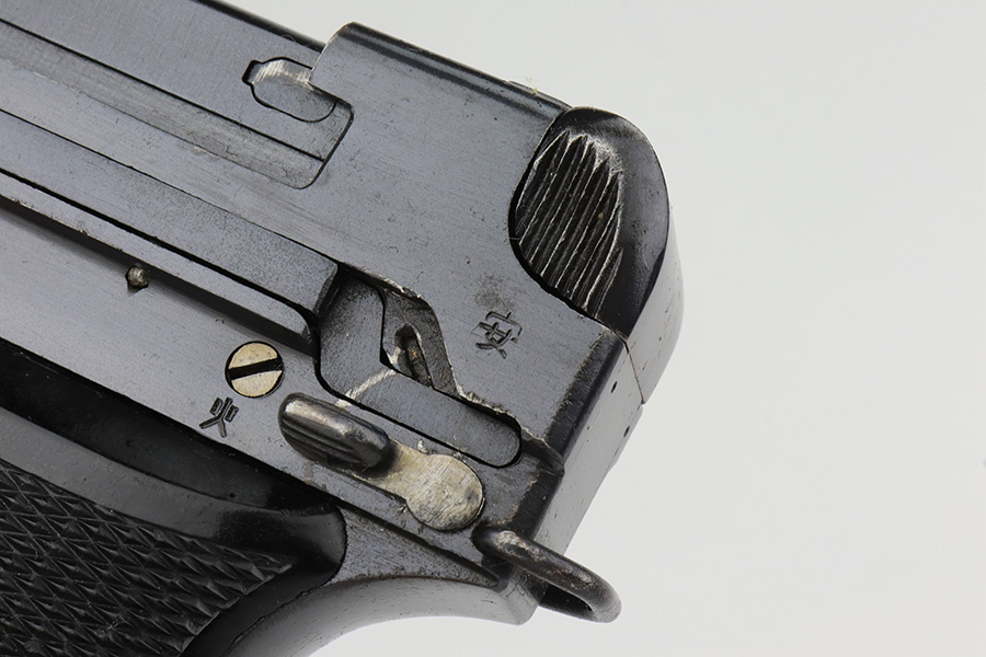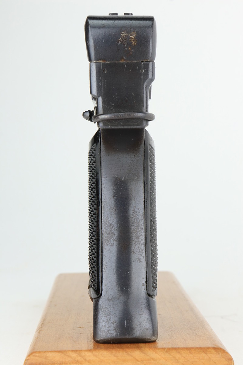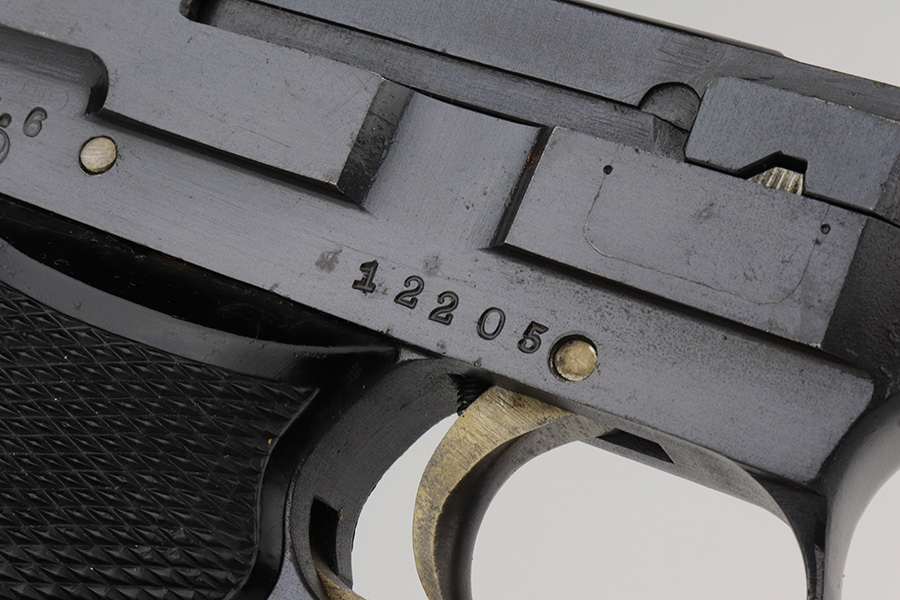 3/3/23 – This is a near-mint example of a Nambu Type 94 issued to the Japanese military in June of 1940. It is all matching and comes with one original matching-numbered magazine. It has retained essentially all of its original finish with just some light pin-pricking / dulling on the grip straps. Fitted with excellent period-correct black bakelite grips. The bore has good rifling with very minor pin-pricking throughout.
