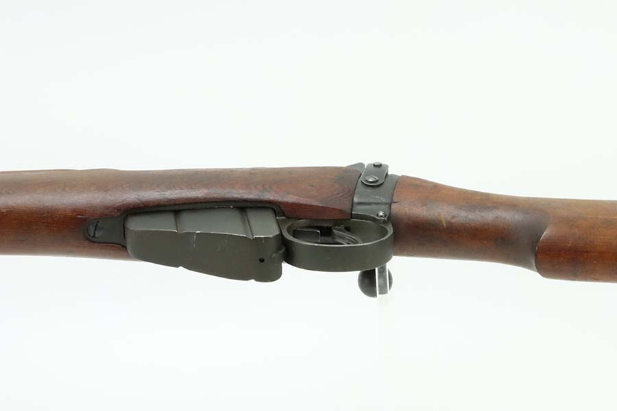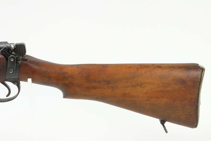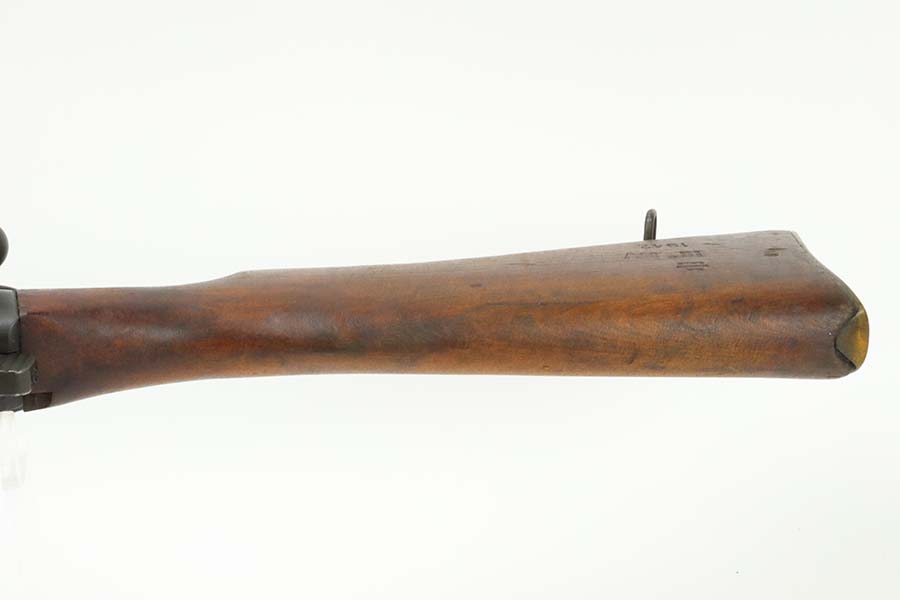 3/27/24 – This is a minty example of an Australian Lithgow SMLE Mk III* Rifle, manufactured in 1942. The gun is all matching and has the proper military proofs. No import marks. The stock is also matching and has crisp markings on the right side of the butt stock. The metal parts have retained nearly all of their parkerized finish with just hints of high edge wear and some very light surface scuffs here and there. Excellent wood furniture. Stone-mint bore.