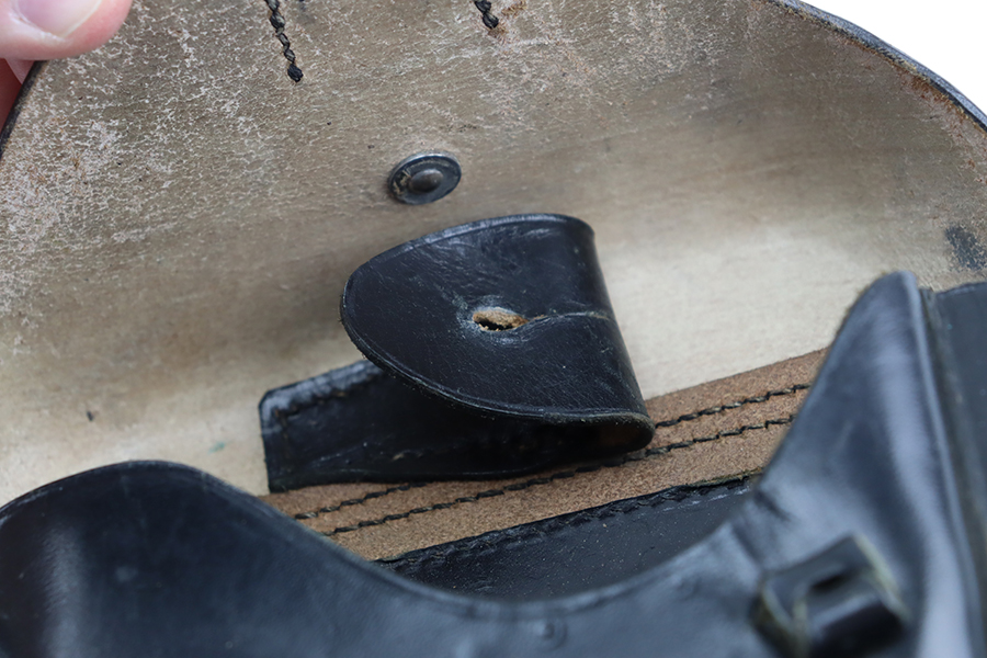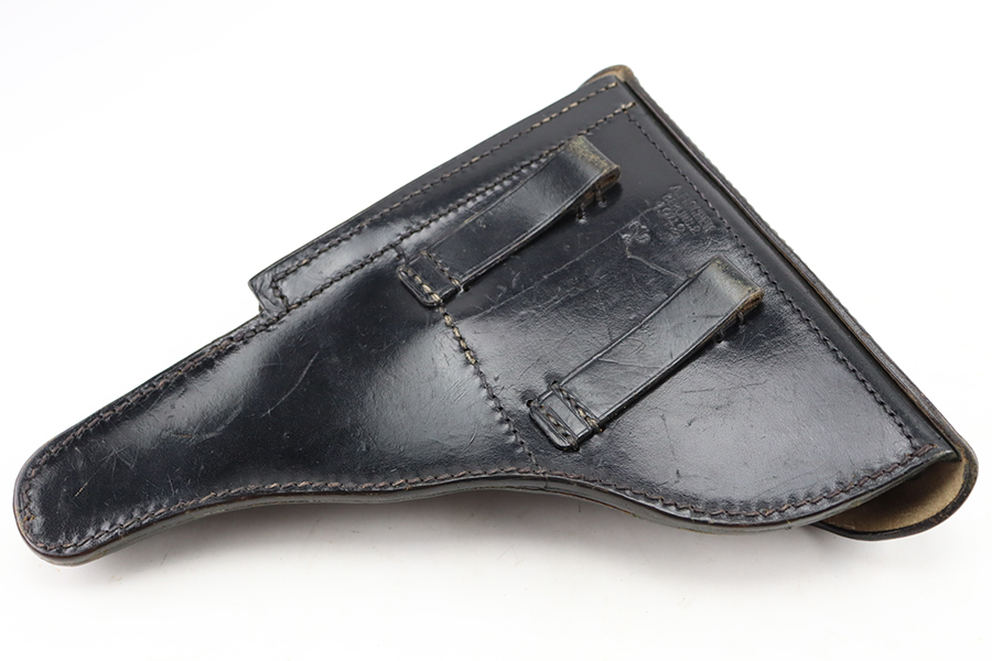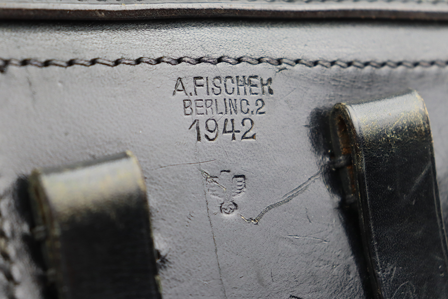 1/18/24 – This a minty 1942-dated police-style holster for a Luger. It is maker marked “A. Fischer Berlin”, dated 1942, and has a police Eagle marking. It also has a “1426” police unit marking under the closure strap. Overall, the holster is in near-unissued condition. Excellent stitching. Clear markings.
