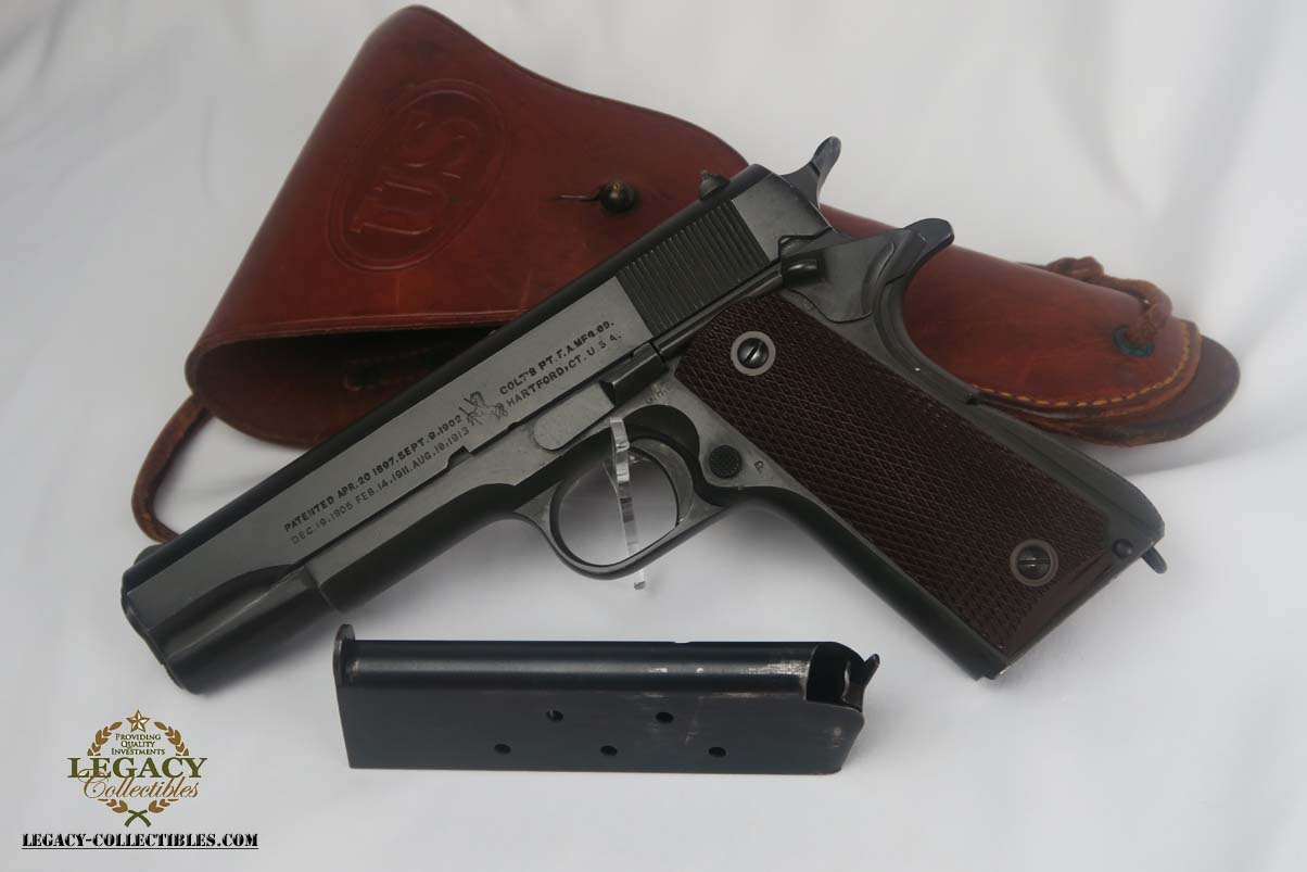 SOLD – Minty 1943 Colt M1911A1 with holster and factory letter!