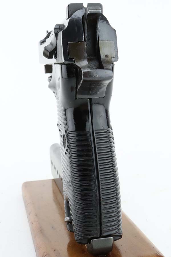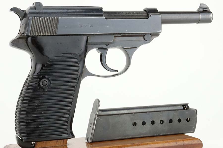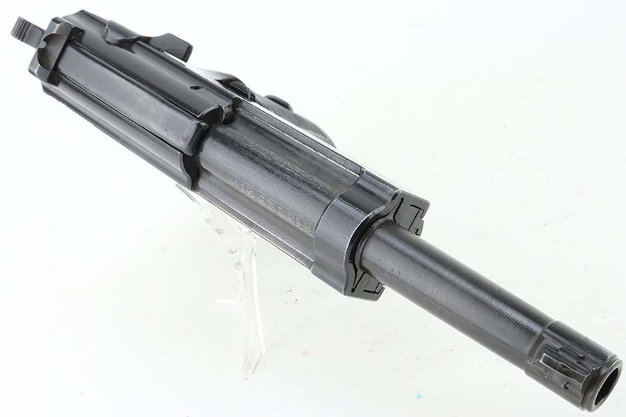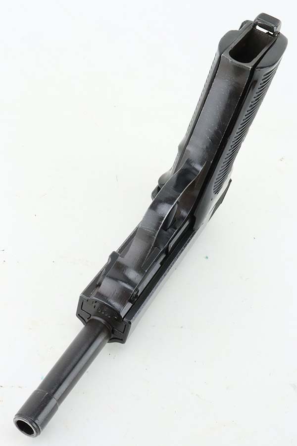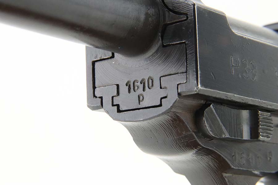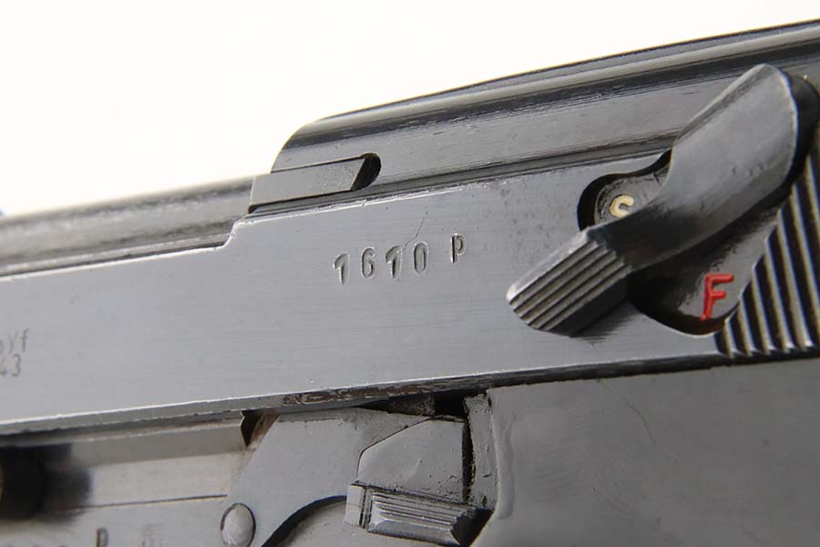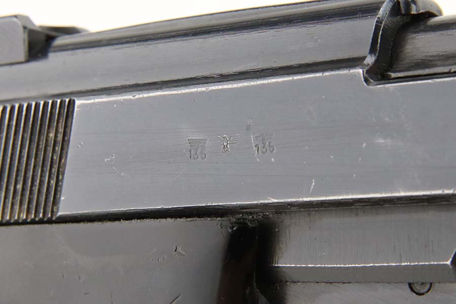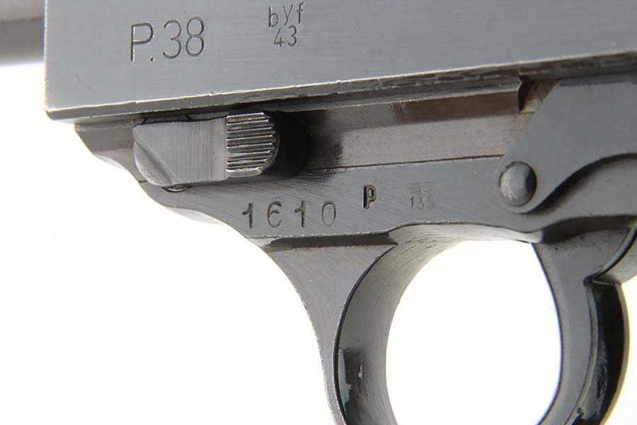 3/18/24 – This is a minty example of a BYF 43 Mauser P.38 issued to the Nazi military in 1943. All matching with the proper “Eagle 135” military acceptance proofs. It has retained nearly all of its finish with hints of high edge wear and muzzle wear and some very minor discoloration on the front strap. Fitted with black plastic grips. Mint bore. De-cocker is functional.