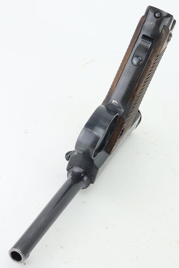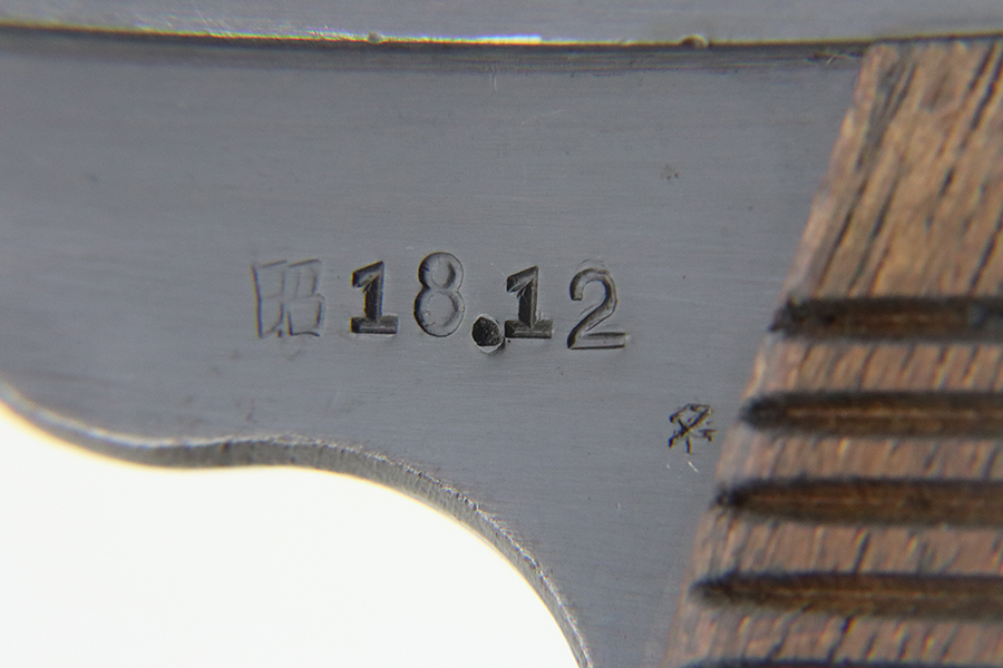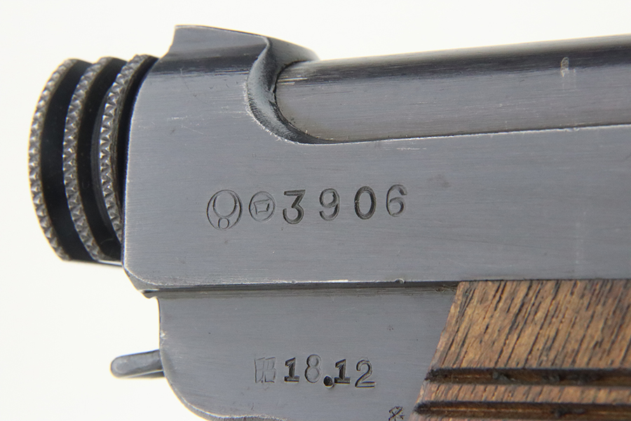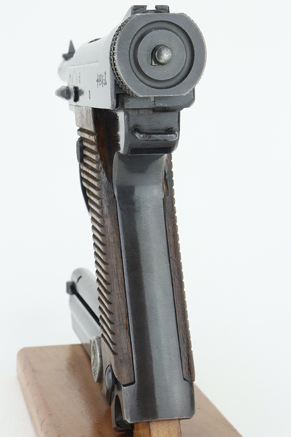 5/28/24 – This is a beautiful example of a Nambu Type 14 issued to the Japanese military in December of 1943. All matching aside from the trigger, and comes with an original matching-numbered magazine. It has retained essentially all of its original finish with no signs of wear. Fitted with excellent matching-numbered wood grips. Minty bore.