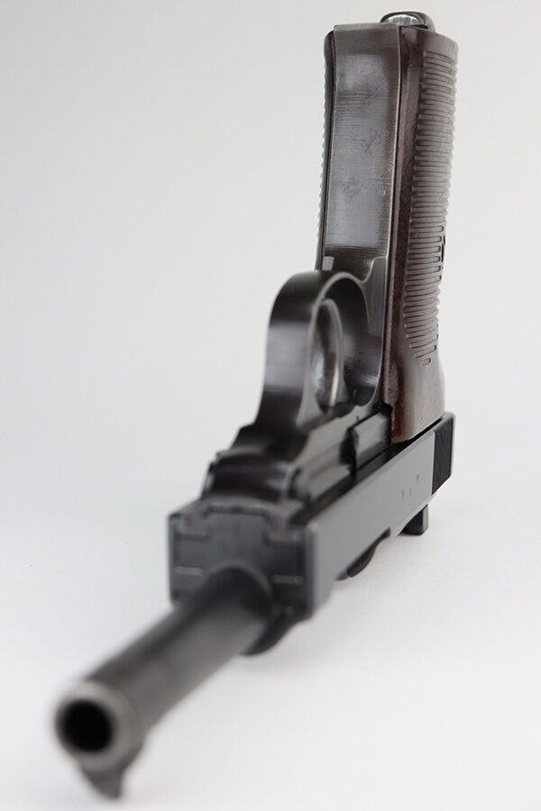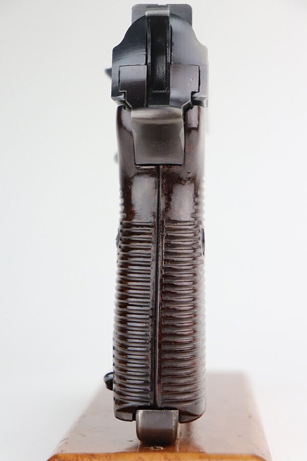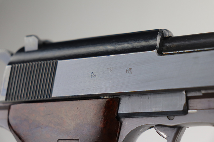 12/21/22 – This is a minty example of a Walther P.38 issued to the Nazi military in 1943. It is all matching and has the proper “Eagle 359” military proofs. It has retained about 98% of its original finish. There is just very minor thinning, spotty oxidation, and few very small dings on the front strap. Comes with excellent grips and a period-correct Walther magazine. The bore is mint. De-cocker is fully functional.