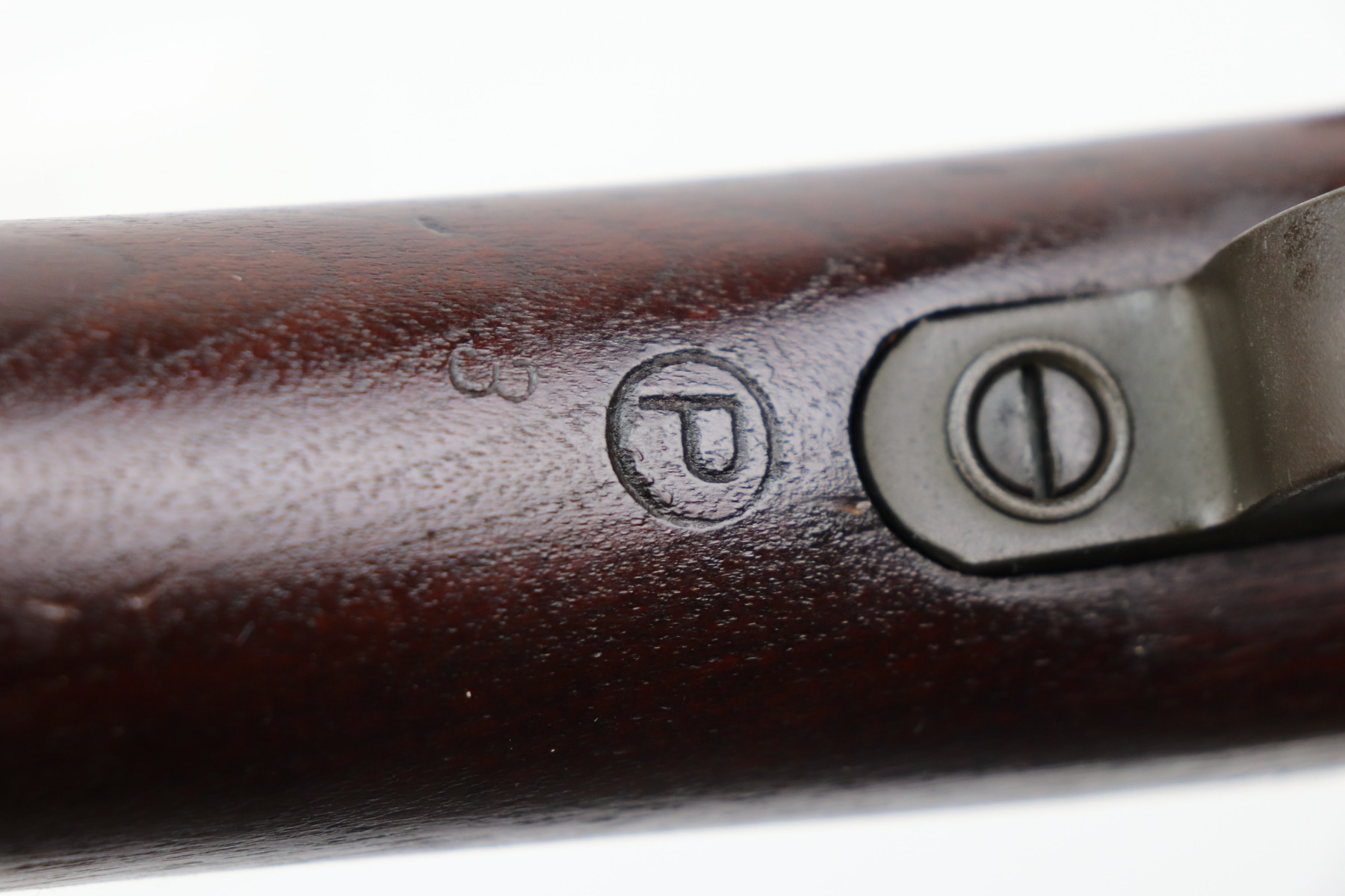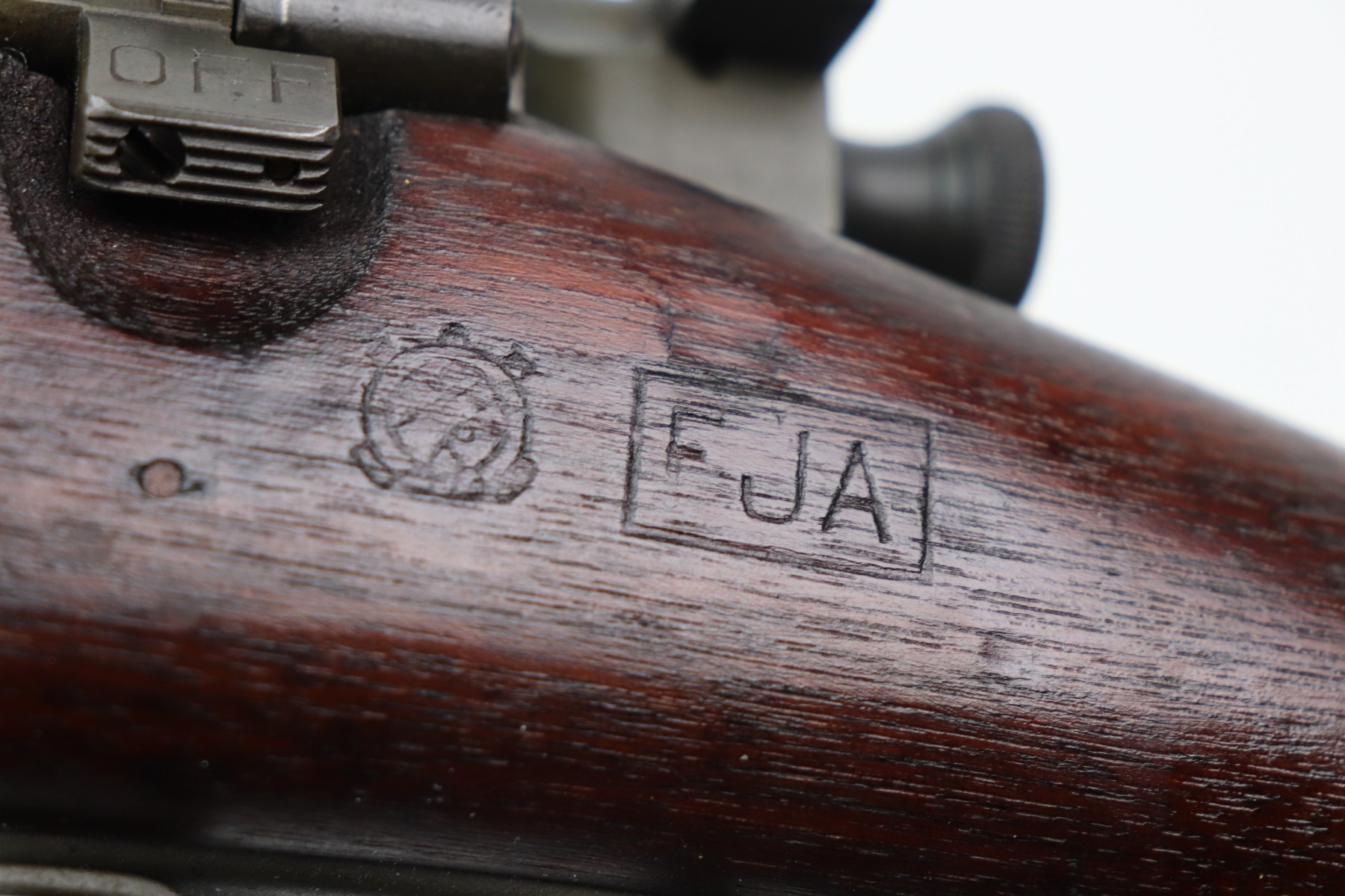 2/24/21 – This is a minty example of a Remington Model 03-A3 Rifle issued to the US military in February of 1943. The gun is all correct. It has a flaming bomb proof on the barrel. Cross-canon military cartouche and “FJA” inspector proof on the stock. The metal parts have retained virtually all of their finish – just a few very minor handling marks on the barrel. The stock is minty – just a few very minor dings and scratches here and there. The gun comes with an original canvas sling. The bore is mint.