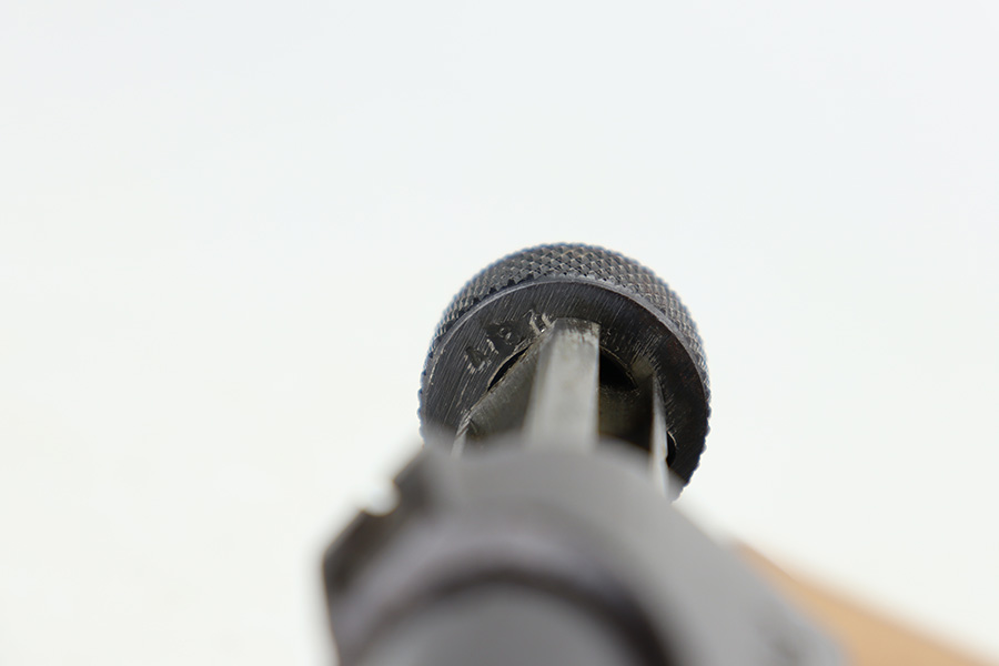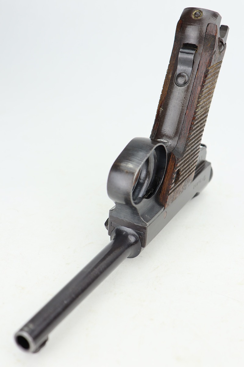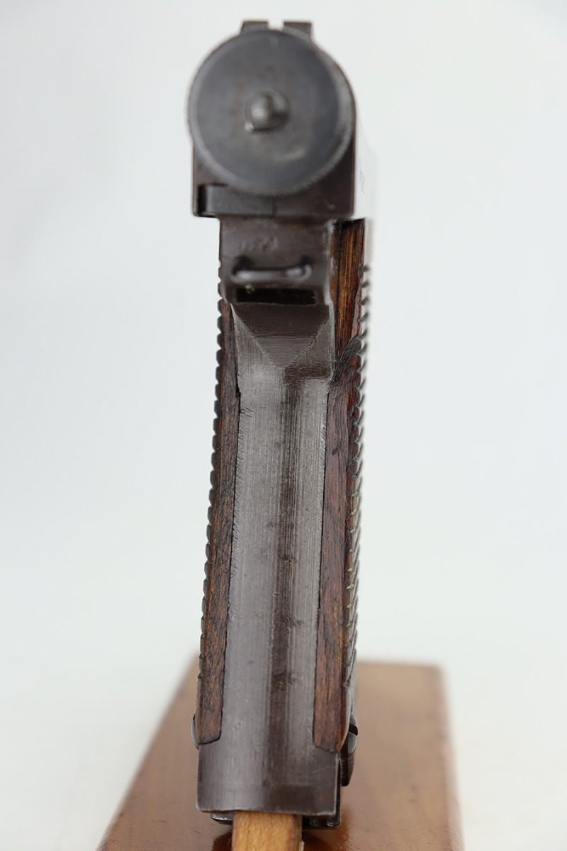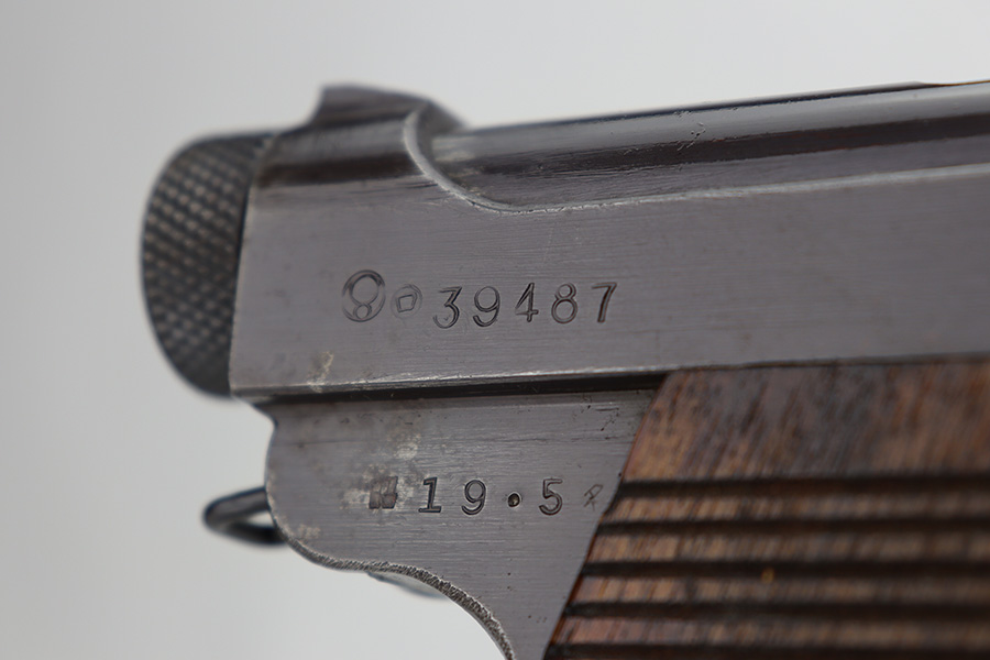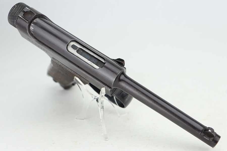 12/27/23 – This is a near-mint example of a Nambu Type 14 issued to the Japanese military in May of 1944. All matching and has retained nearly all of its original finish – just the slightest hints of thinning on the grip straps. The bluing has a nice plum tint to it. Fitted with minty matching-numbered wood grips. Comes with a mismatched but period-correct magazine. Like-new bore.
