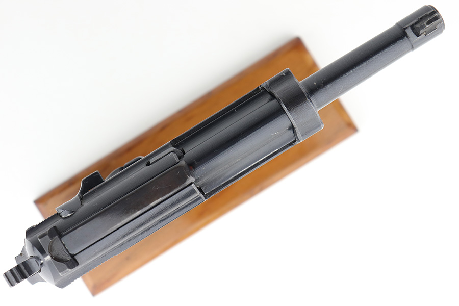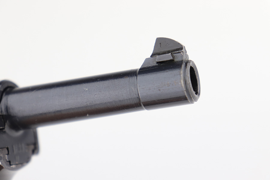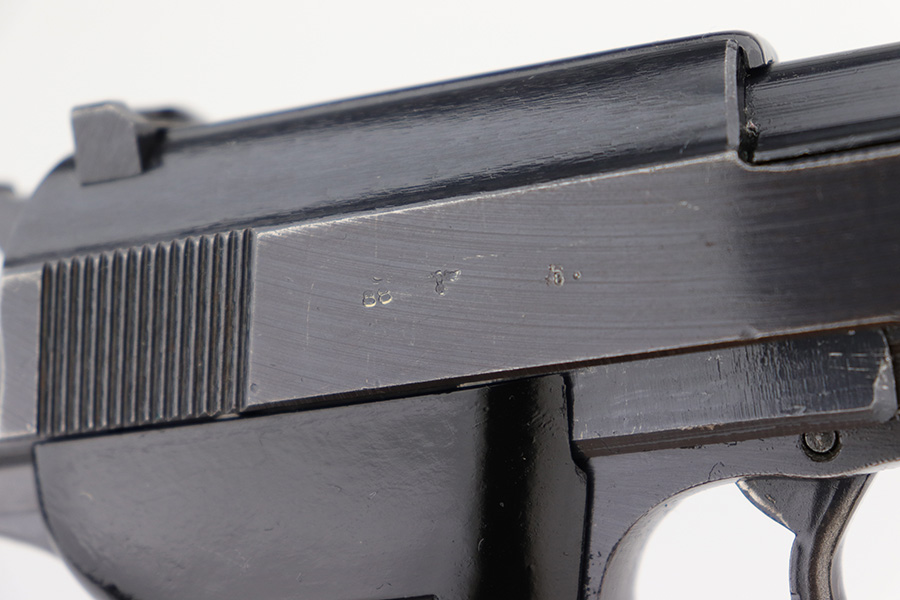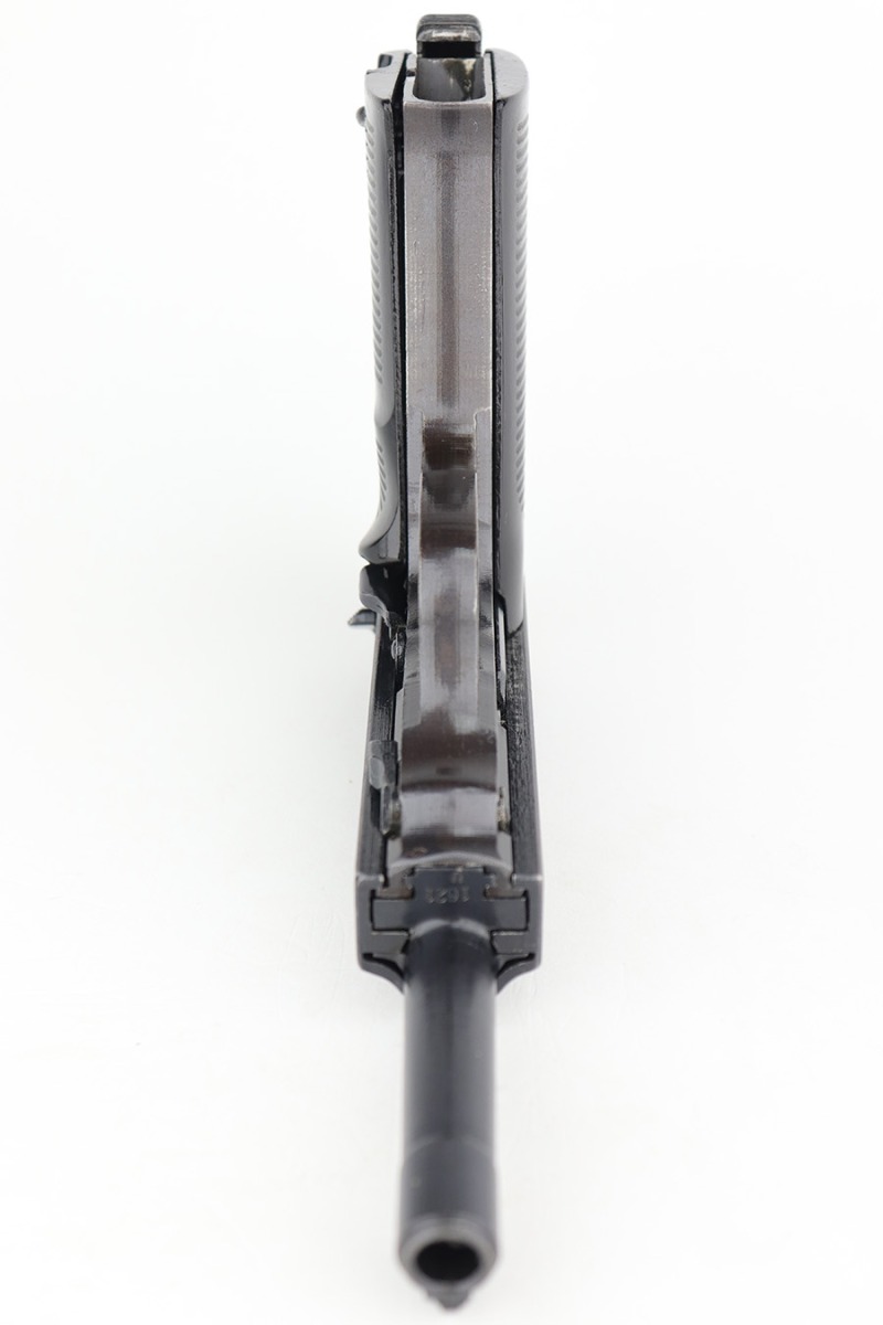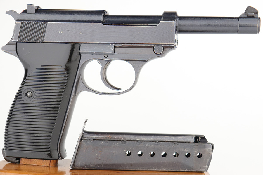 1/13/23 – This is a minty example of a Spreewerk P.38 issued to the Nazi military in September of 1944. It is all matching and has the proper “Eagle 88” military acceptance proofs throughout. It has retained around 98% of its finish. There are just hints of wear around some of the high edges and a hint of thinning on the front strap. Fitted with very nice black bakelite grips and comes with a period-correct jvd magazine. Factory-new bore. De-cocker is functional.