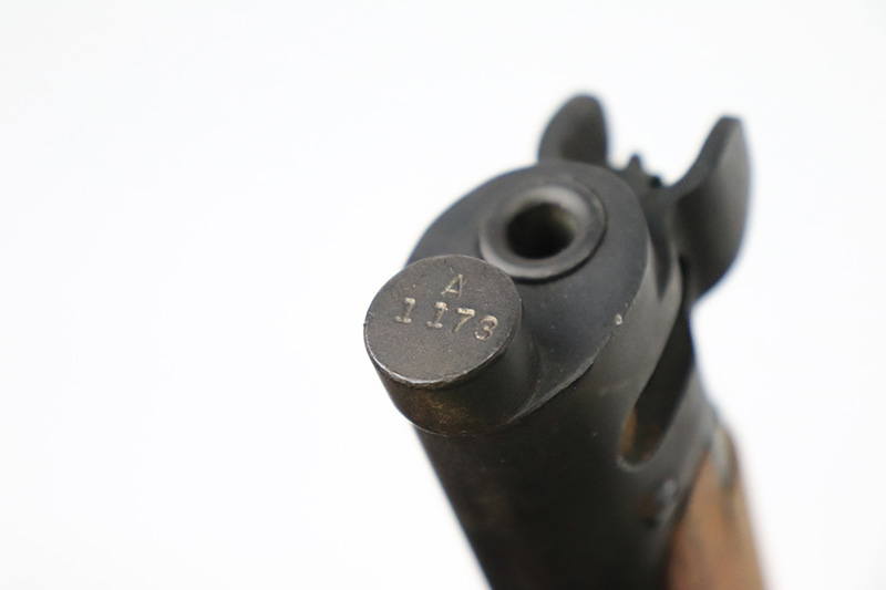 10/5/22 – This is a minty example of a Lithgow SMLE Mk III* Rifle, manufactured in 1945. The gun is all matching and has the proper military proofs. The gun is excellent throughout, with just a bit of wear on the bolt handle. The stock is excellent with minor handling marks here and there, and sharp markings. Mint bore. Small import mark on right side of receiver.