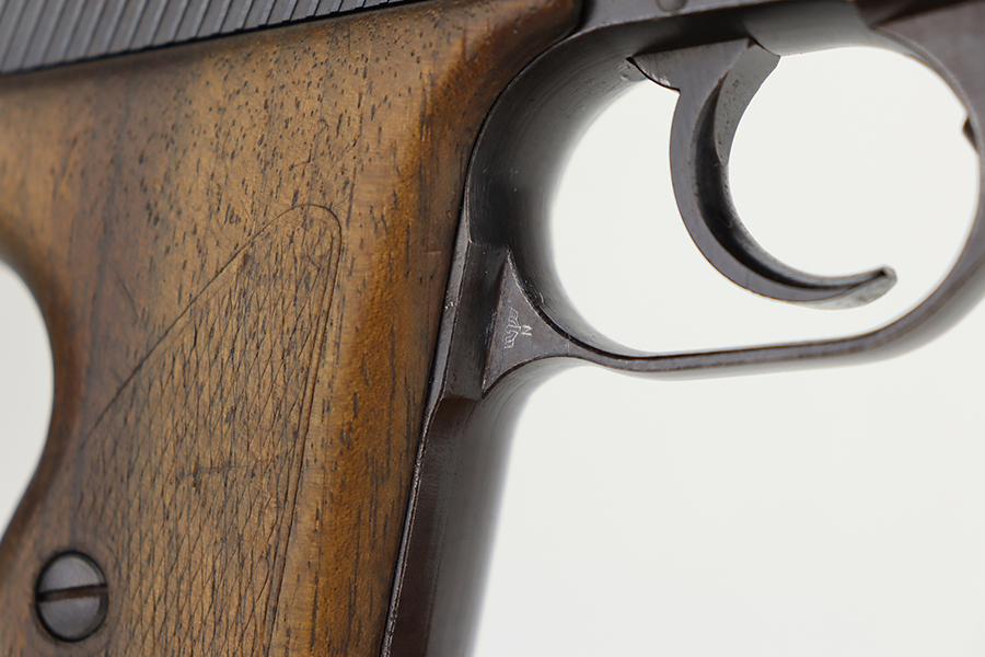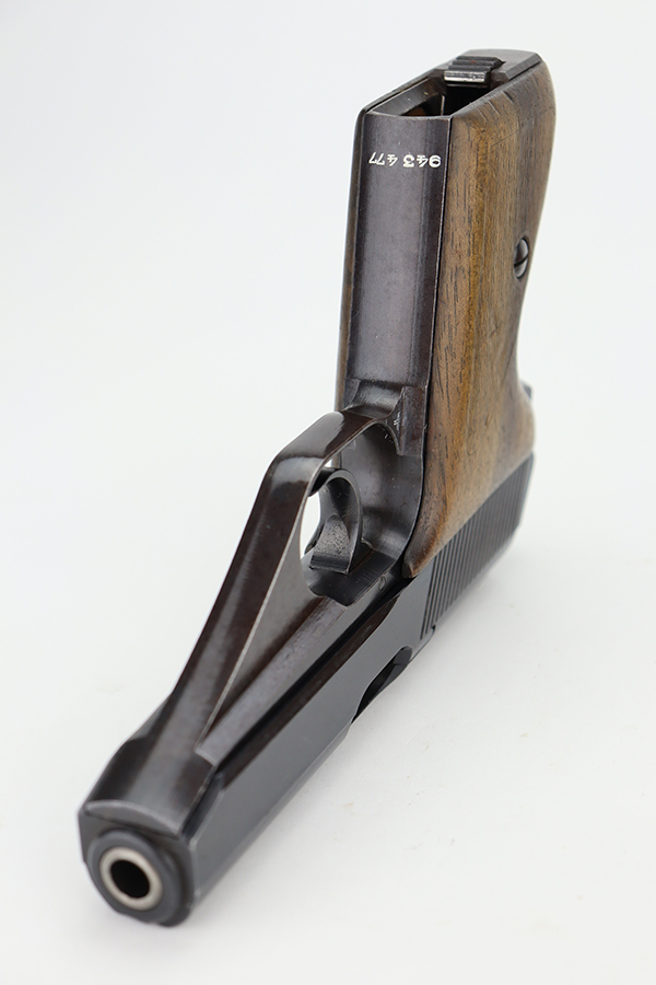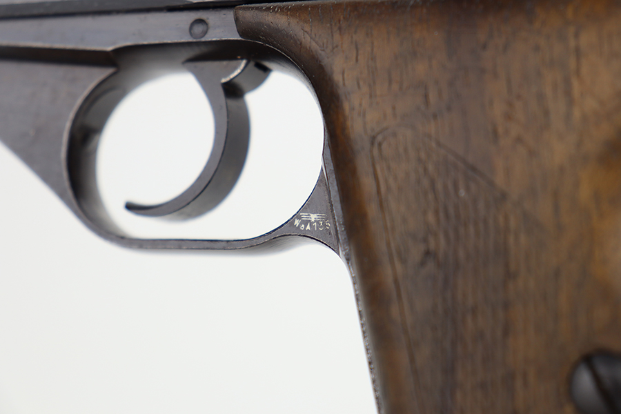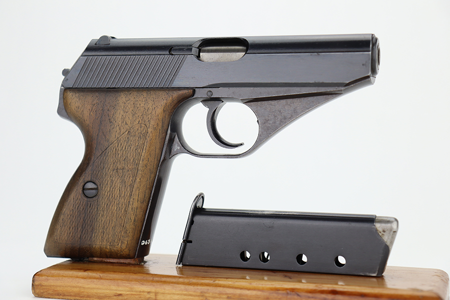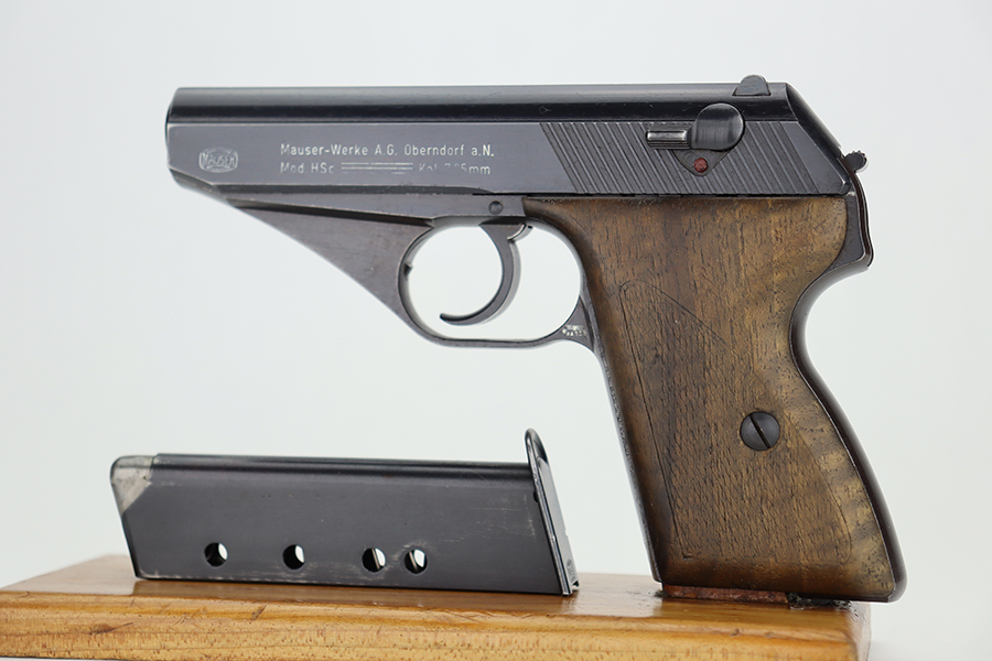 6/24/24 – This is a near-mint example of a Mauser HSC issued to the Nazi military in 1945. All matching with the proper “Waffen 135” military acceptance proof. It has retained nearly all of its original finish with just some minor freckling here and there. Fitted with period-correct wood grips. It is photographed with a post-war magazine but it will come with a proper wartime magazine. Minty bore.
