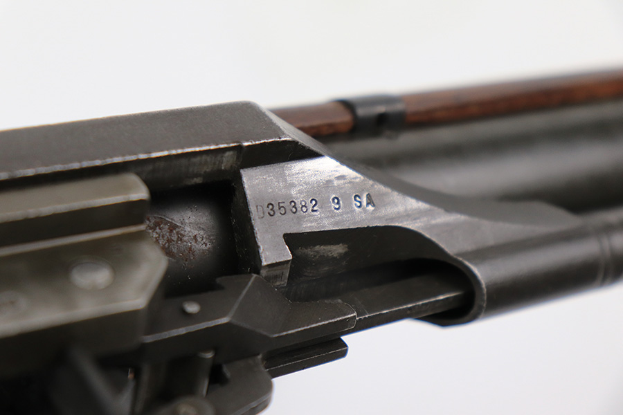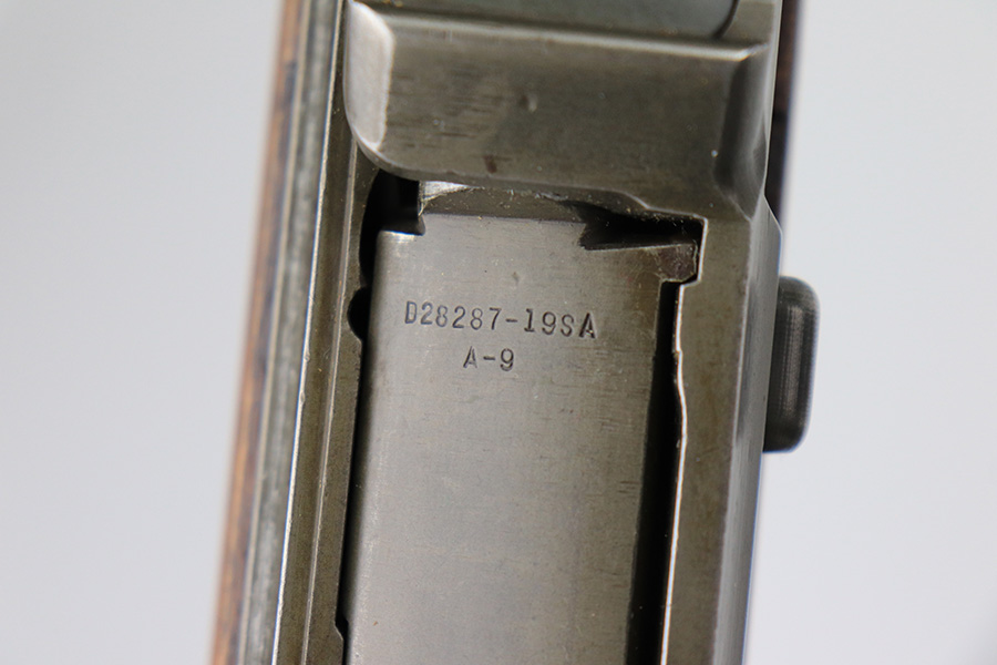 5/5/22 – This is near-mint example of a Springfield M1 Garand issued to the US military in 1945. The receiver dates to June of 1945 and the barrel is dated May of 1945. It also has the proper cross canon cartouche and “SA” inspection stamp on the left side of the stock. The gun has retained all of its finish with some very light scratchy wear on the barrel and gas tube and a few spots of minor discoloration on the receiver. The stock is in mint condition but has been sanded. The bore is in near-mint condition. Throat reading: 0. Muzzle reading: 1. Comes with a period-correct green canvas sling.