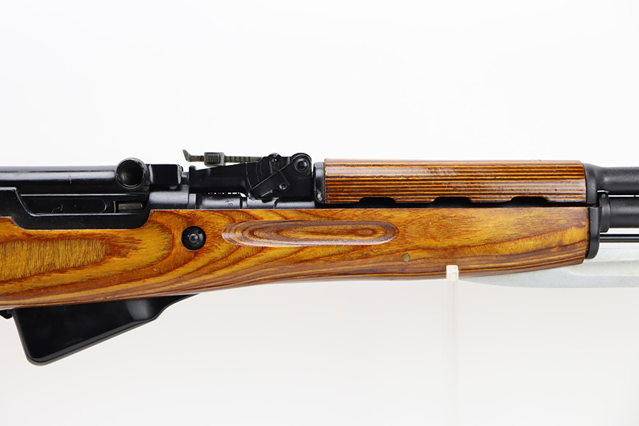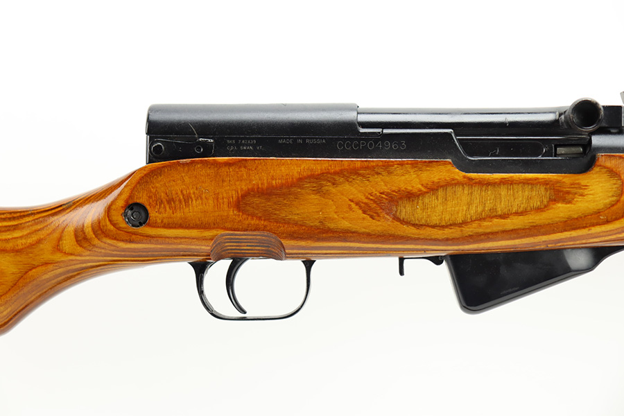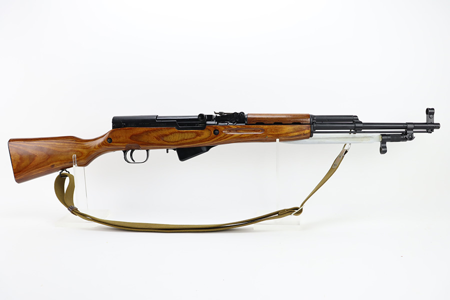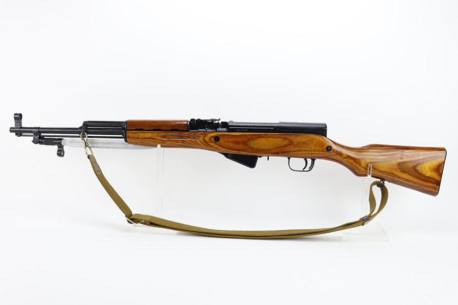 10/6/23 – This is a near-mint example of a Russian SKS, manufactured by Tula in 1953. It is all matching with an import mark and added serial number on the receiver. The metal parts have retained essentially of their finish. Near-mint wood furniture with just a few tiny handling marks. Mint bore. Comes equipped with a nice canvas sling.