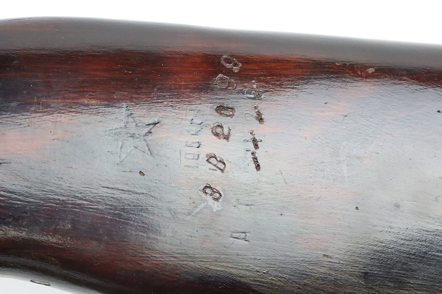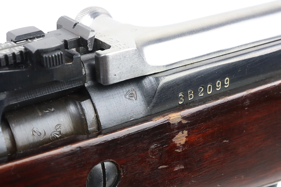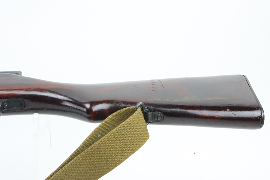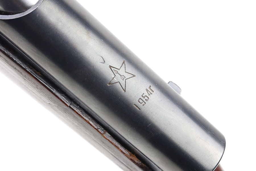 4/4/24 – This is a minty example of a Russian SKS, manufactured by Tula in 1954. It is all matching with an import mark and added serial number on the receiver. The stock and magazine have been re-numbered to match. Stock is also dated 1954 with a Tula makers mark. The metal parts have retained essentially of their finish. Small scratches and handling marks on the wood furniture. Mint bore. Comes with a nice canvas sling.