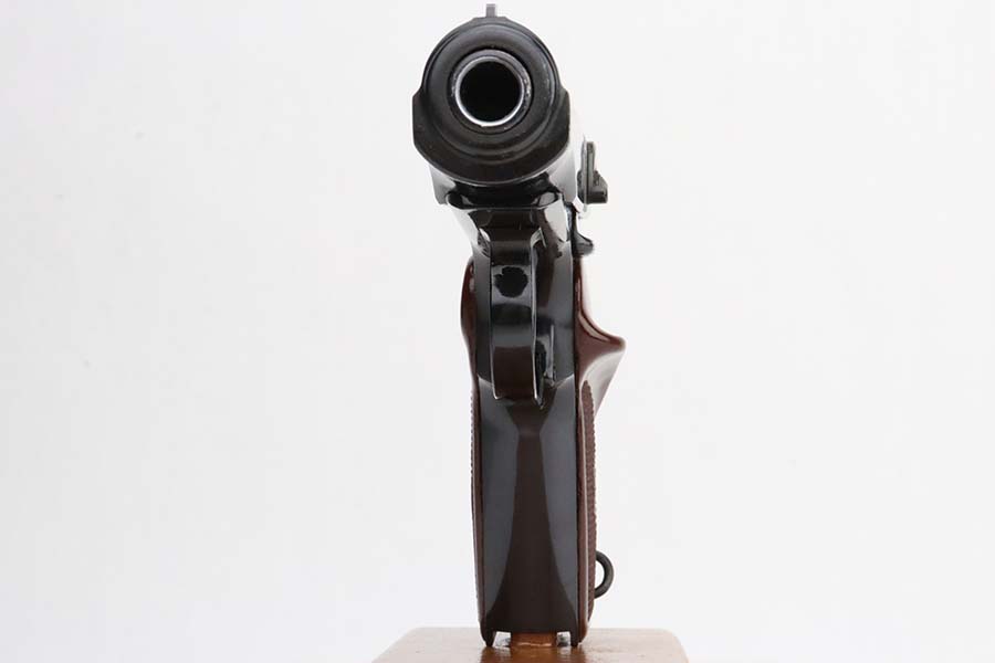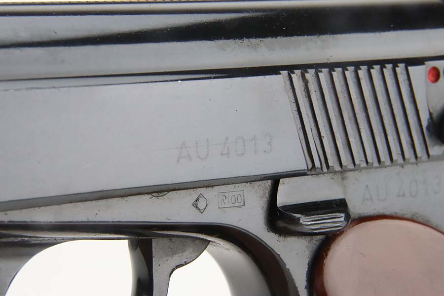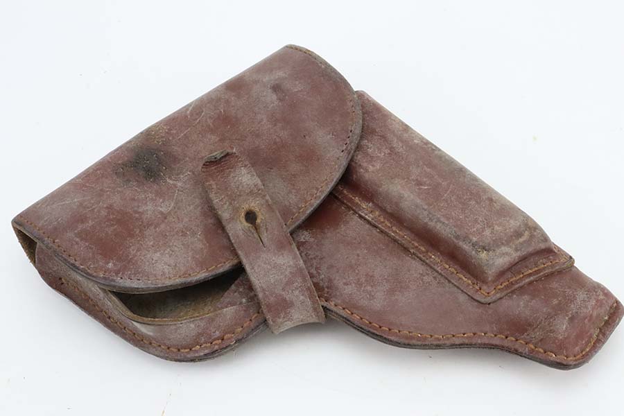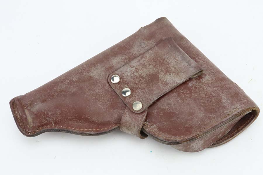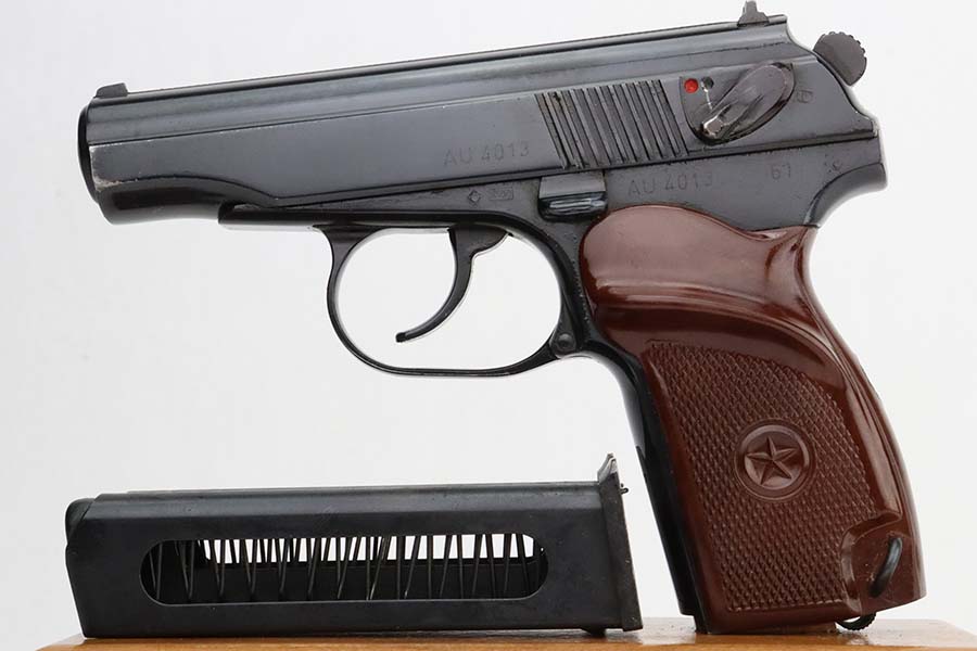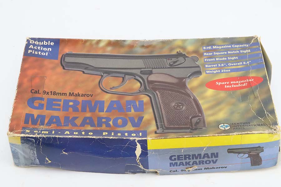 3/7/24 – This is a near-mint example of a German Makarov pistol from 1961, chambered in 9mm Makarov. It is all matching with an import mark on the right side of the frame. It comes with its matching-numbered box, leather holster, owners manual, and two magazines. The holster has some light white mold on it – should clean up just fine. The gun has retained nearly all of its original high polish finish with just very minor muzzle wear and a couple of small spots of very light freckling. Fitted with a proper reddish plastic grip. Stone-mint bore.