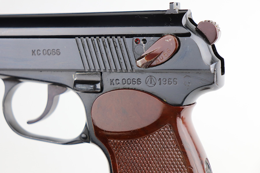 5/4/21 – This is a minty Makarov PM from 1966 with both of its original, matching magazines. The gun has just a few tiny spots of slide wear and an excellent bore. No import marks. Frame is dated 1966. Beautiful grips with no defects.