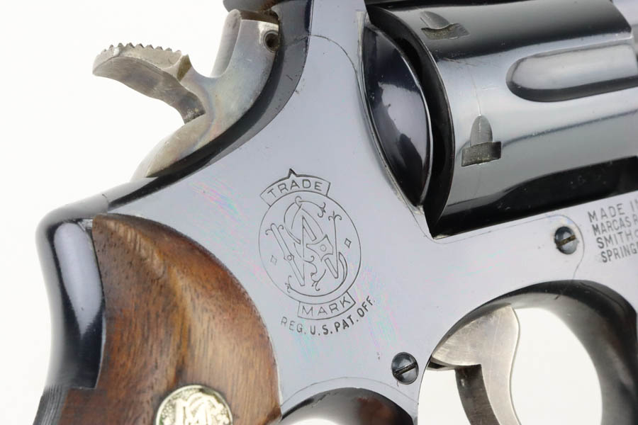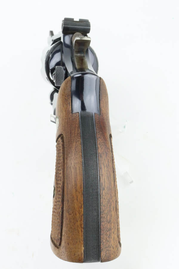 6/6/24 – This is a minty example of a Smith & Wesson 15-2 revolver, manufactured in 1966 and chambered in .38 Special. It has retained about 98% of its original high polish bluing with a hint of wear around the muzzle and a light roll mark on the cylinder. Excellent case-hardening on the hammer and trigger. Fitted with nice hand-checkered Walnut grips. Mint bore. Smooth action.