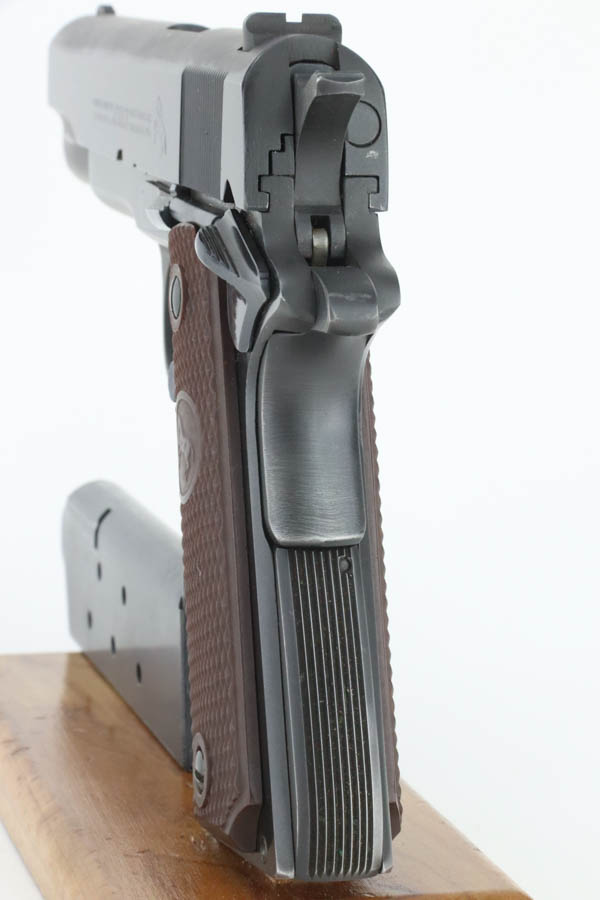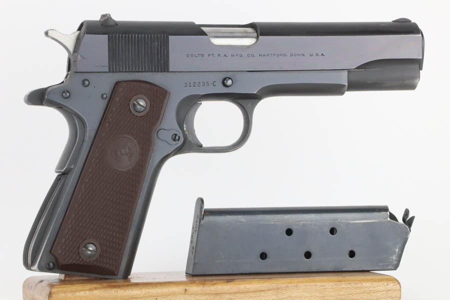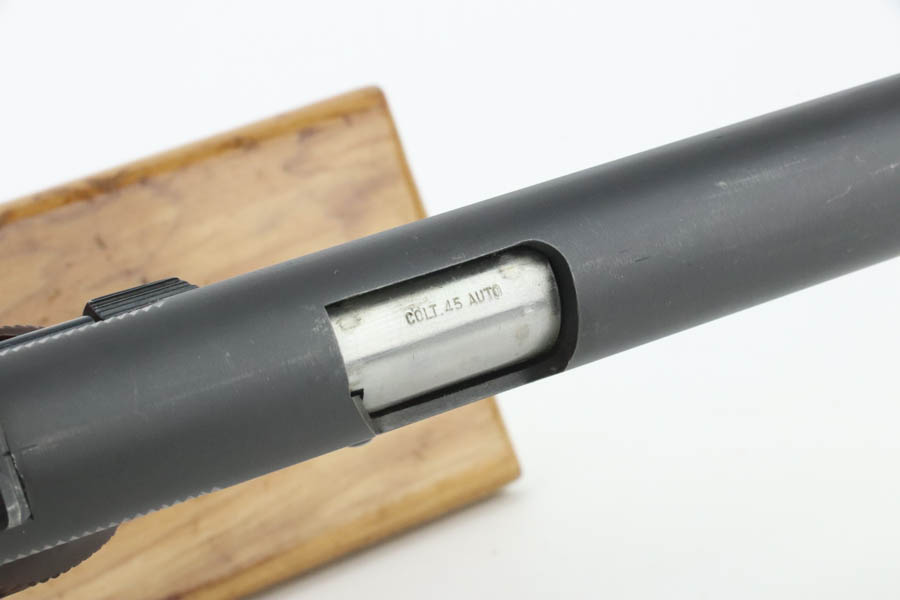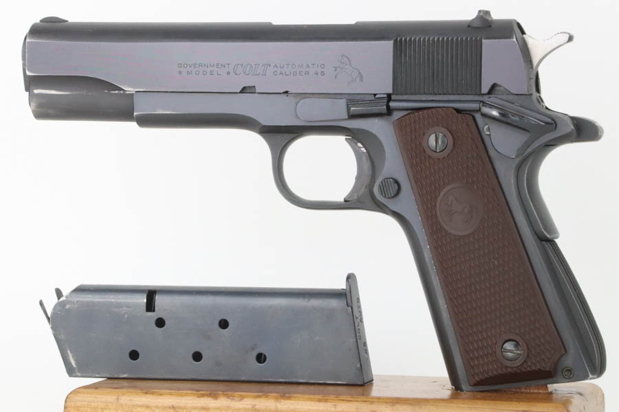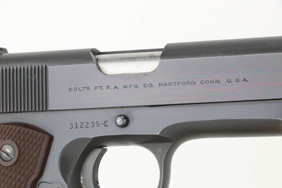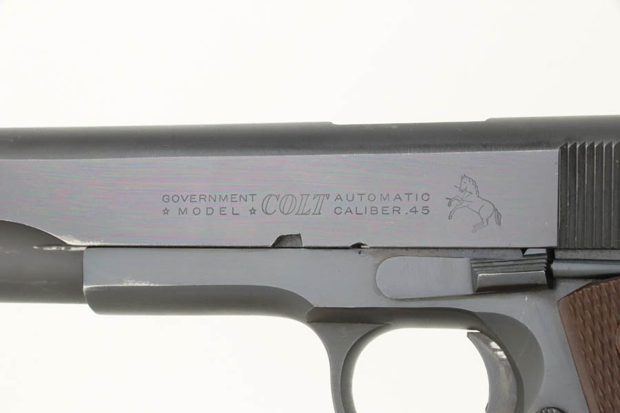 8/6/24 – This is a minty example of a Colt Government Model from 1967. All matching and has retained about 97% of its original finish. There is just minor muzzle wear and a hint of thinning on the grip safety. Fitted with period-correct reddish-brown plastic grips and comes with one proper magazine. Excellent, shiny bore with great rifling.