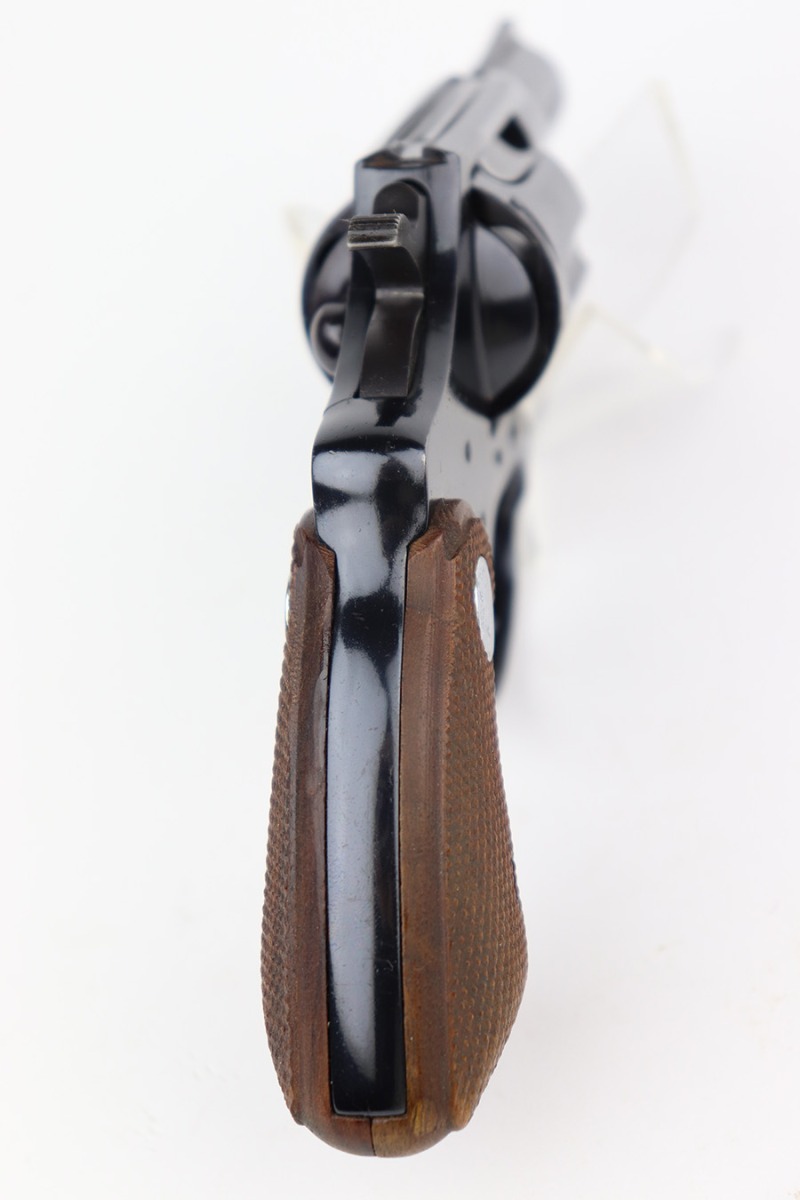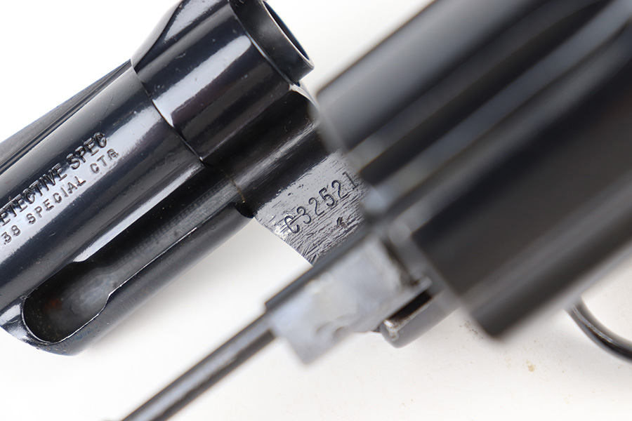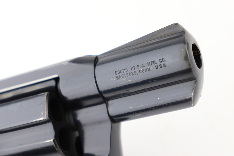 11/22/22 – This is a minty example of a Colt Detective Special revolver, manufactured in 1973 and chambered in .38 Special. It is all matching and has retained about 97-98% of its original high polish finish. There is just very minor wear around the muzzle, on some of the high edges of the cylinder, and very light roll mark on the cylinder as well. Some tiny scratches and handling marks on the back strap. Comes with minty hand-checkered wood grips. Excellent bore with strong rifling. The cylinder is tight, and the action is smooth.
