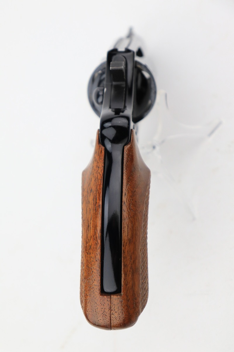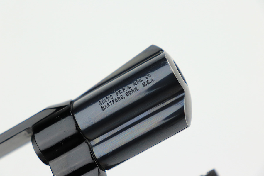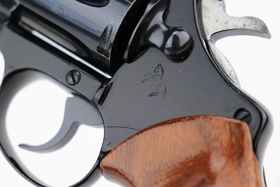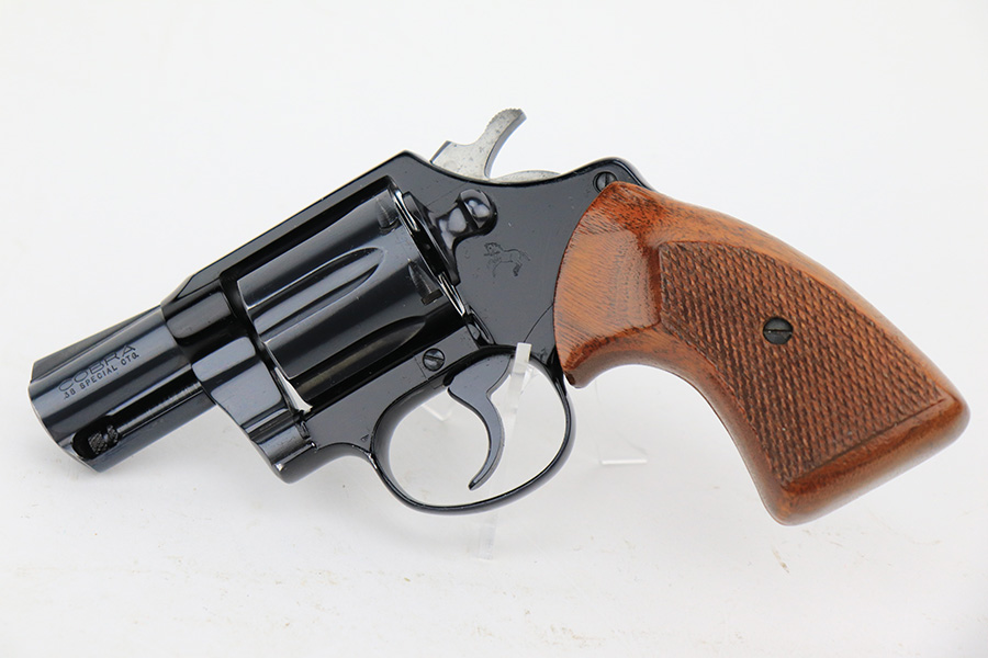 5/25/23 – This is a mint example of a Colt Cobra revolver, manufactured in 1977 and chambered in .38 Special. The gun is in near-mint condition with very little sign of wear. There is an extremely light roll mark on and one small dot of discoloration on the cylinder. A few tiny handling marks here and there. Fitted with excellent checkered wood grips. Mint bore. The cylinder is tight, and the action is smooth.
