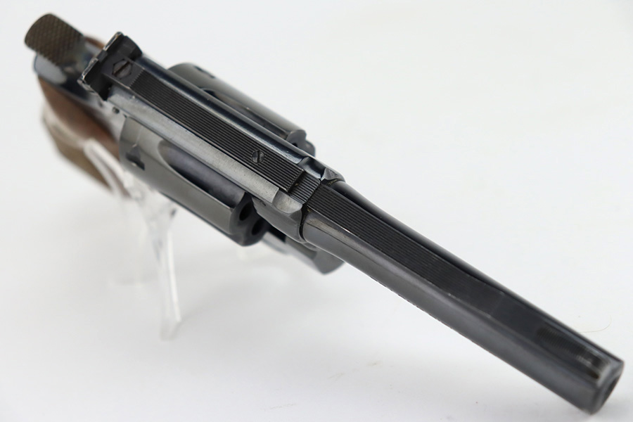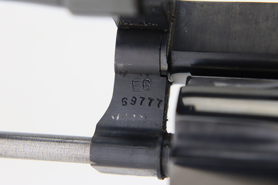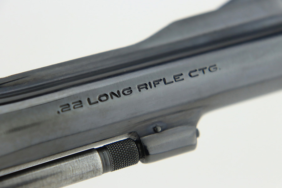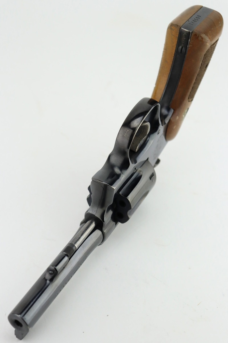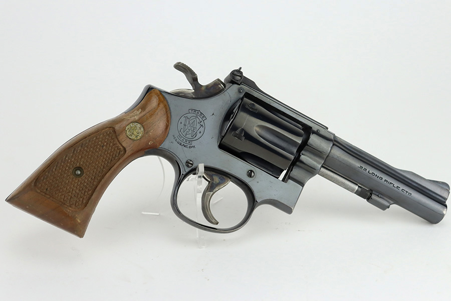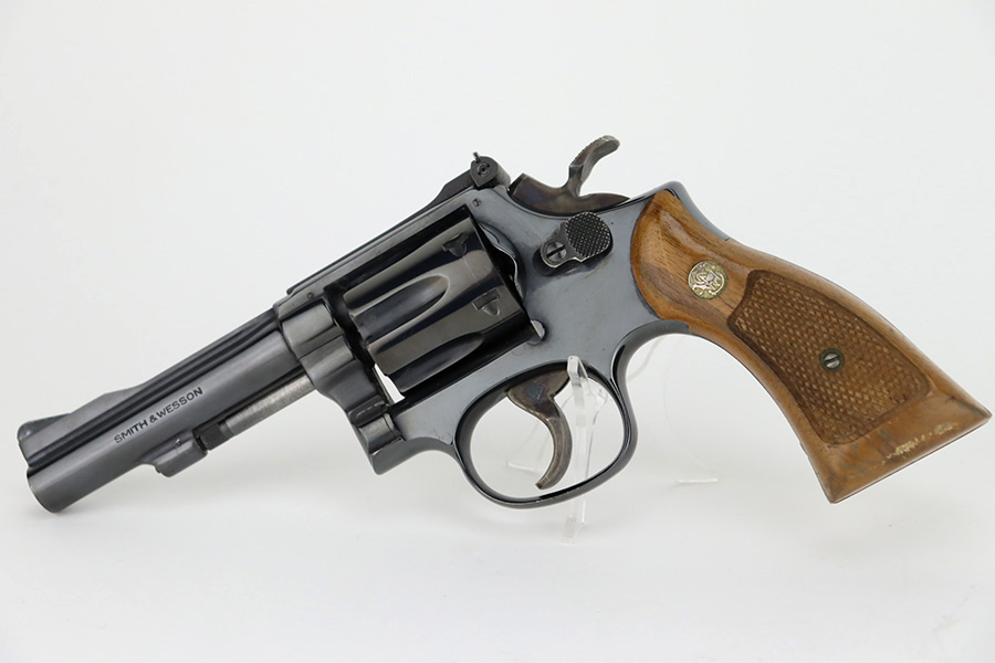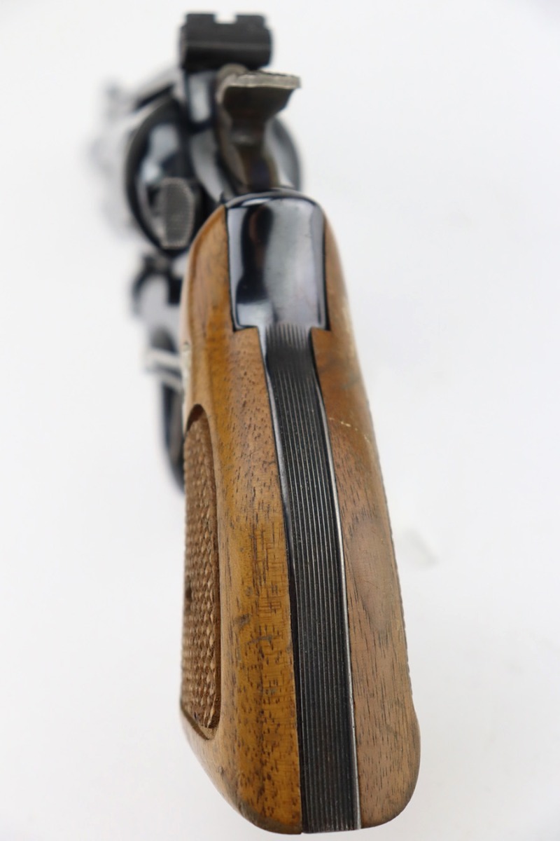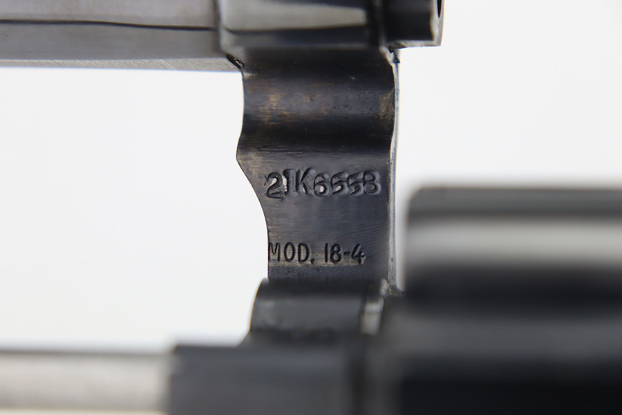 1/12/24 – This is a near-mint example of a Smith & Wesson Model 18-4 Revolver, manufactured in 1977 and chambered in .22 LR. It has retained virtually all of its original high polish bluing with just a hint of muzzle wear and a very faint roll mark on the cylinder. Excellent case-hardening on the hammer and trigger. Fitted with really nice checkered Walnut grips. Mint bore. Smooth action.