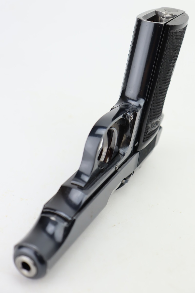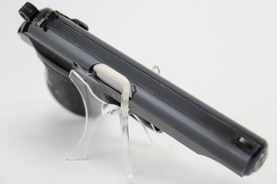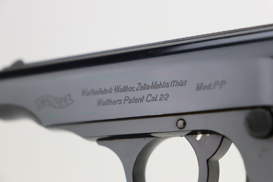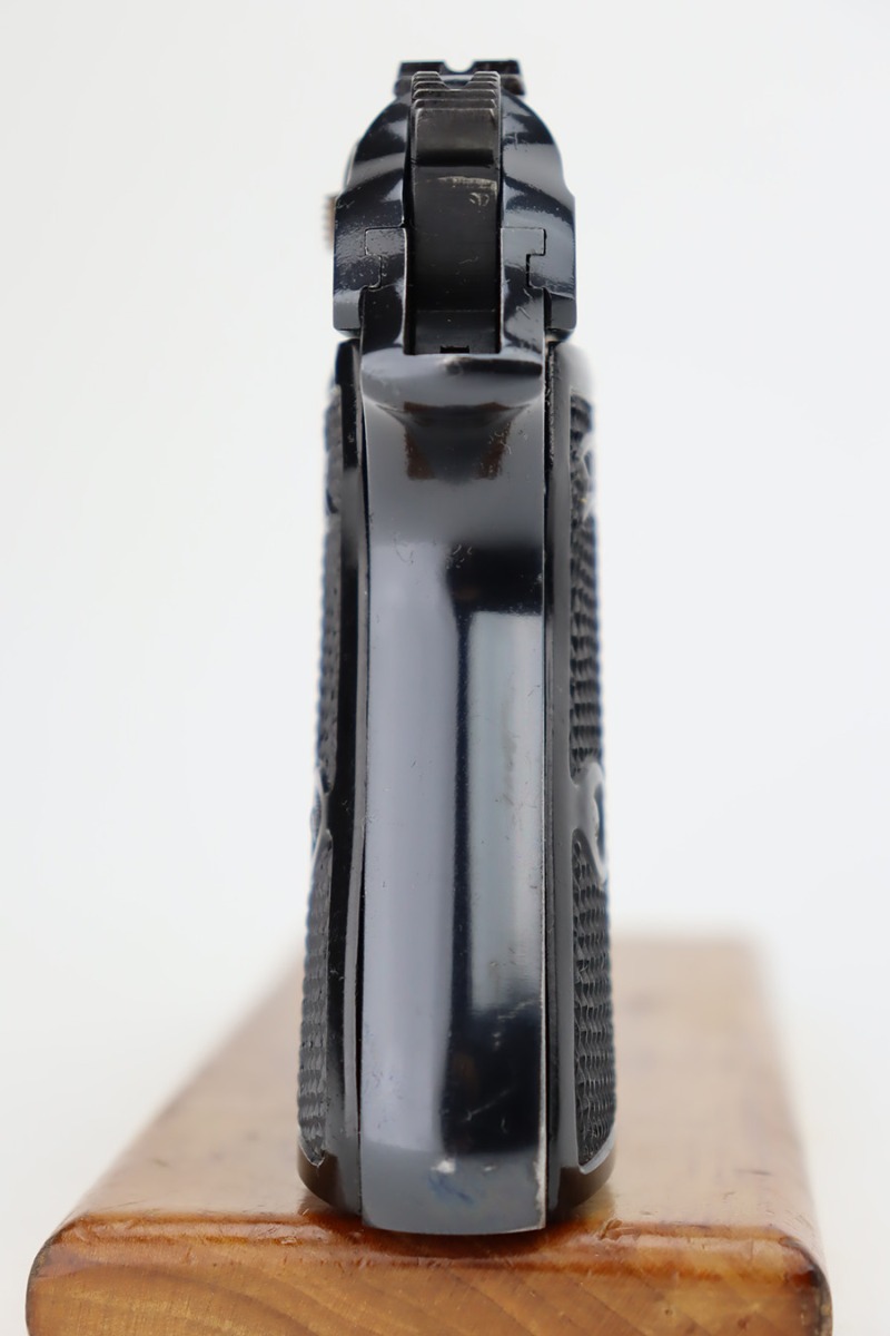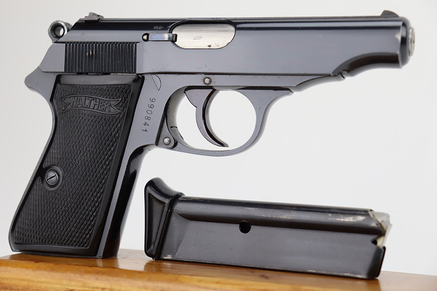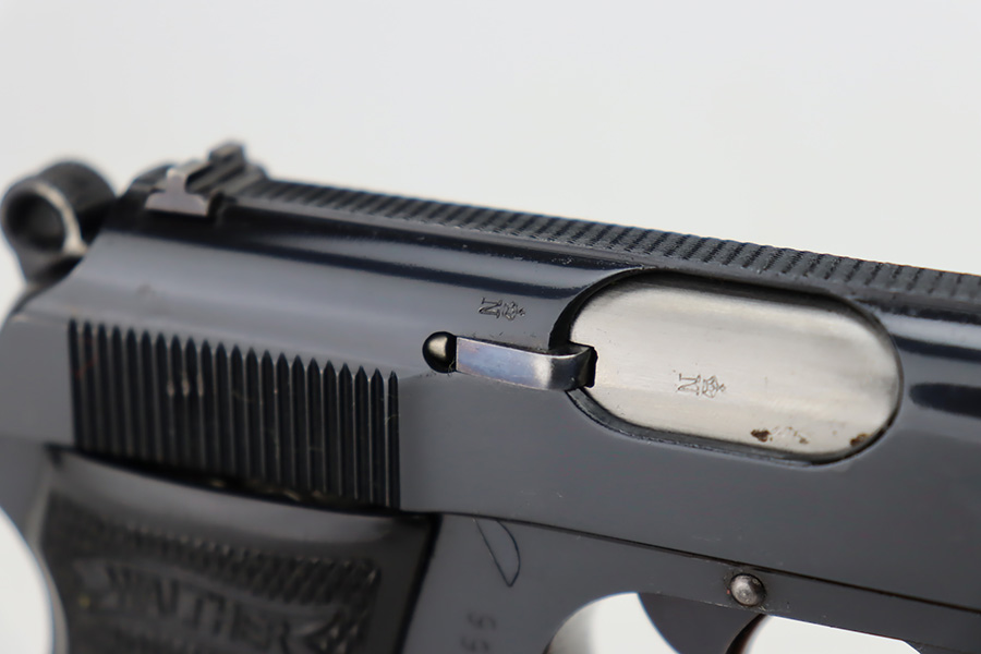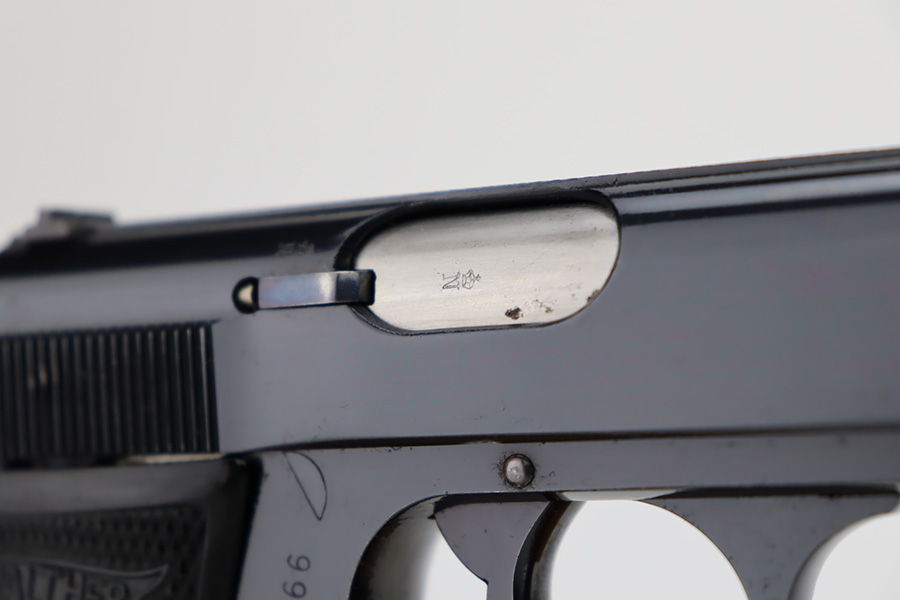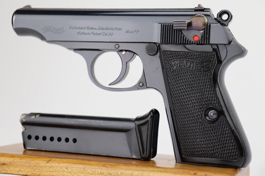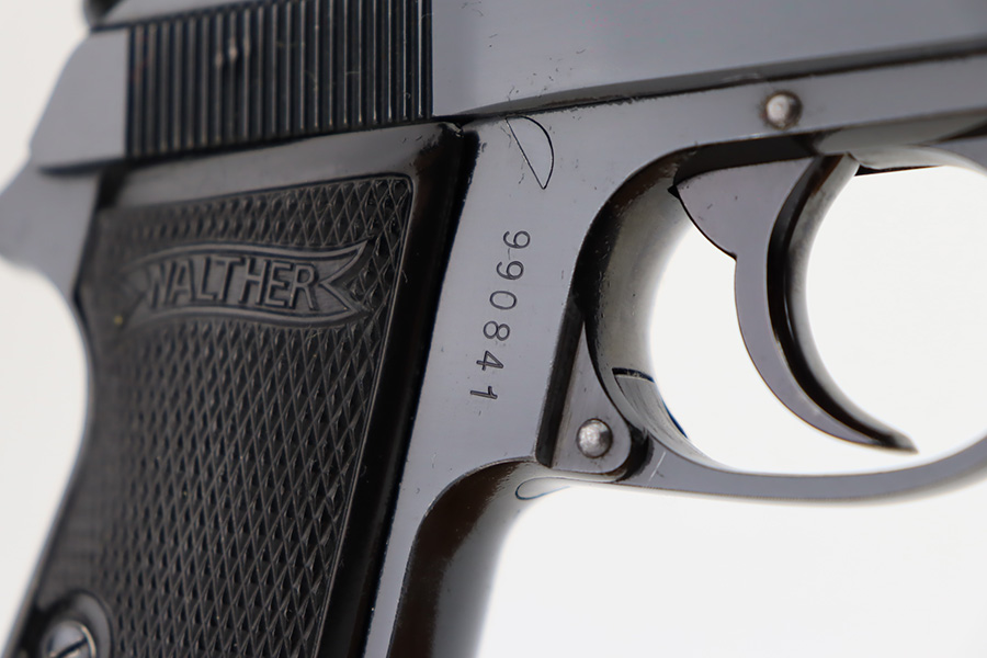 11/1/23 – This is a minty example of a .22 Caliber Walther PP sold in the commercial market in 1938. It is all matching and has the proper “Crown N” proofs. It has retained nearly all of its original high polish finish with minor muzzle wear and some tiny handling marks here and there. Fitted with excellent period-correct black bakelite grips and comes with a finger extension magazine. Mint bore.